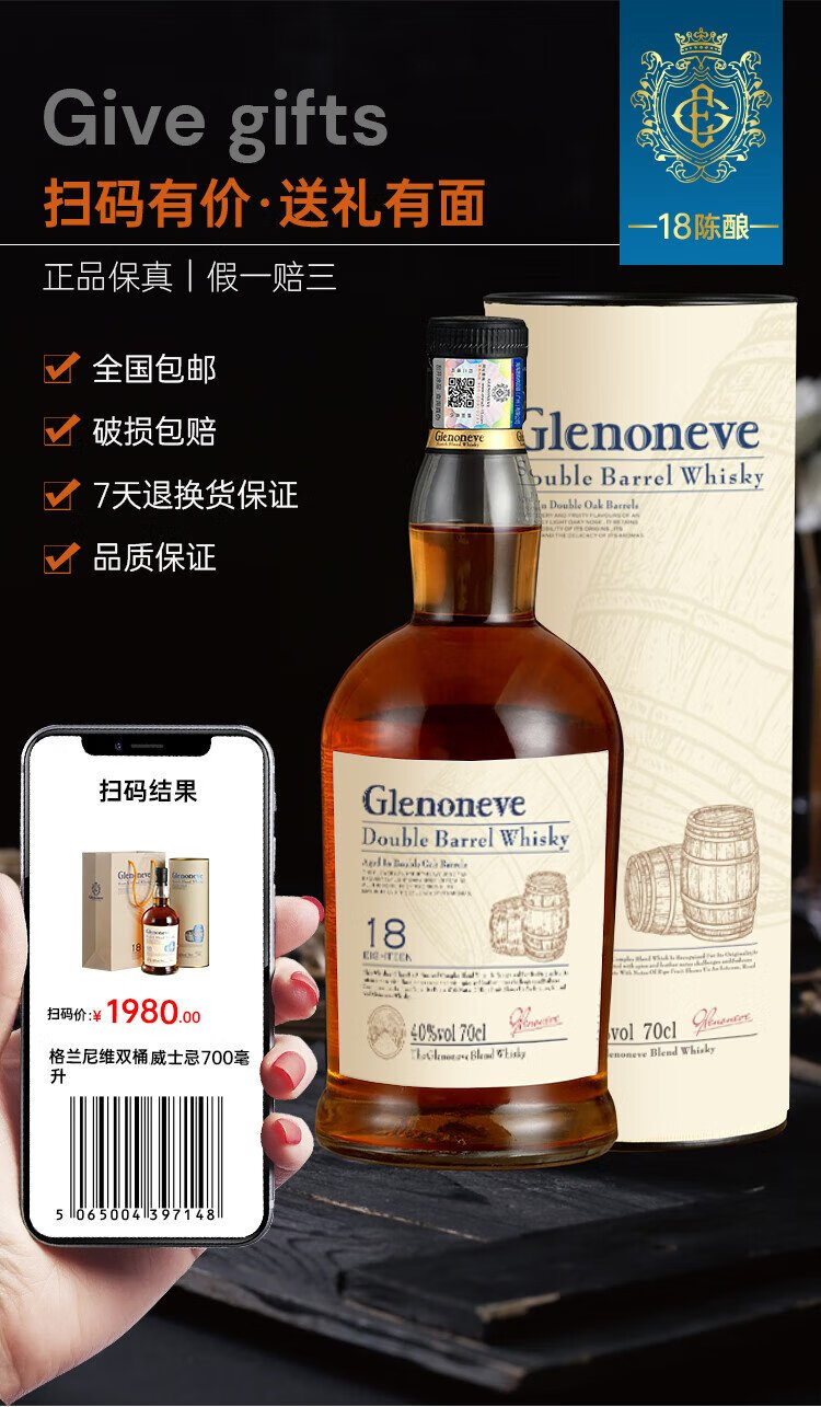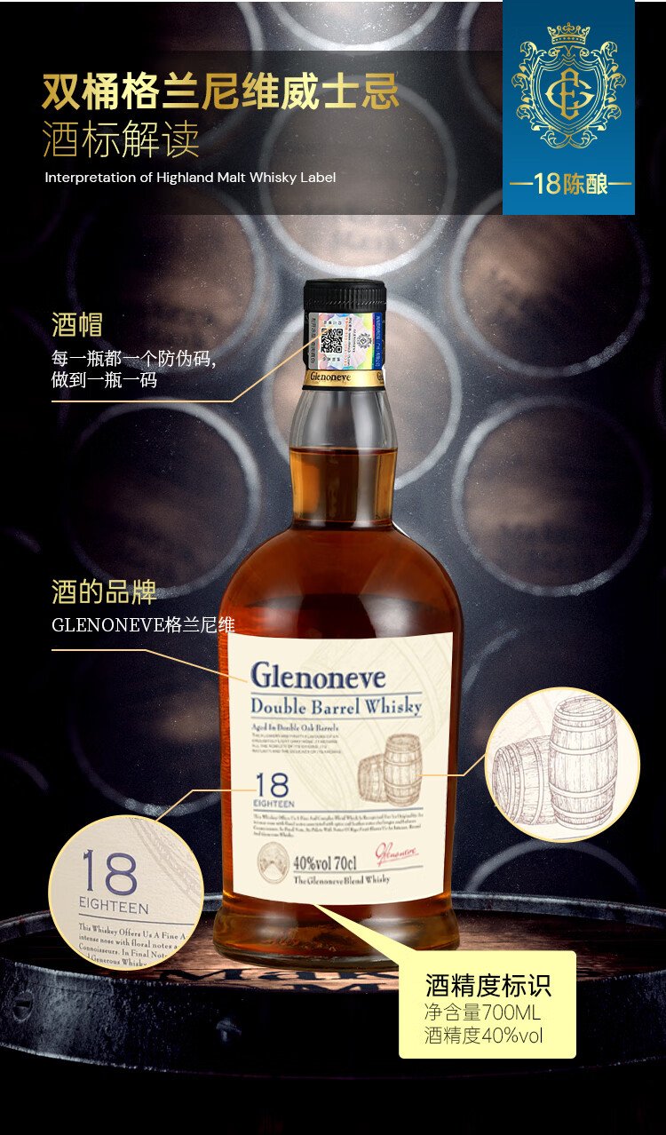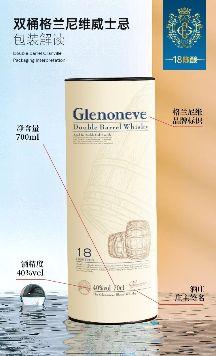 GIENONEVE double barrel whiskey 18-year-old British imported wine double barrel 40 degree gift barrel 700ML