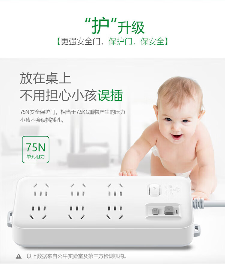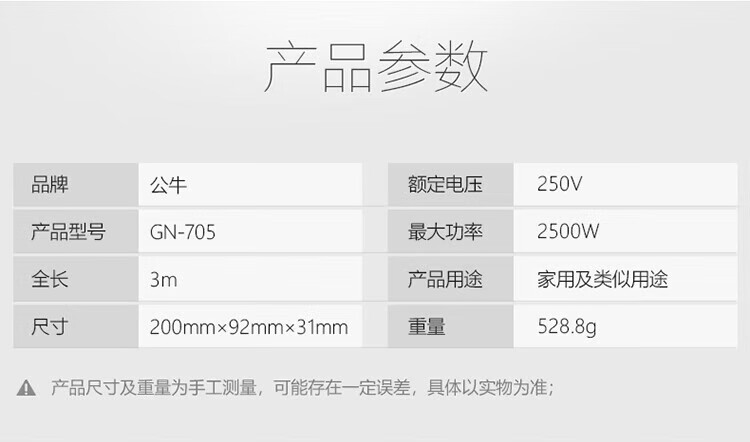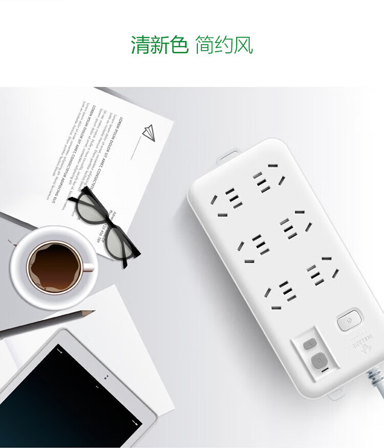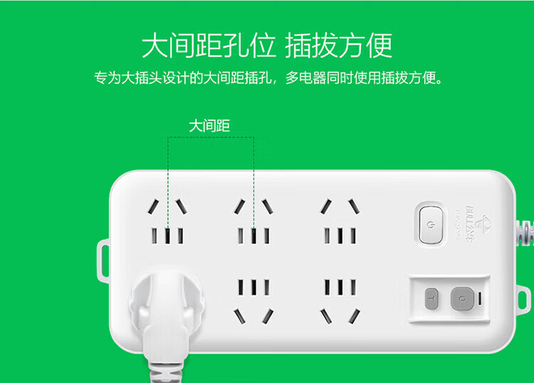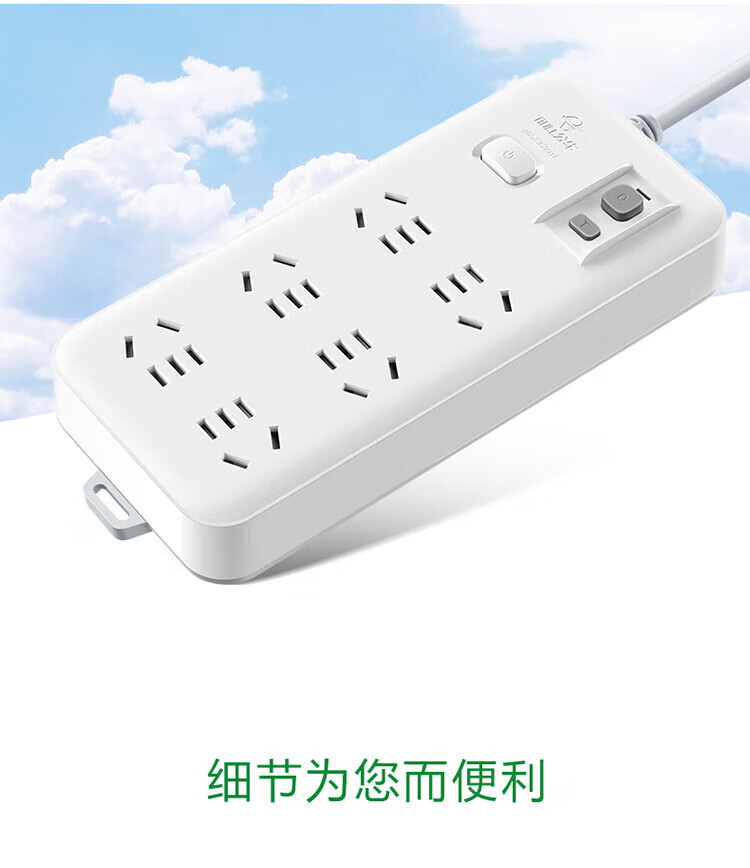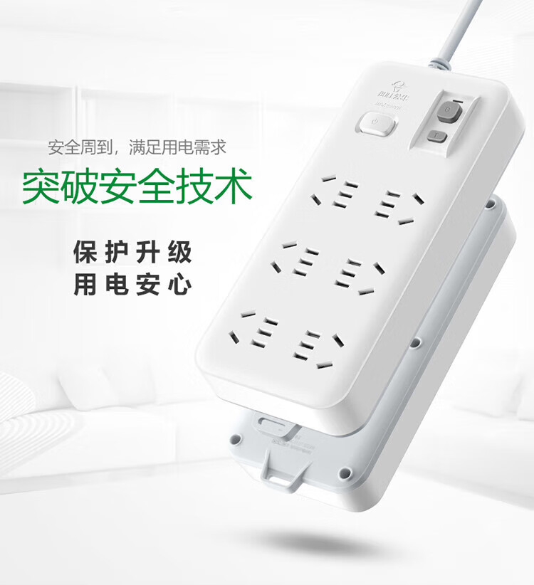 BULL leakage protector socket wiring anti-leakage plug new national standard GN-705 six-digit master control total length 3 meters 10A