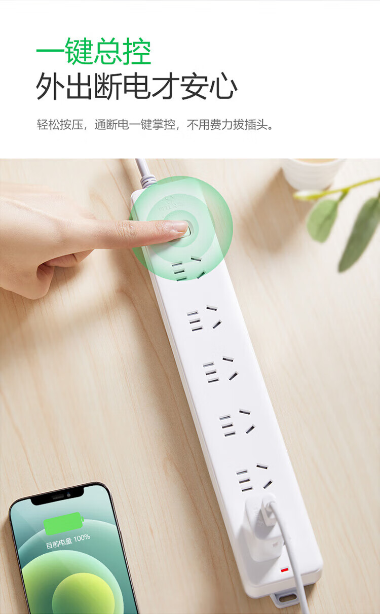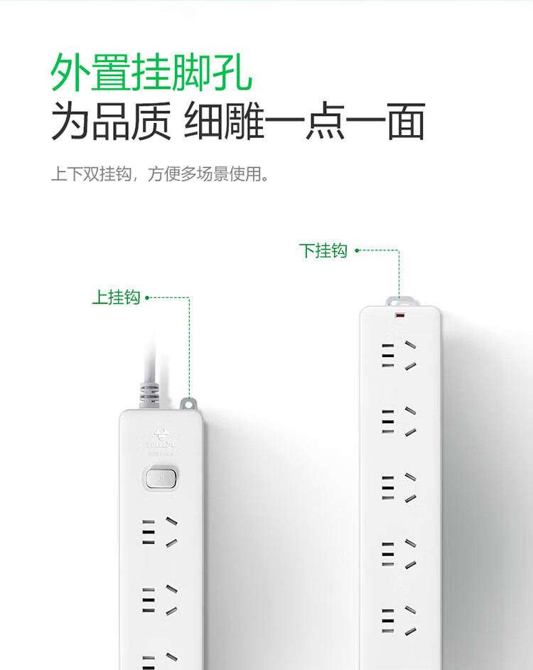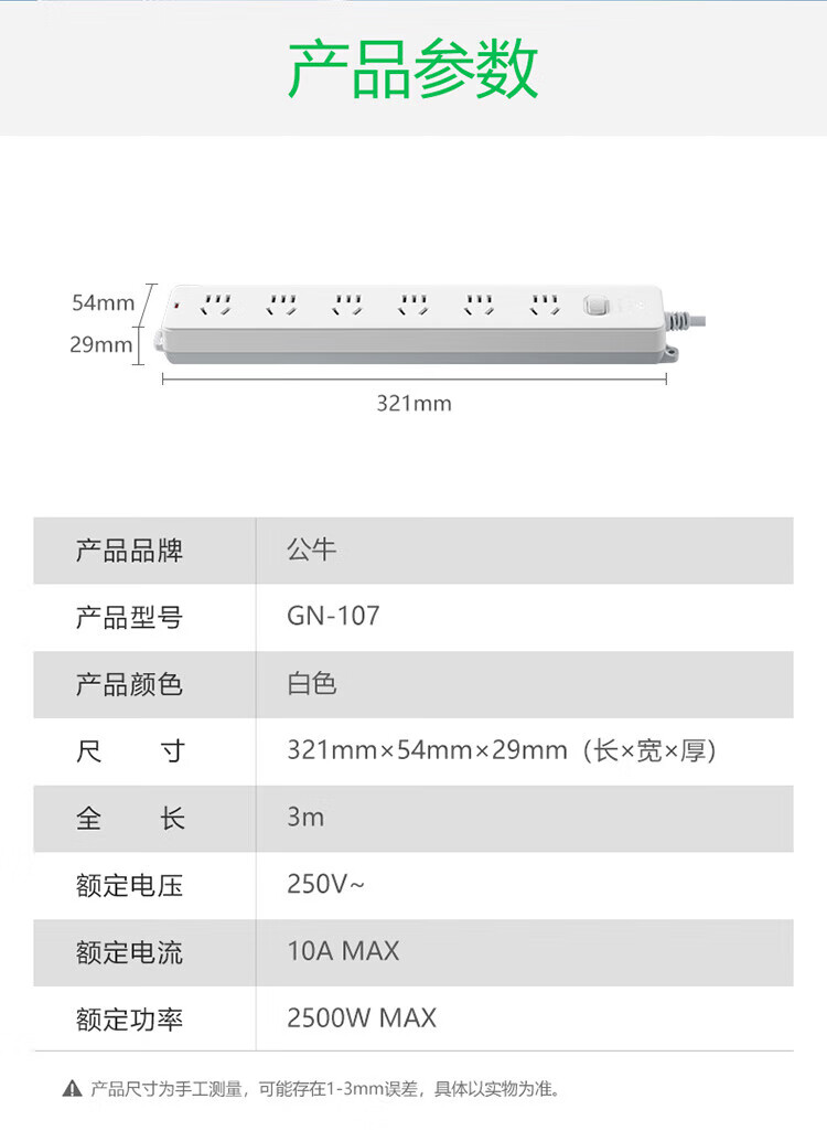 Bull (BULL) new national standard socket plug-in strip plug-in strip plug-in strip drag strip 6-position master switch full length 3 meters super power protection GN-107