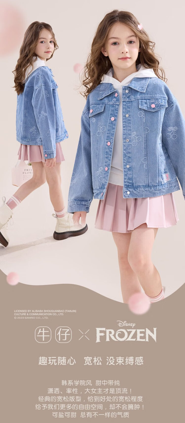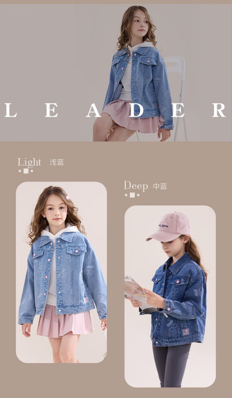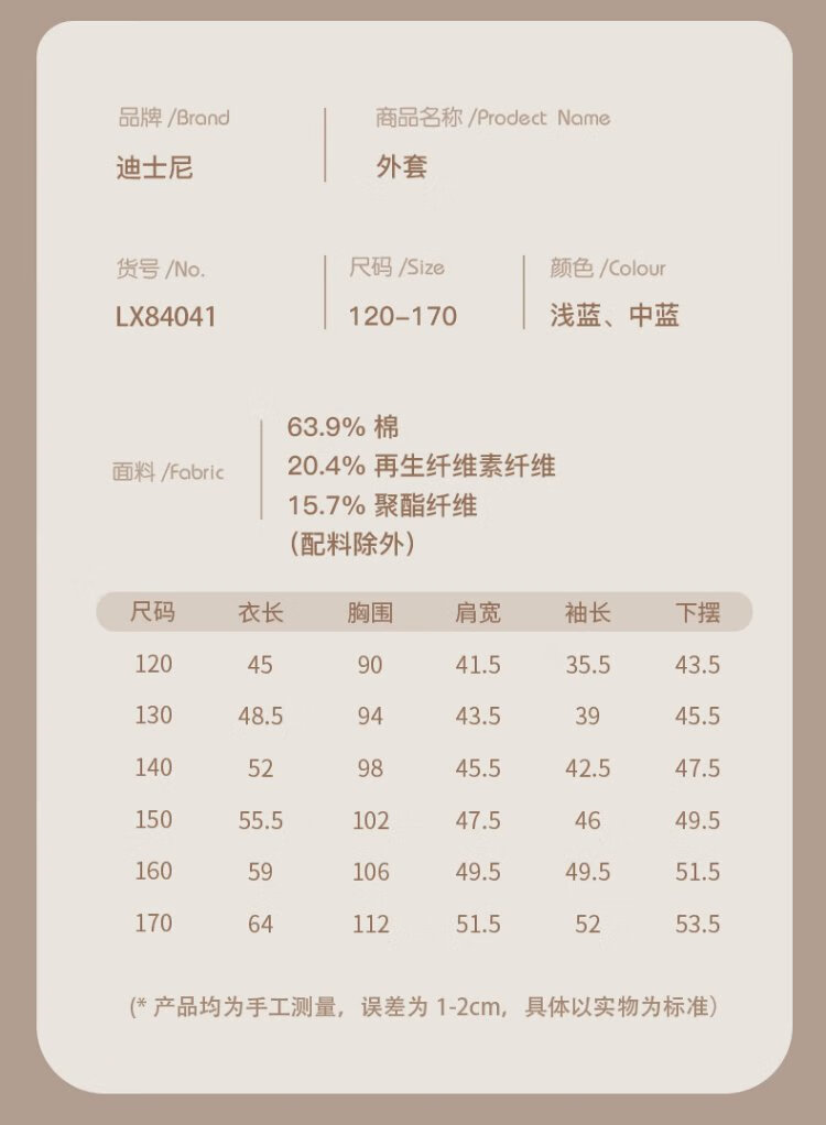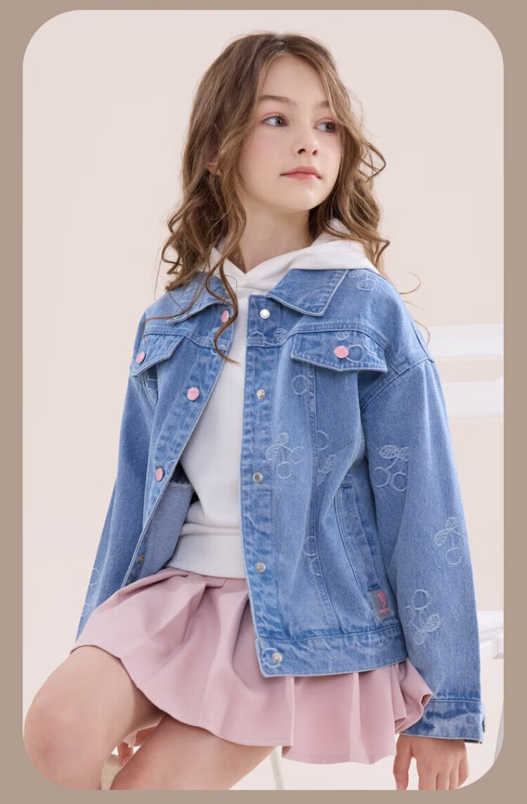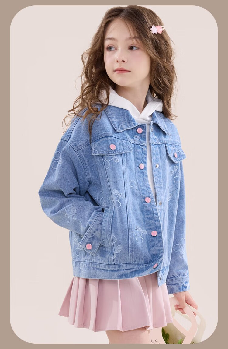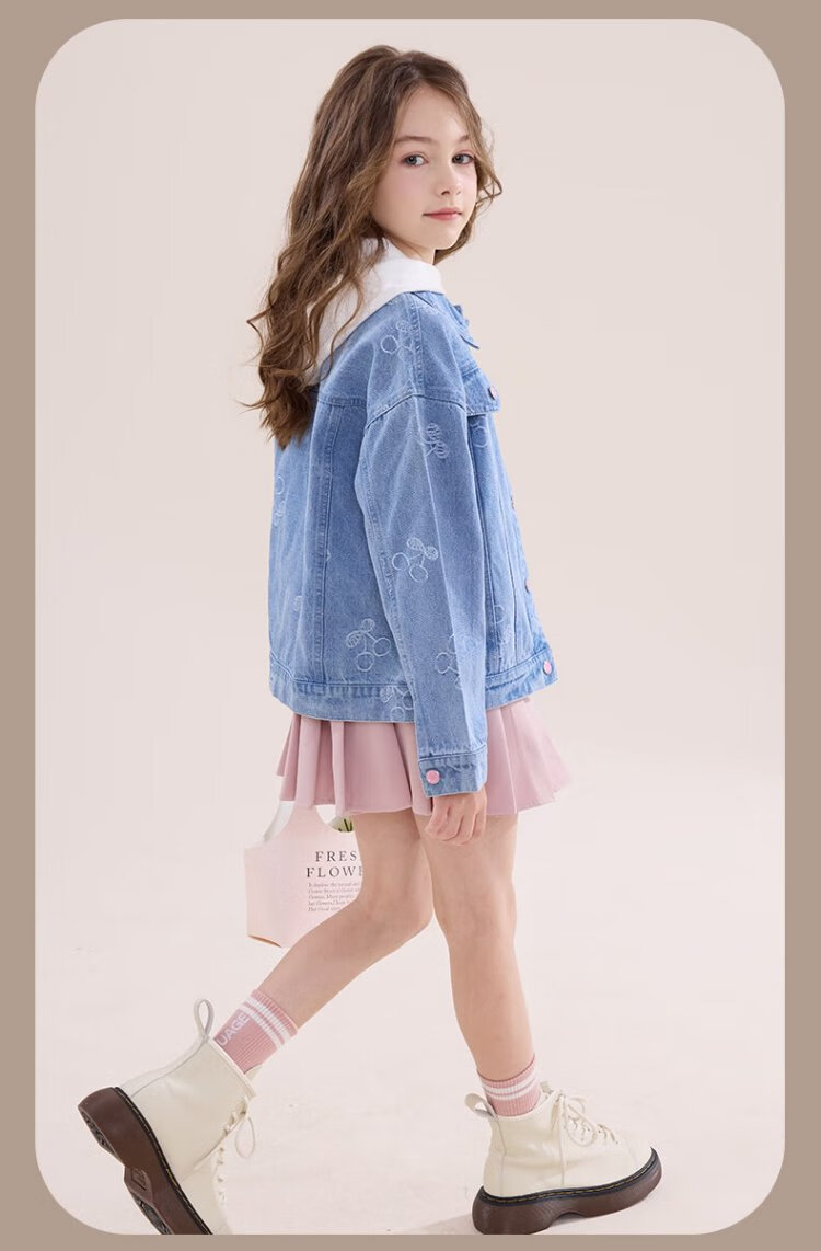 Disney girls denim jacket spring and autumn children's casual tops girls' middle and large children's fashionable children's clothing 84041 light blue 140