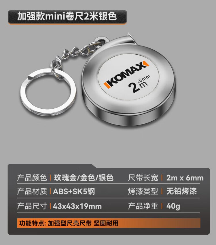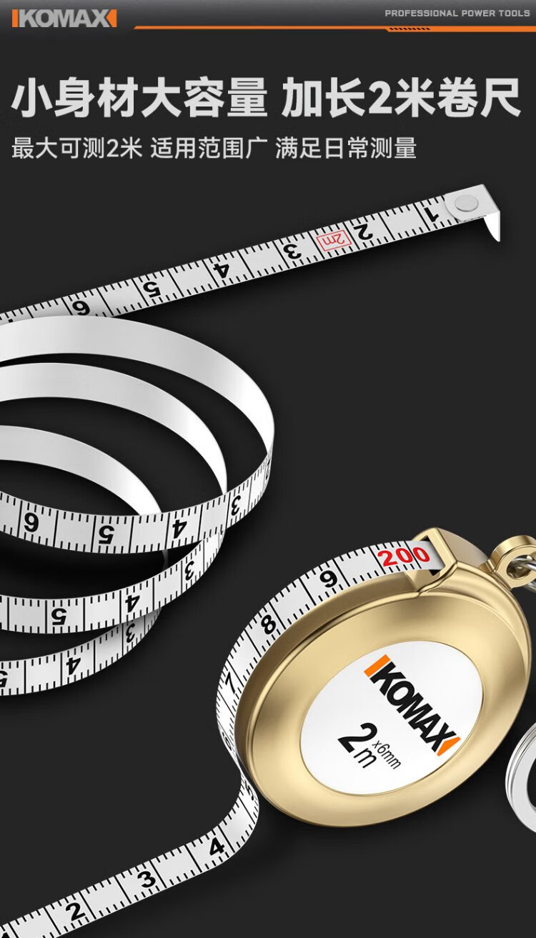 Komax steel tape measure household 2-meter wear-resistant and anti-fall mini ruler measuring measurements height soft ruler high-precision ruler
