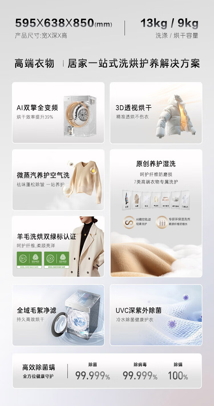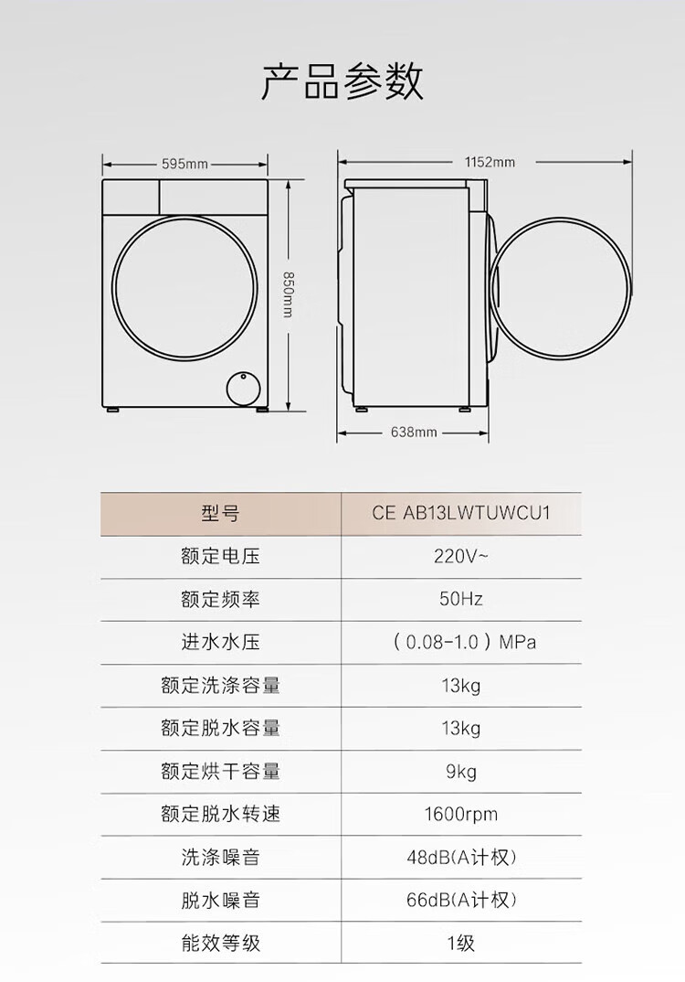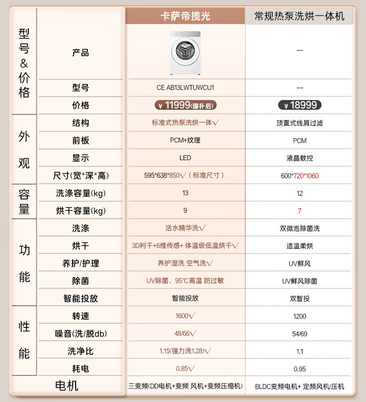 Casarte Languang heat pump washing and drying machine W13 drum lazy washing machine fully automatic 13kg dual engine three frequency conversion CE AB13LWTUWCU1 national subsidy for home appliances