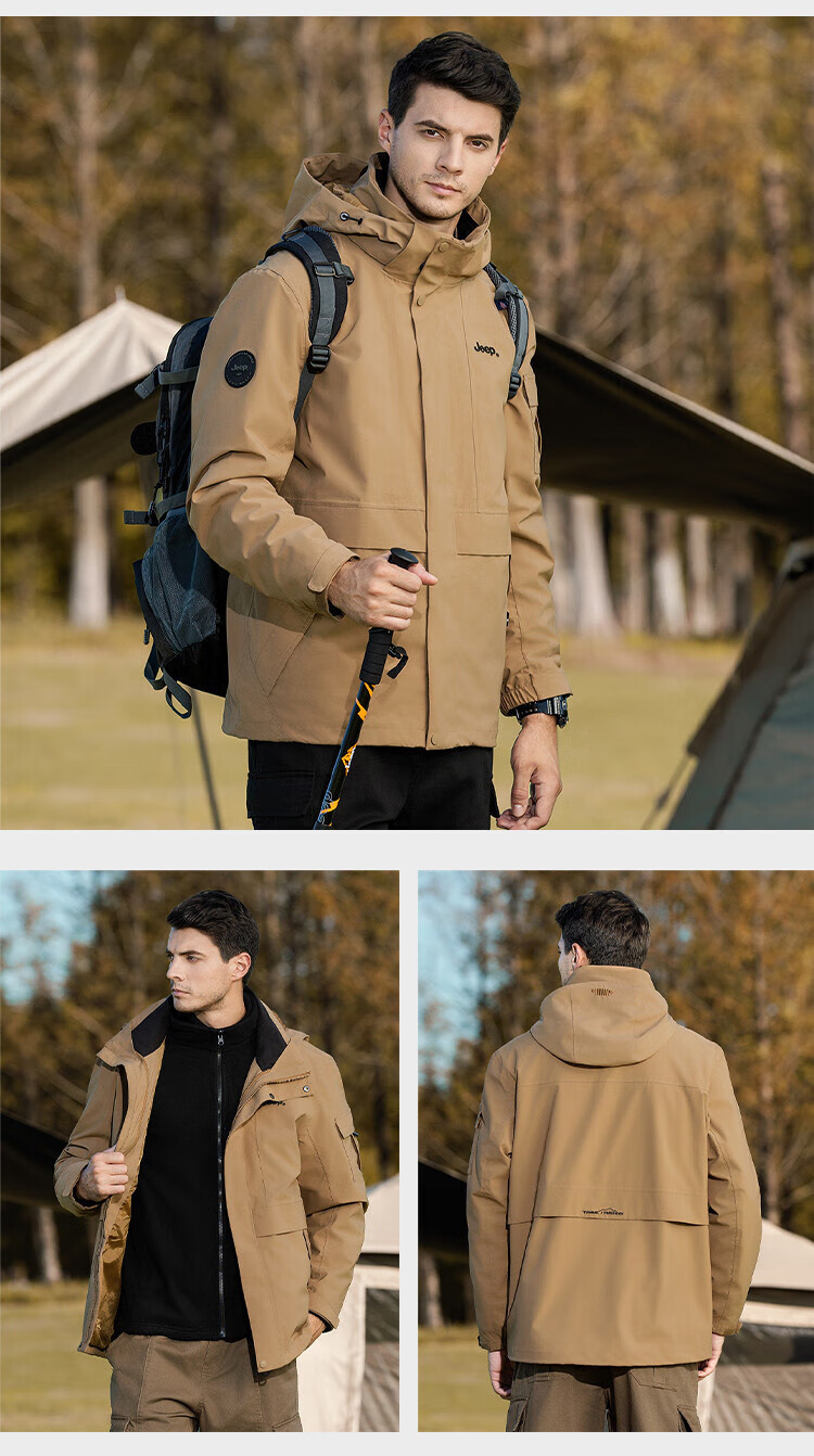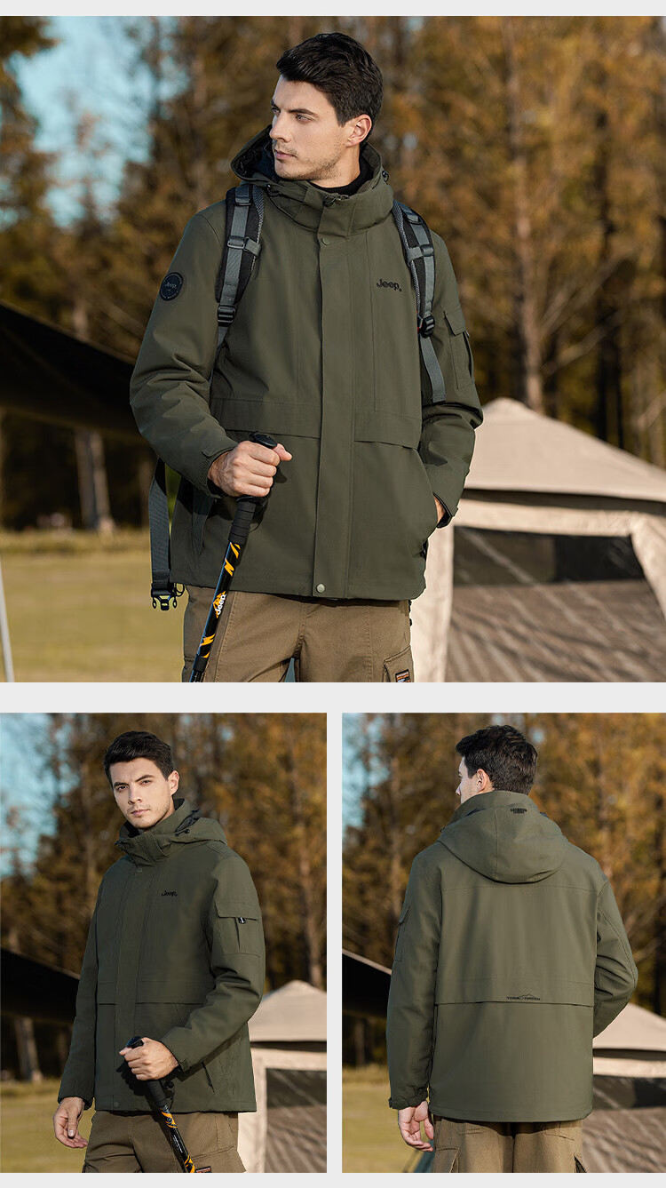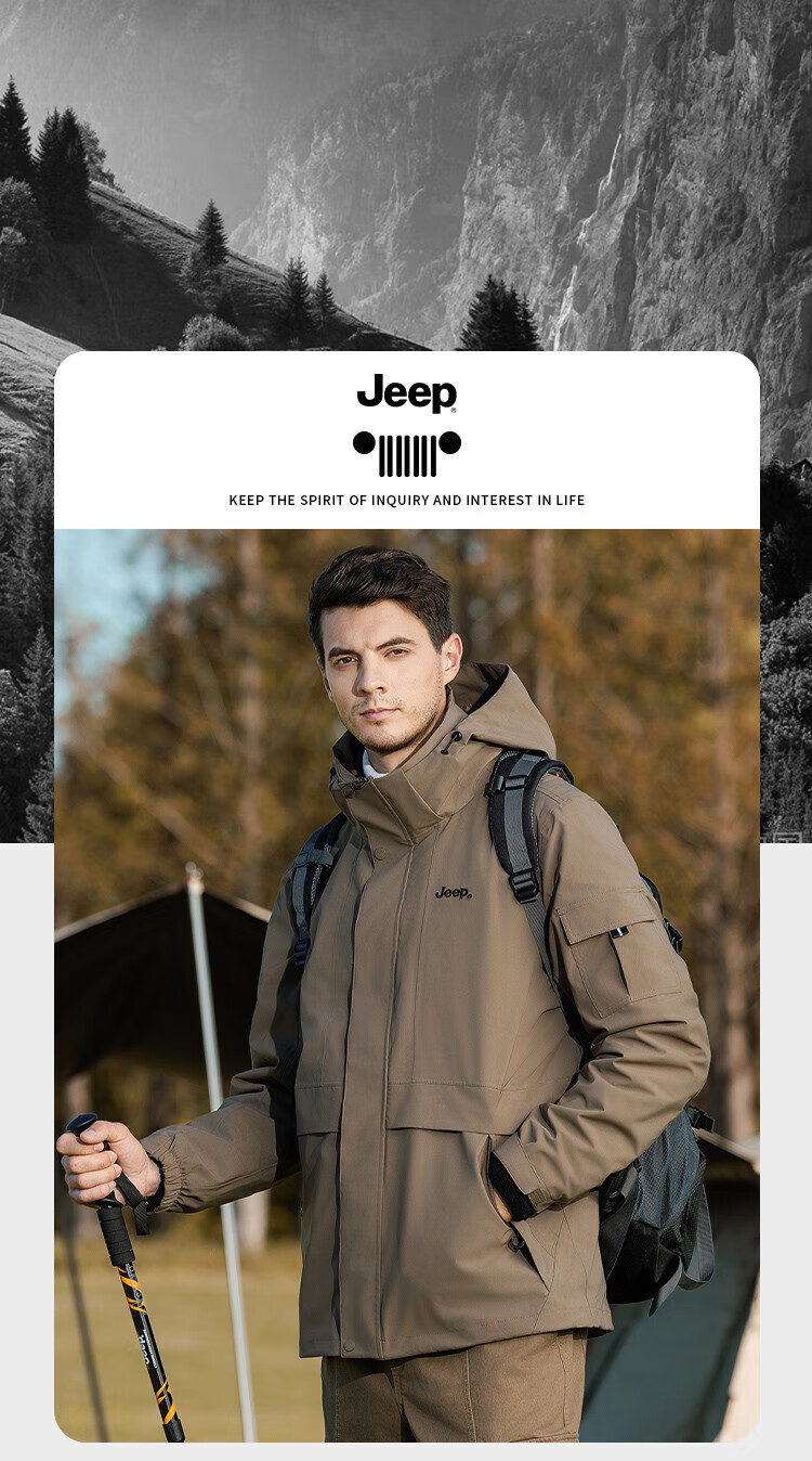 JEEP 3-in-1 Jacket High-end Detachable 2025 Autumn and Winter Outdoor Windproof Sports Mountaineering Jacket for Men