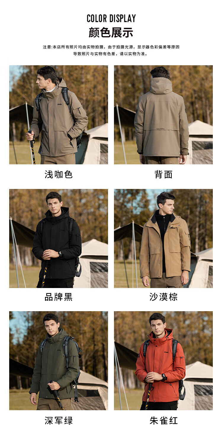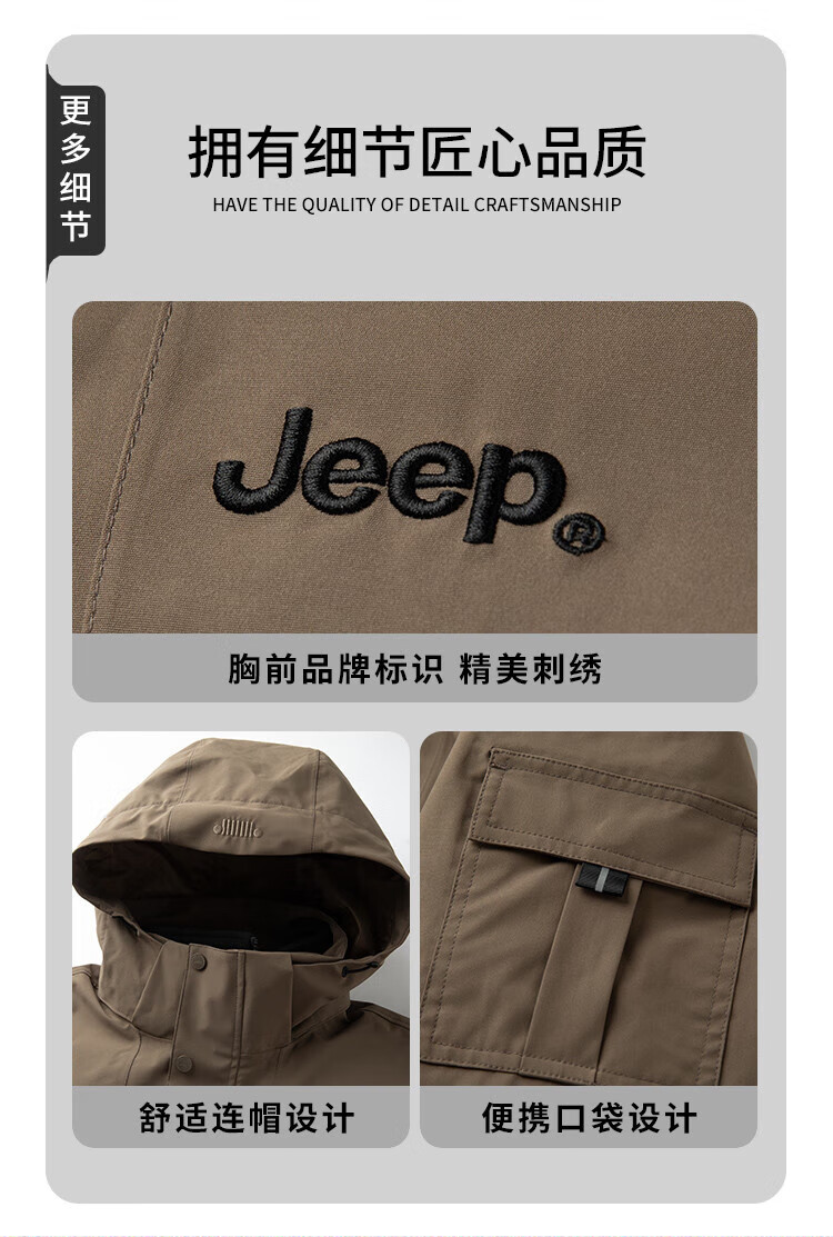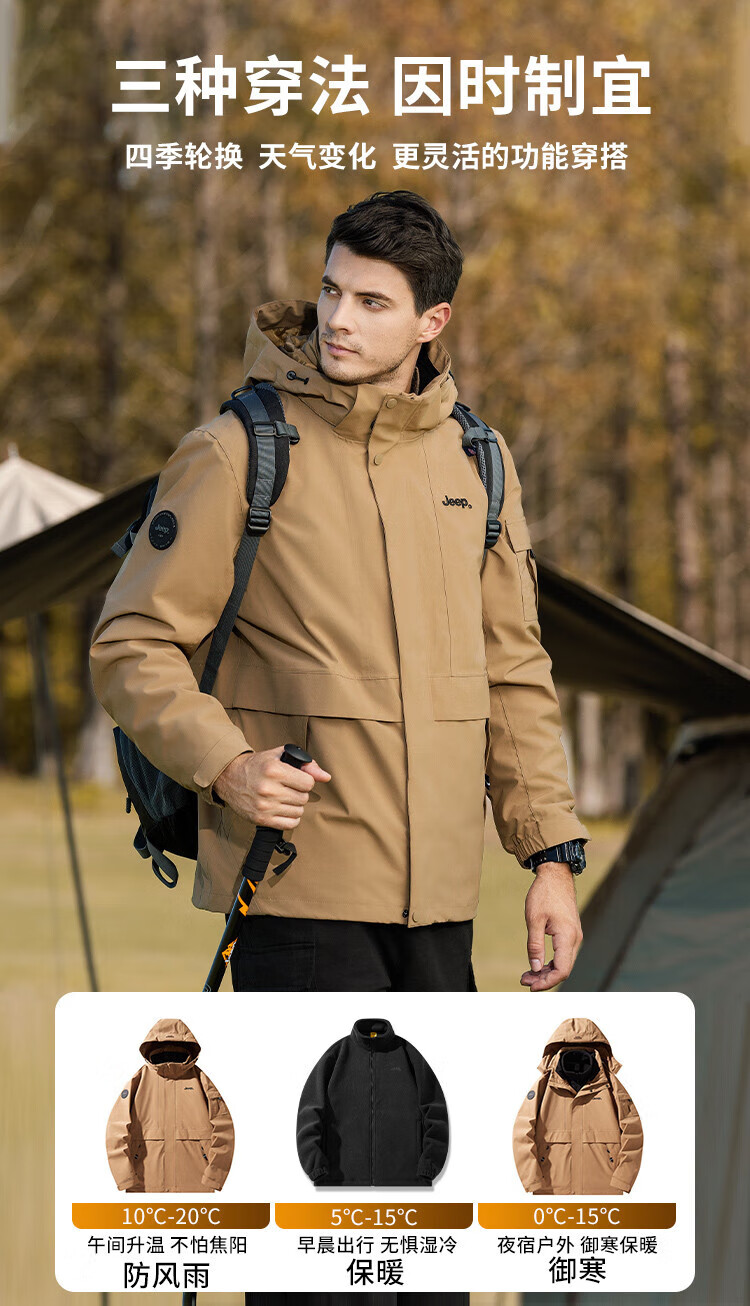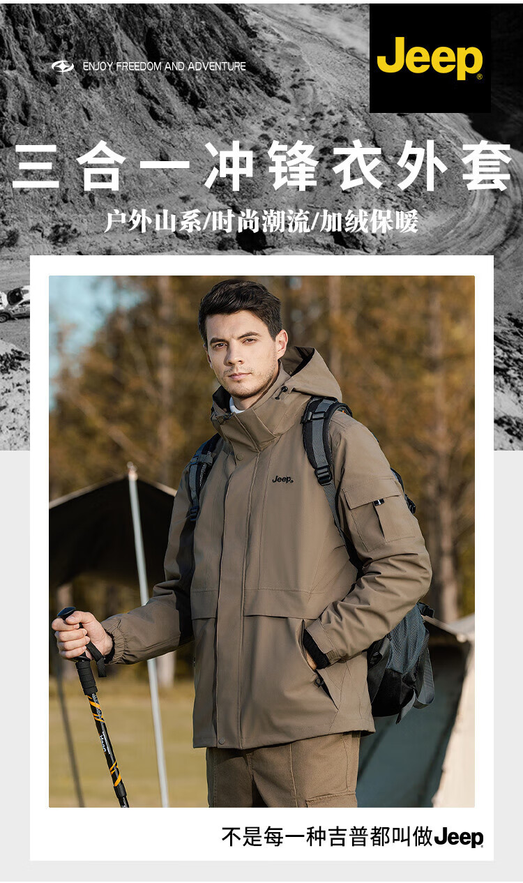 JEEP 3-in-1 Jacket High-end Detachable 2025 Autumn and Winter Outdoor Windproof Sports Mountaineering Jacket for Men