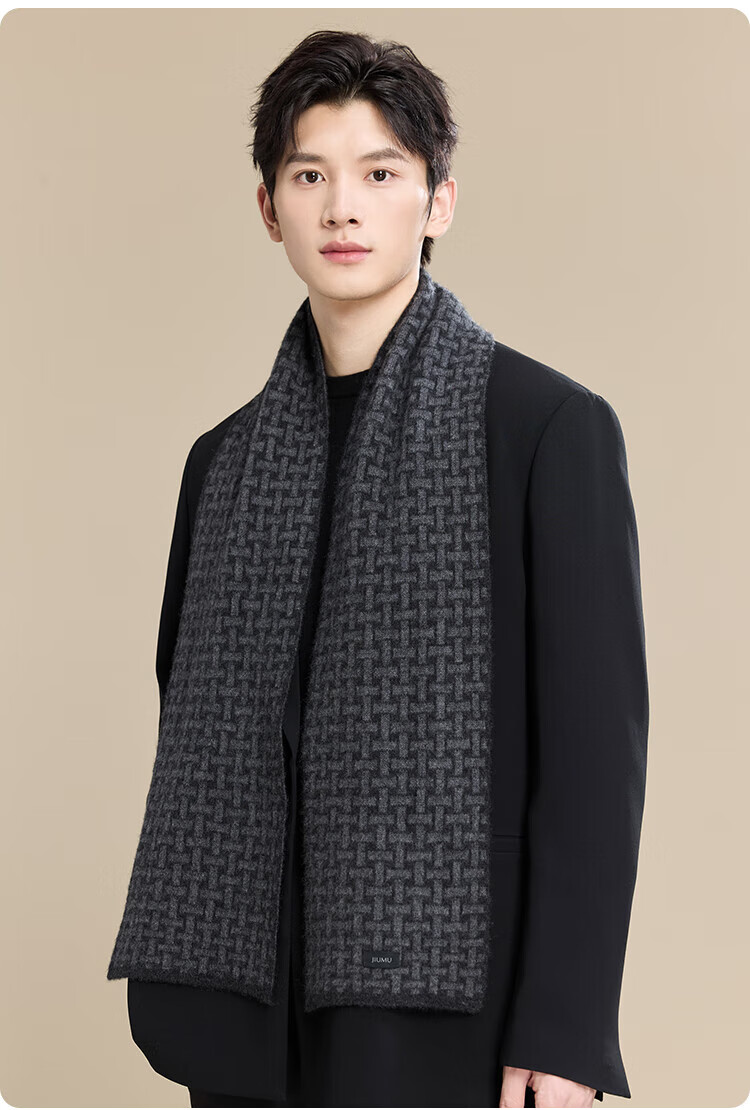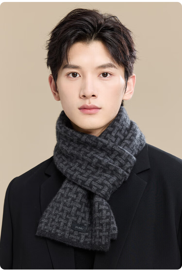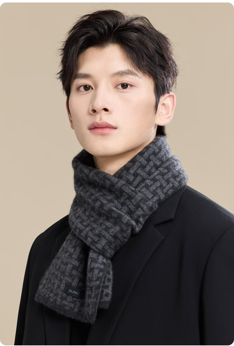 JIUMU 100% Cashmere Scarf Men's Autumn and Winter Warm Scarf for Boys and Fathers Christmas and Birthday Gifts in Gift Boxes