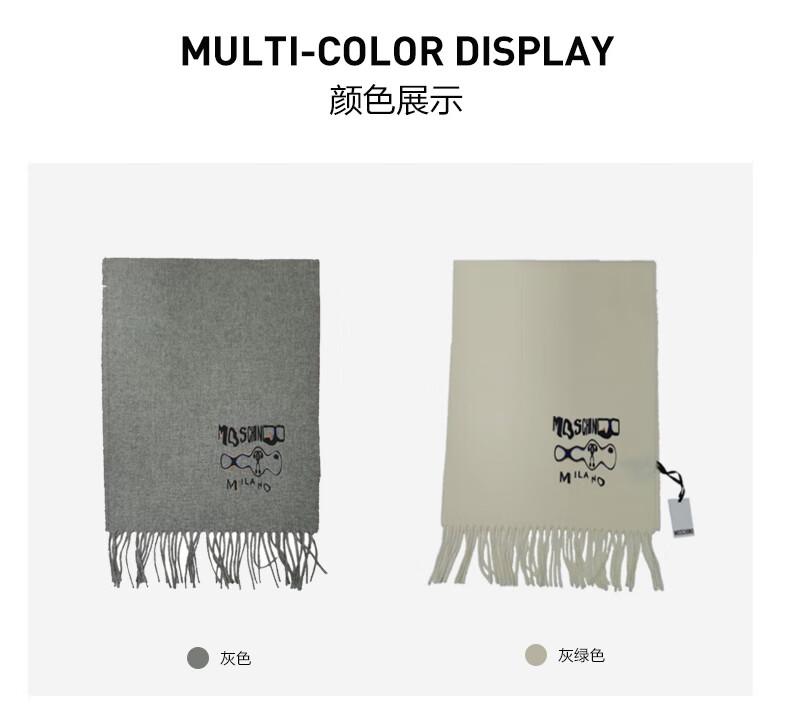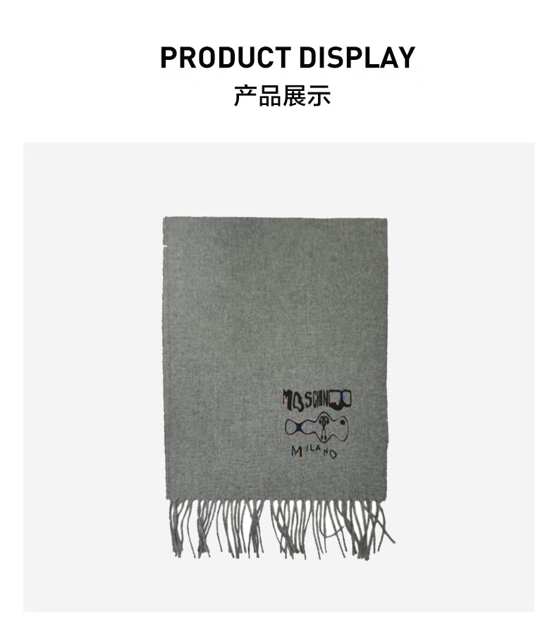 MOSCHINO Unisex Bear Tassel Scarf 50177 M5536 Gray TU