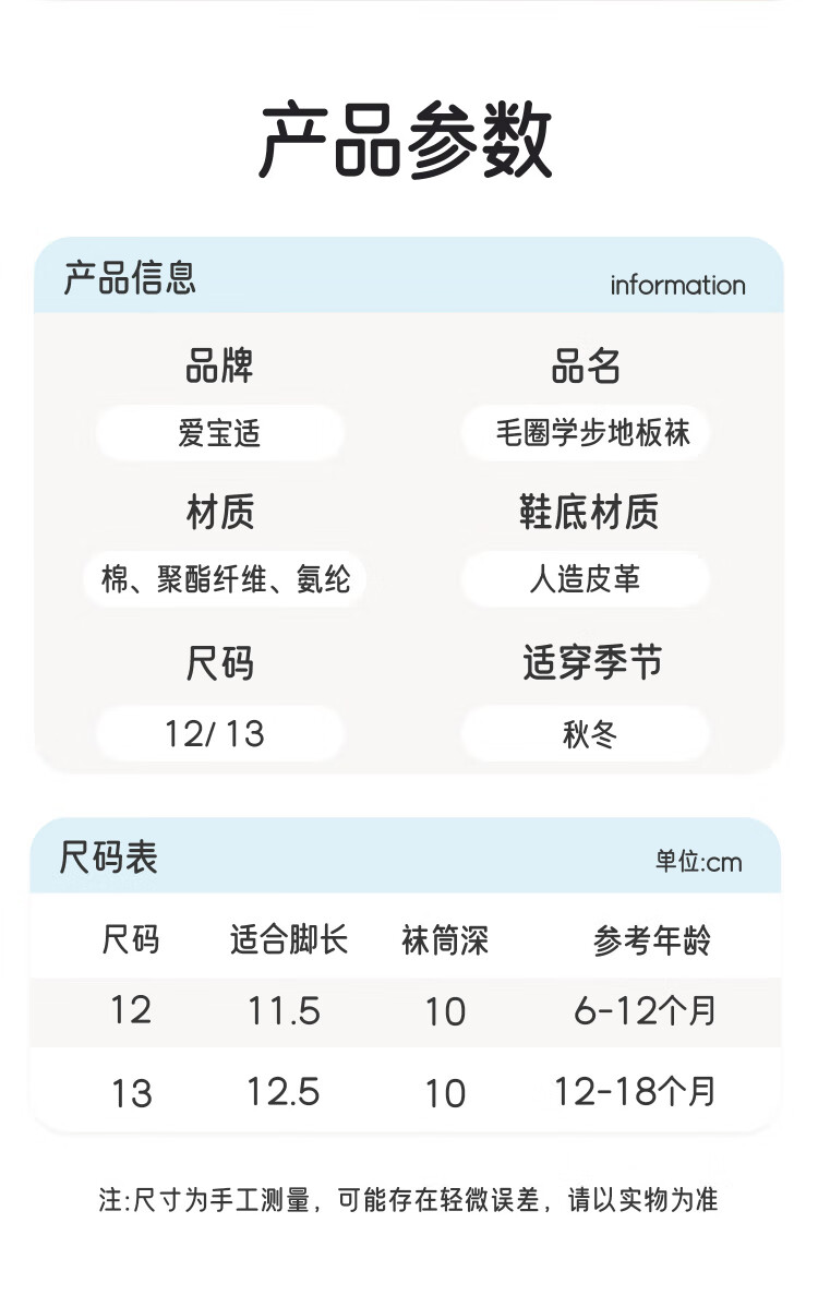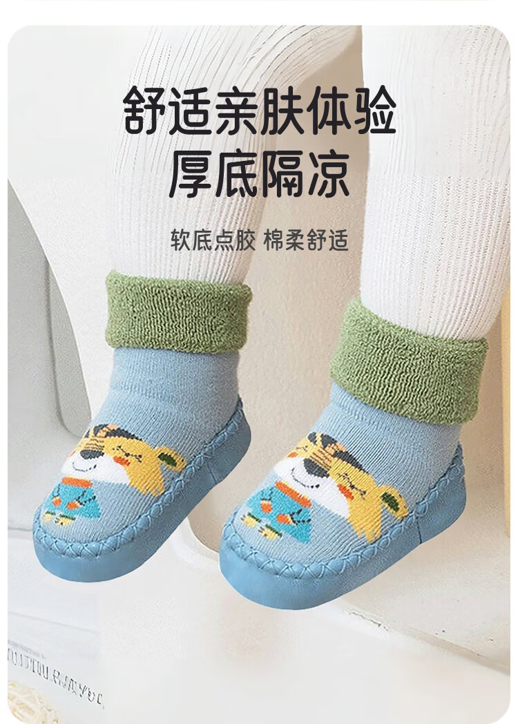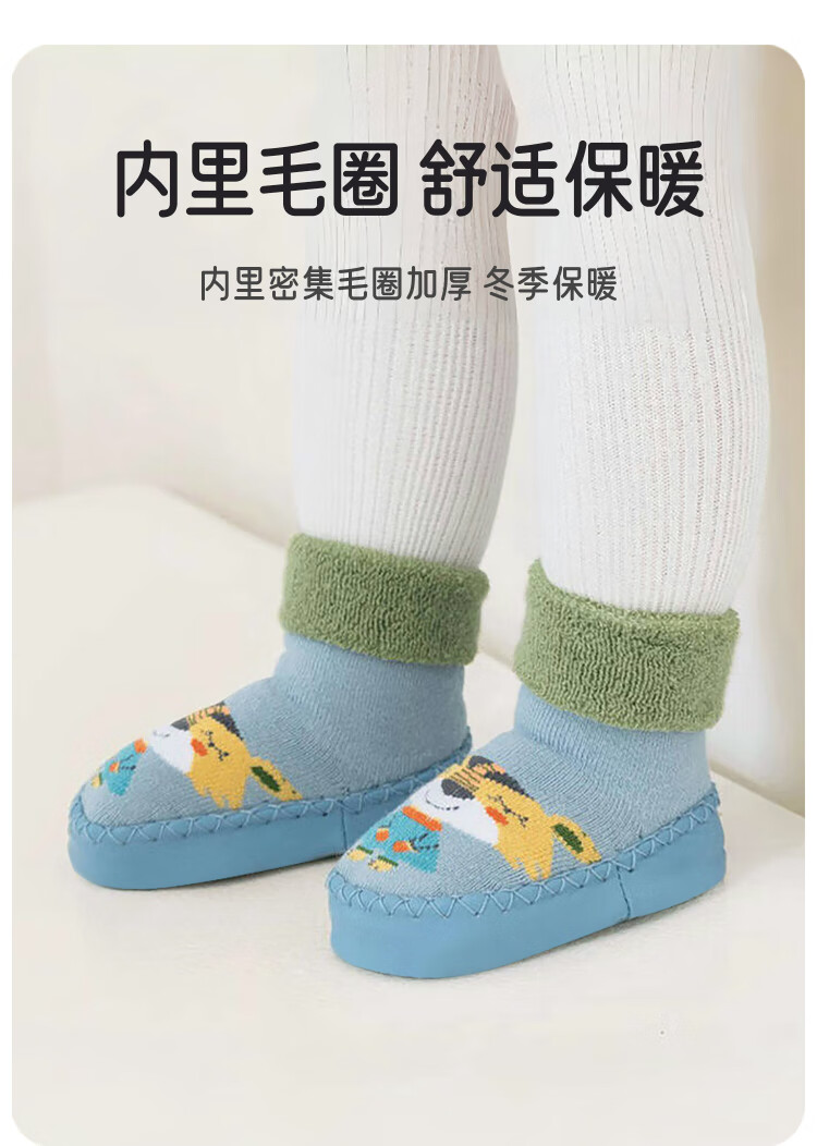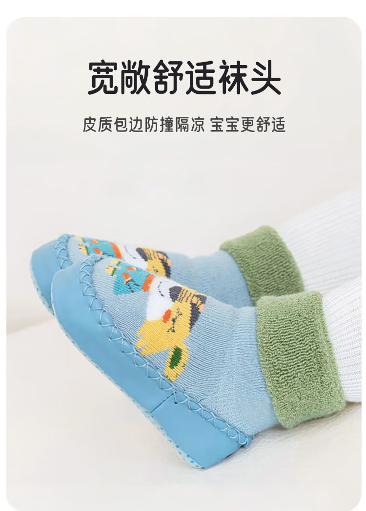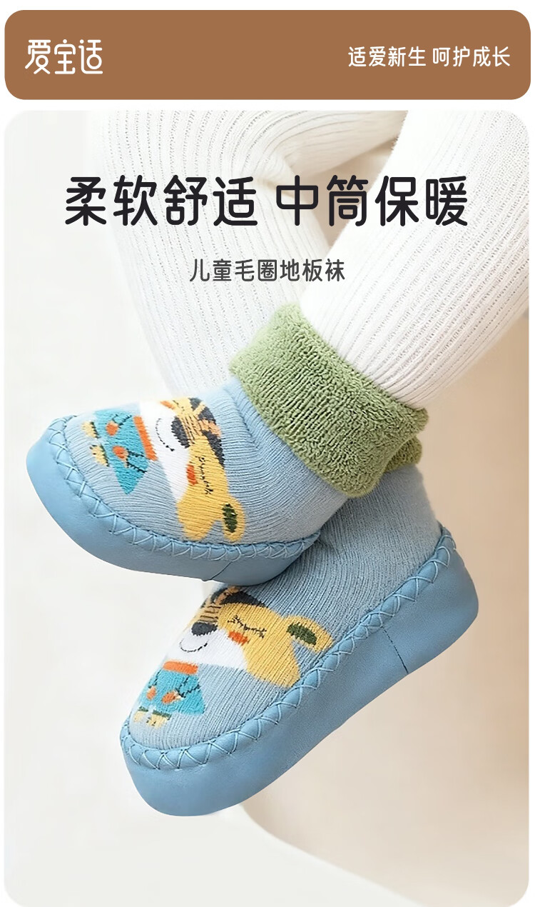 Aiboshi baby floor socks spring, autumn and winter baby socks toddler shoes children's step-by-step shoes early education socks blue 12.5cmT146