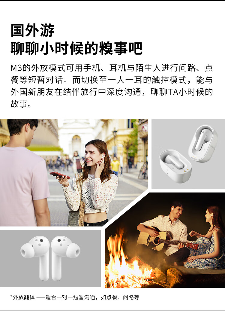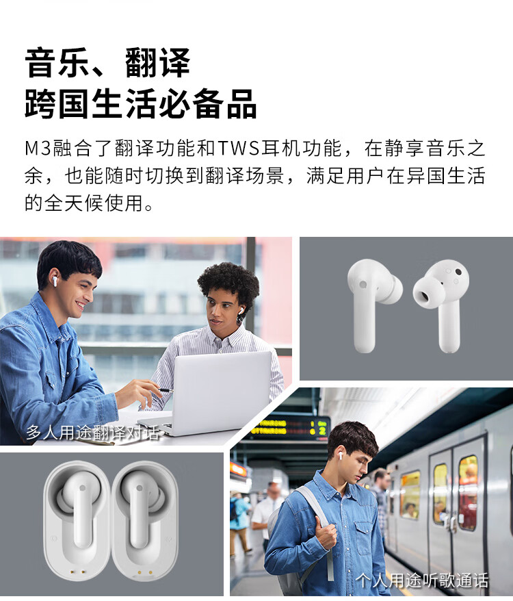 Time Pot M3 Travel Translation Headset Multi-language Learning Intelligent Noise Reduction Simultaneous Interpretation Bluetooth Offline Translator White