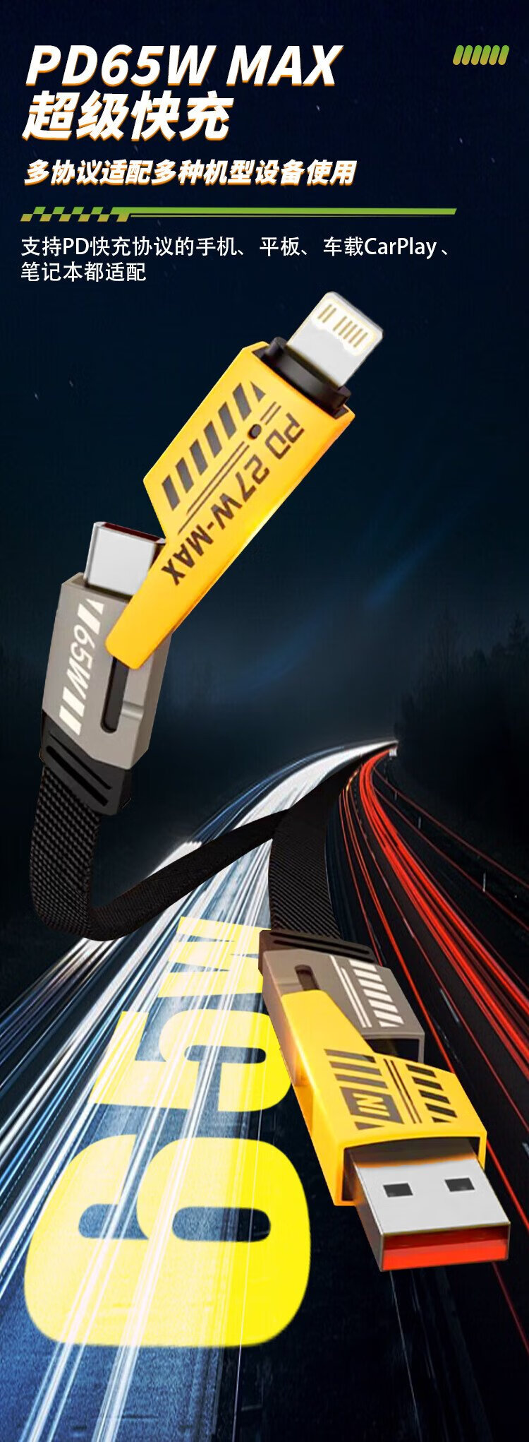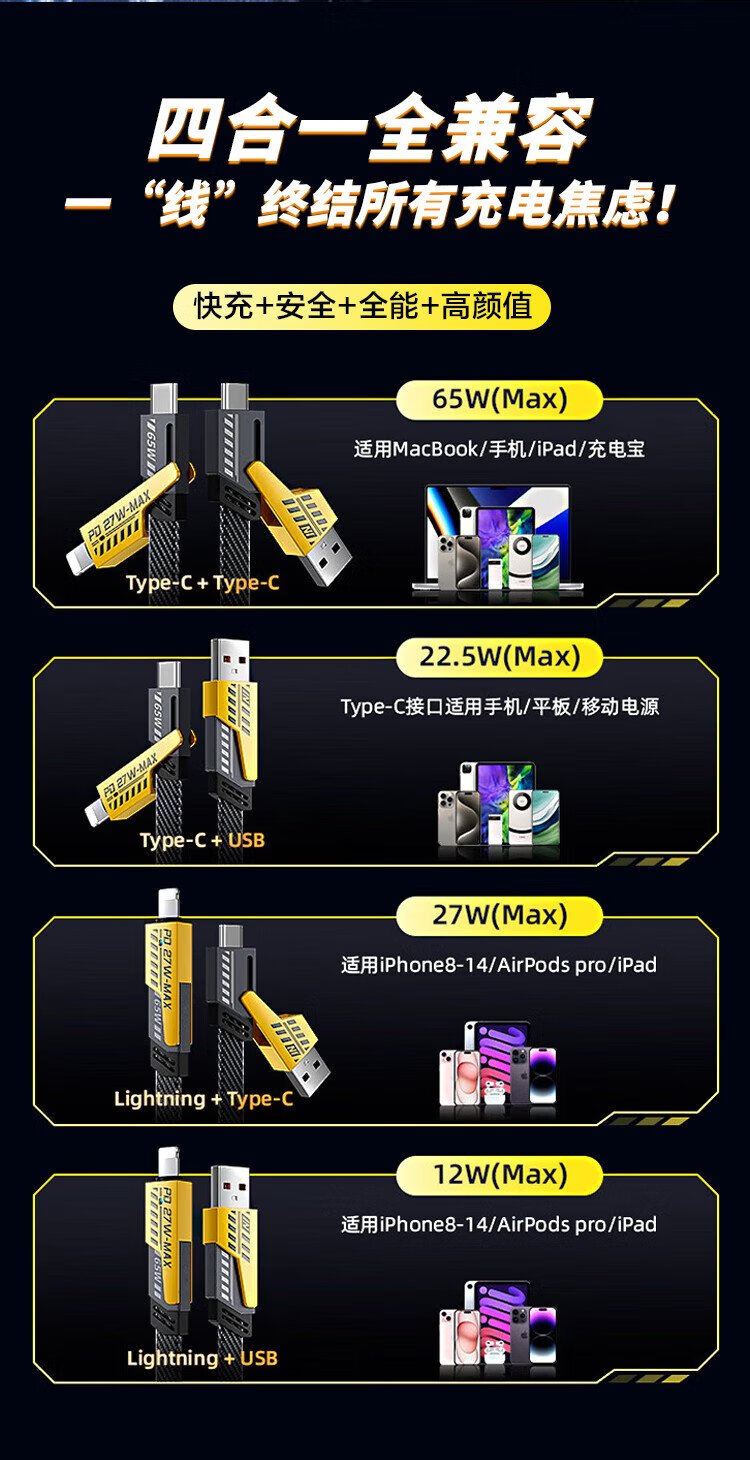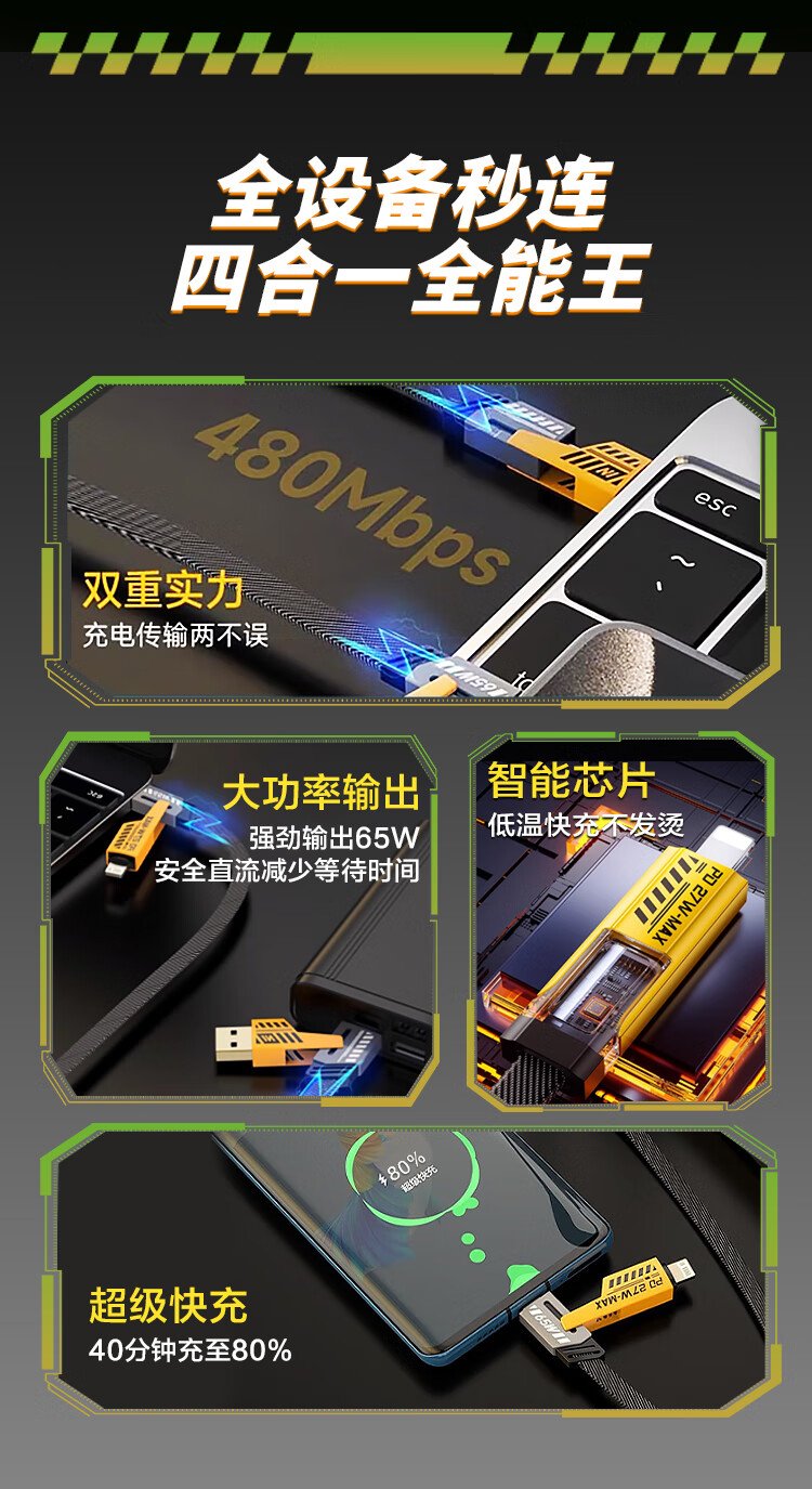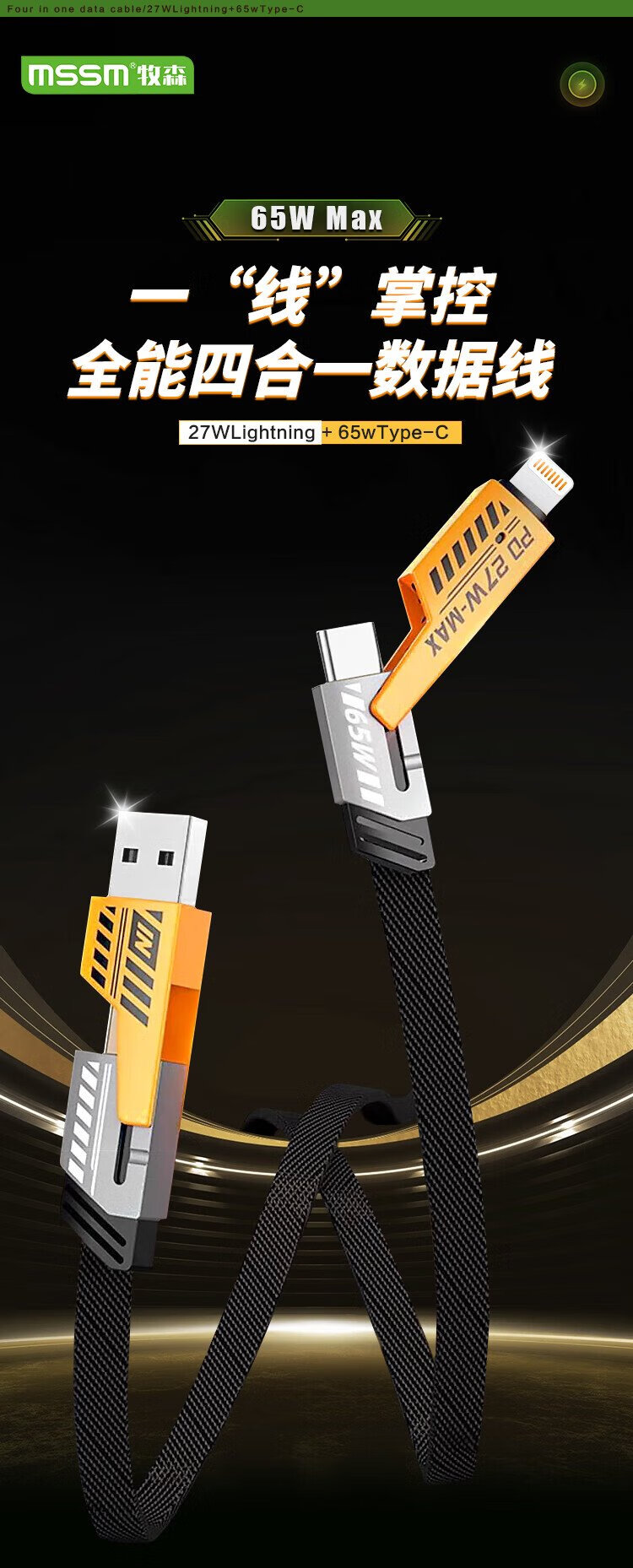 MSSM four-in-one data cable mecha multi-function data cable braided cable PD65W fast charging suitable for Apple 17/16 Xiaomi Huawei mate70/60 tablet charging cable 1 meter