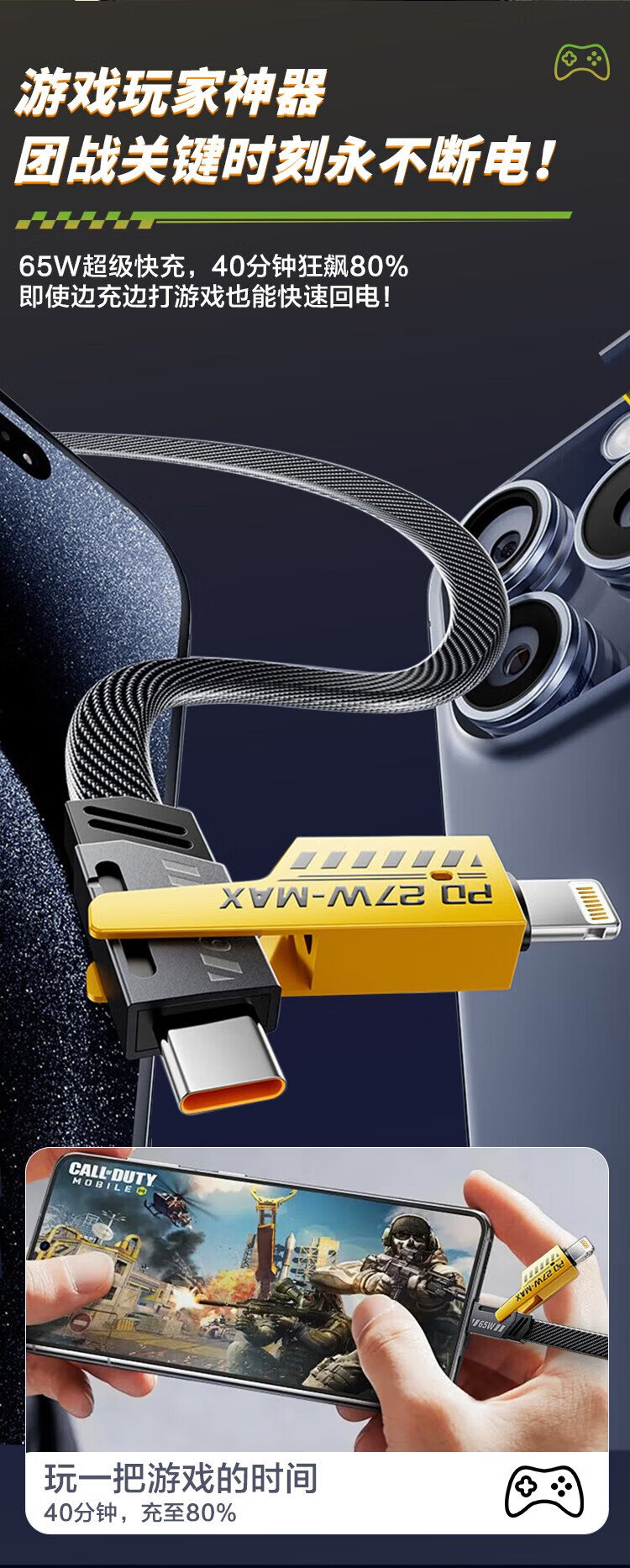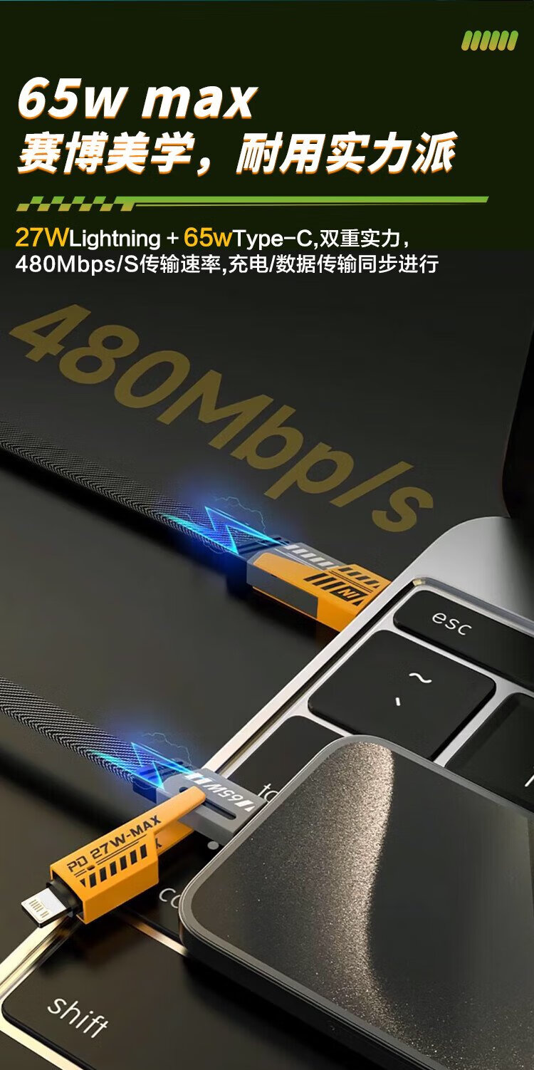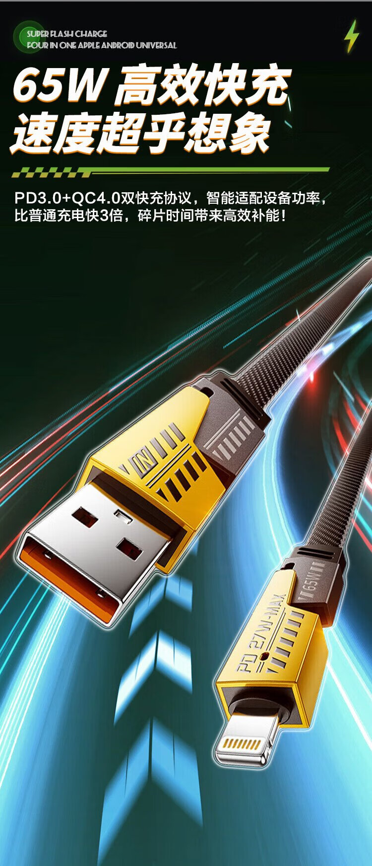 MSSM four-in-one data cable mecha multi-function data cable braided cable PD65W fast charging suitable for Apple 17/16 Xiaomi Huawei mate70/60 tablet charging cable 1 meter