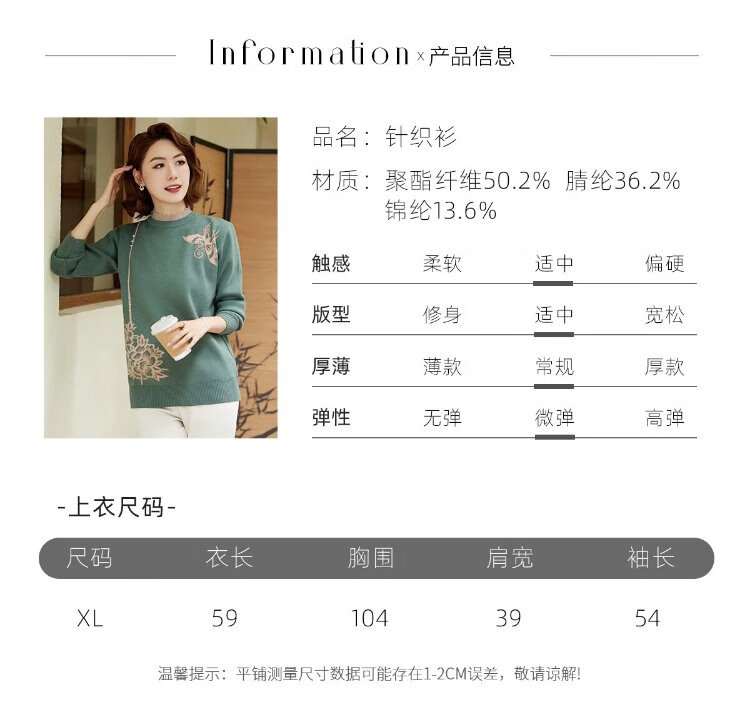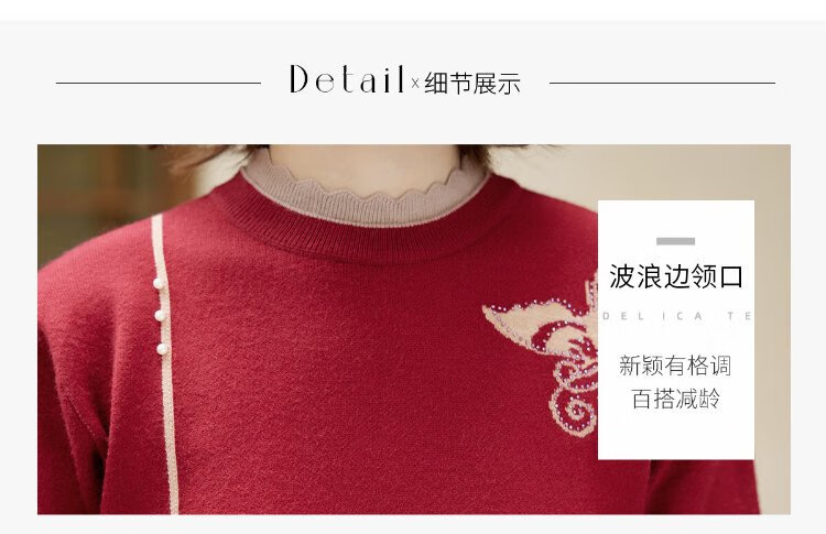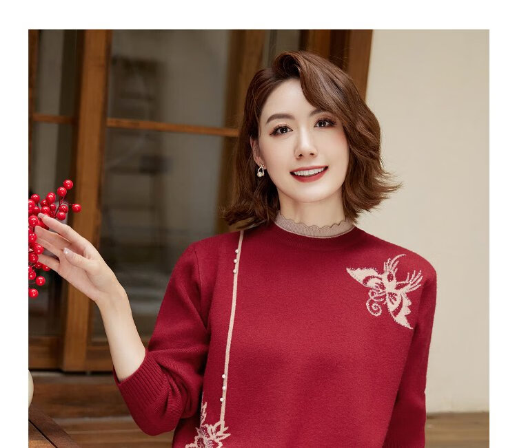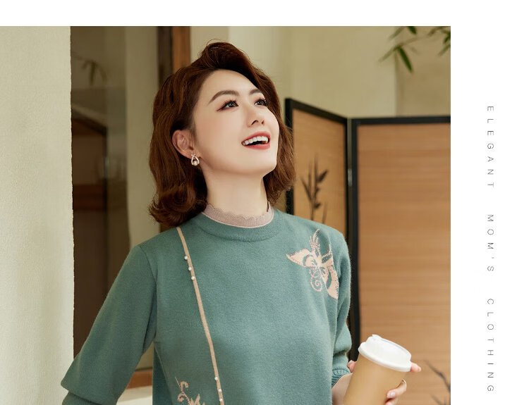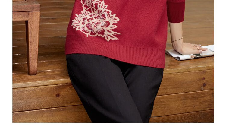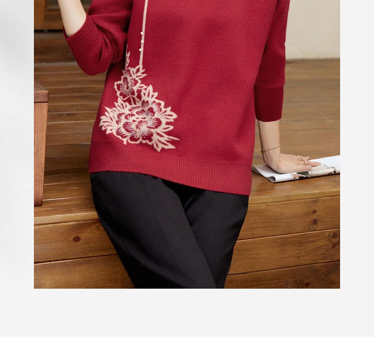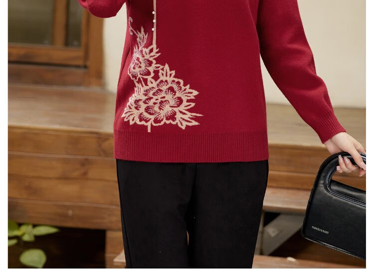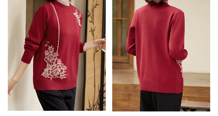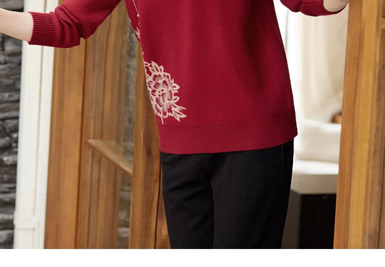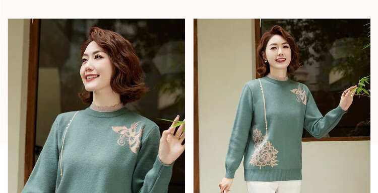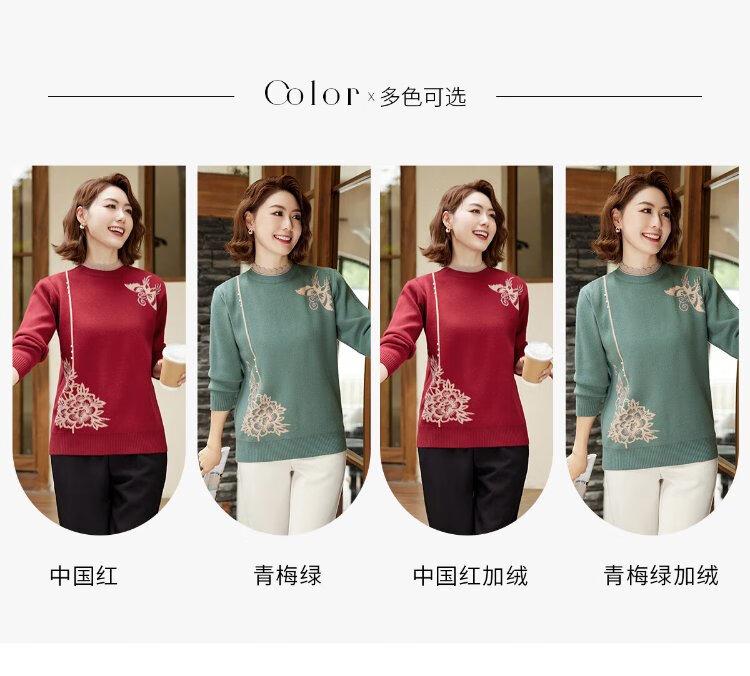 Yu Zhaolin middle-aged and elderly women's autumn and winter embroidered velvet sweaters mother's sweater women's sweater for the elderly Y44Z023