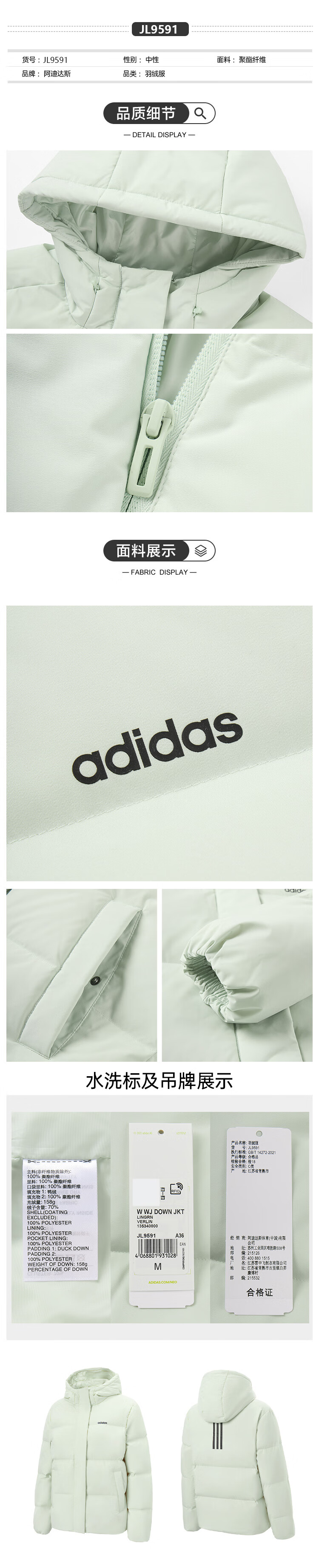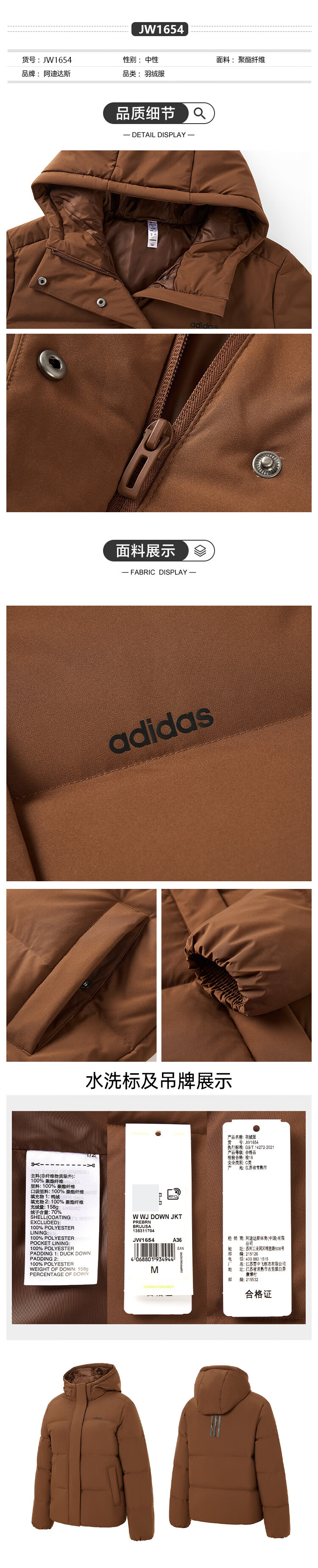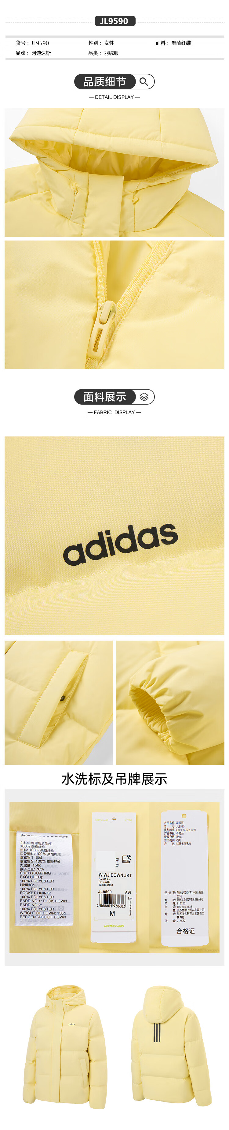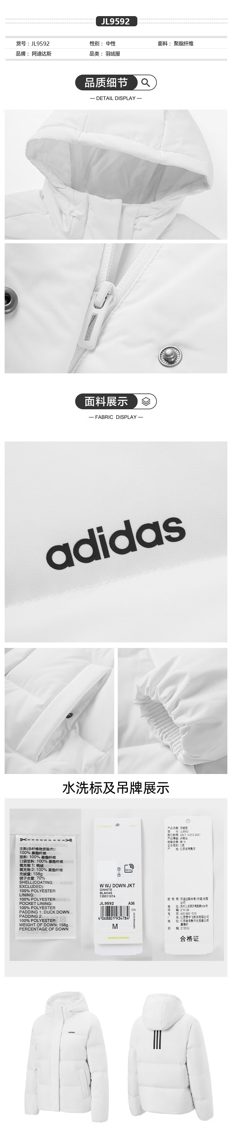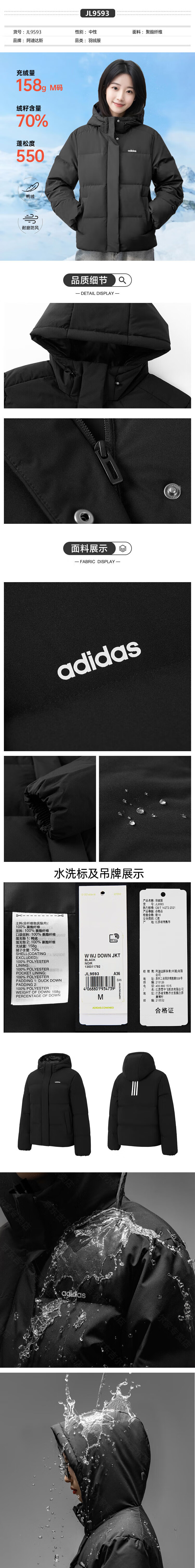 Adidas 550 Puff Commuting Windproof Warm Duck Down Down Jacket Women's Winter Stand Collar S Size