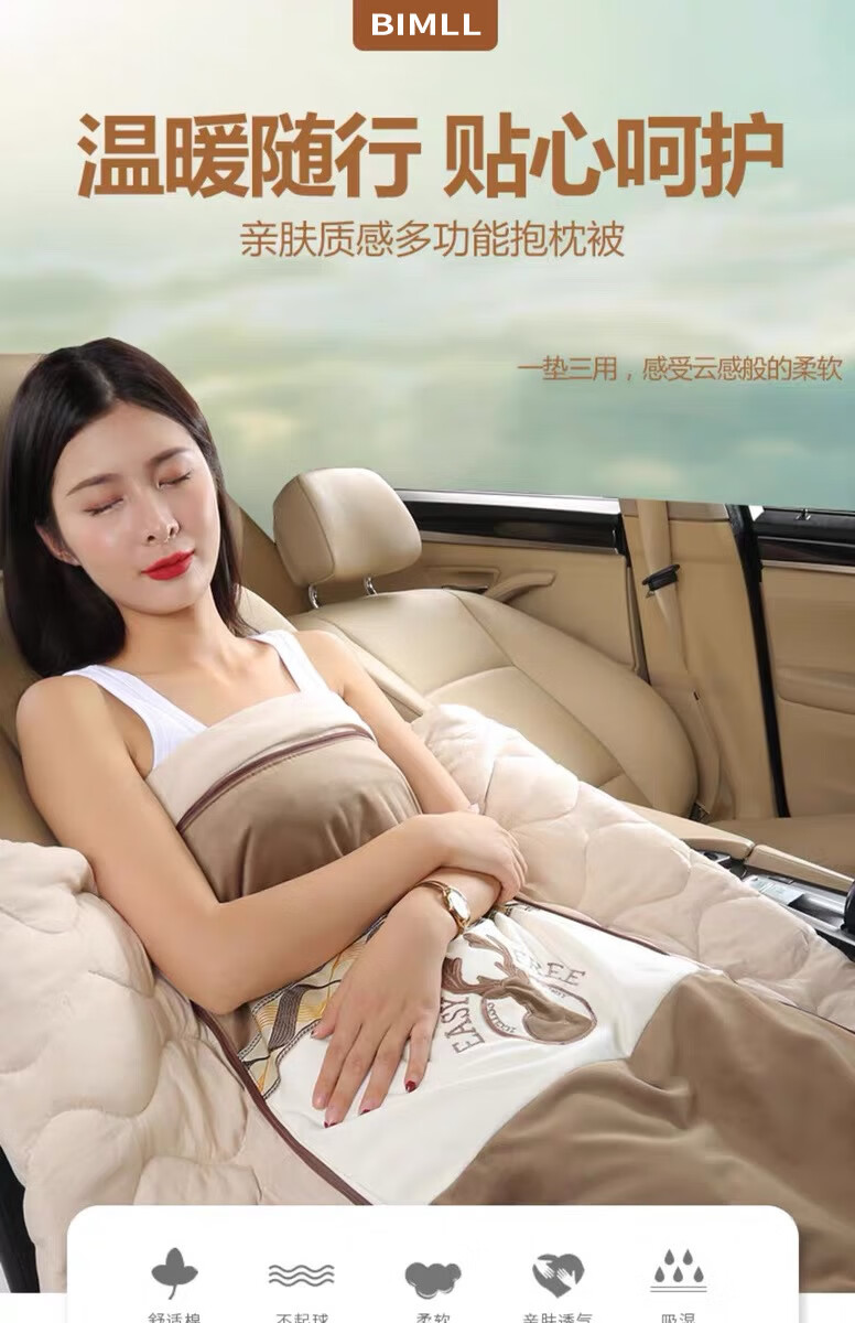 BIMLL B Car Pillow Quilt Waist Pillow Multifunctional Folding Dual-Purpose High-end Two-in-One Car Four Seasons Office Nap