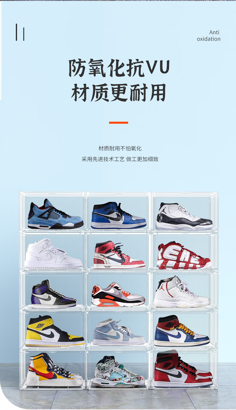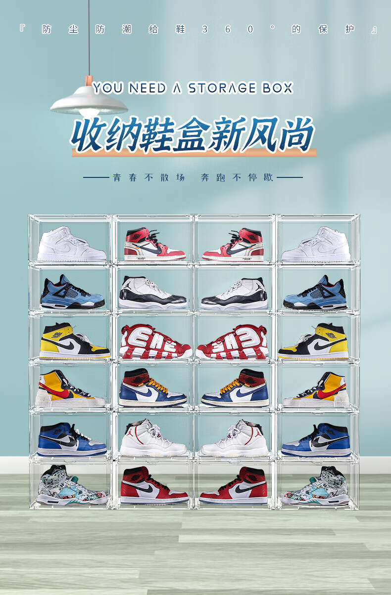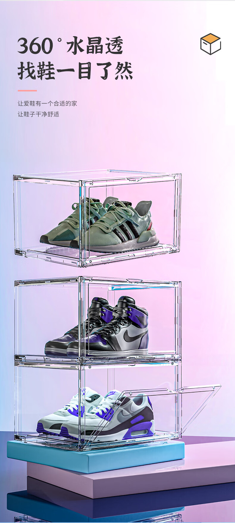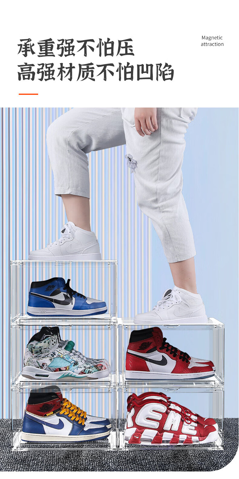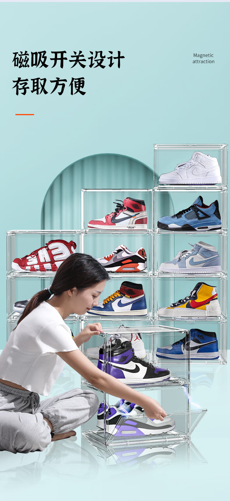 Bahainiao transparent shoe box shoe storage box pet integrated high-top AJ1 shoe wall display cabinet magnetic sneaker display box