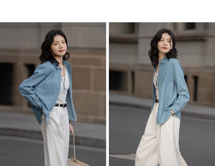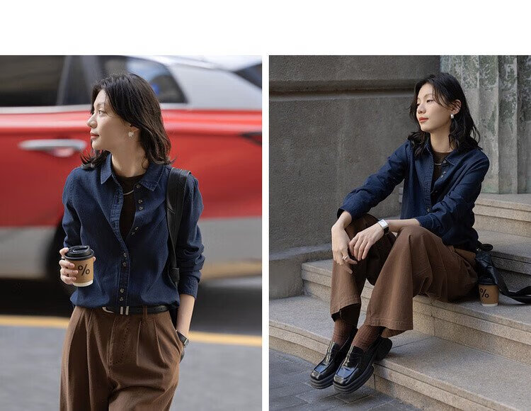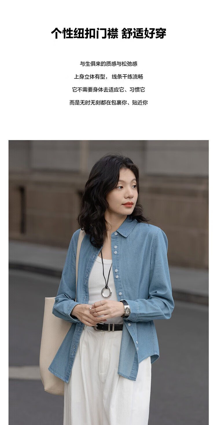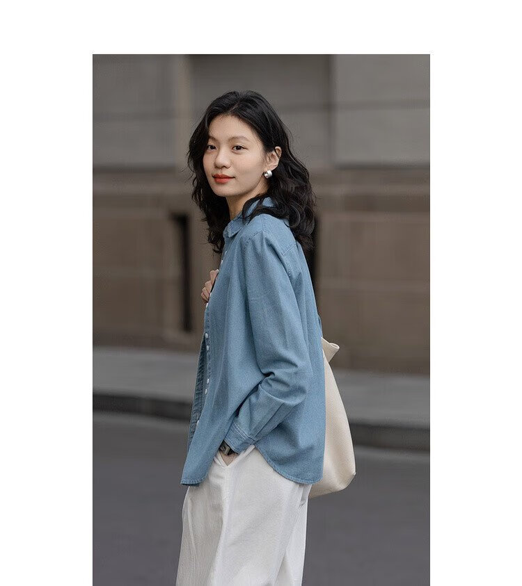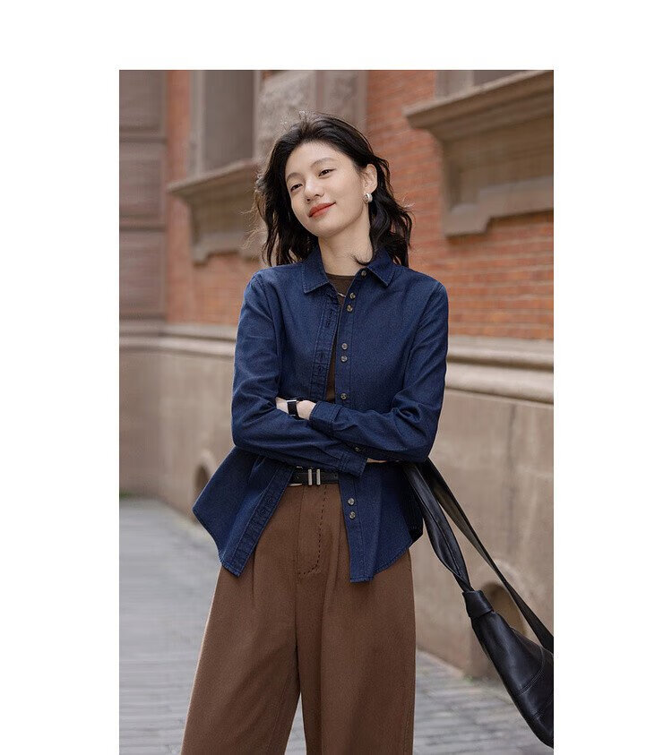 Demana fashionable layering spring simple style lapel shirt cloud-like cotton double-button denim shirt women's top