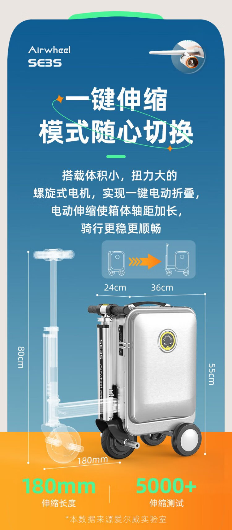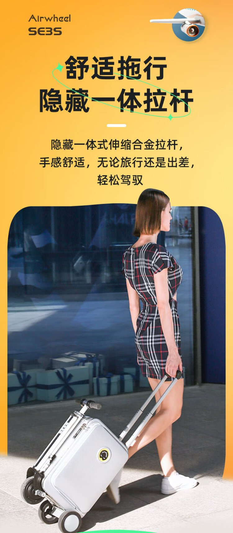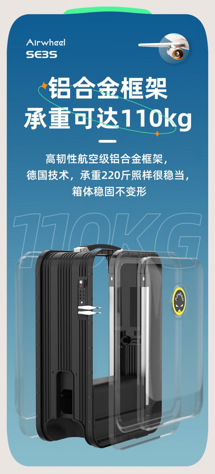 Airwheel Airwheel electric suitcase, rideable trolley case, sit and travel aluminum frame luggage 20-inch boarding case