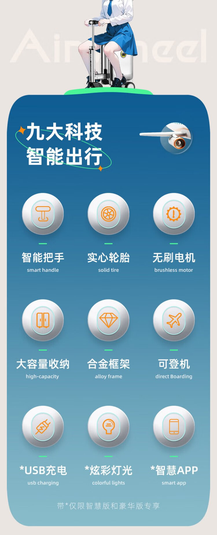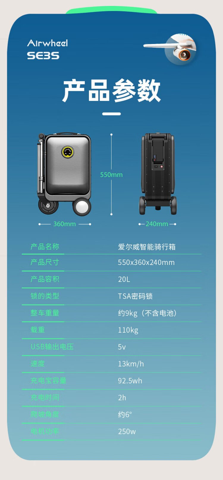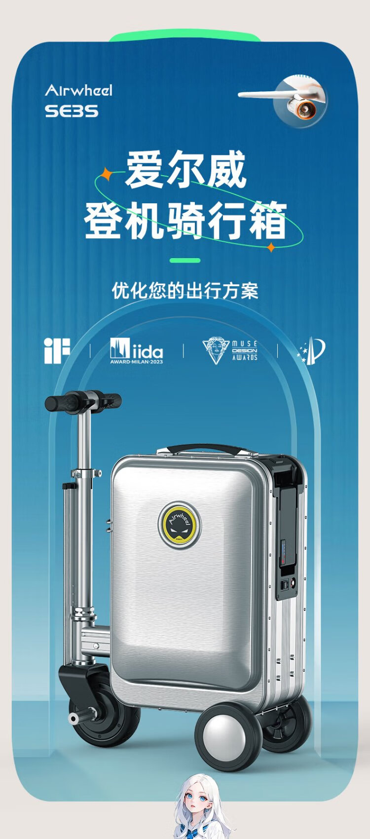 Airwheel Airwheel electric suitcase, rideable trolley case, sit and travel aluminum frame luggage 20-inch boarding case