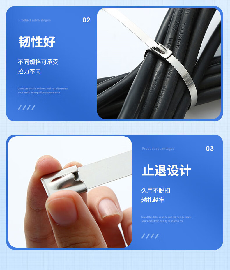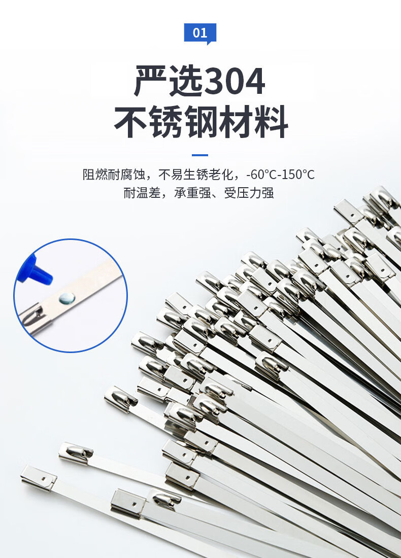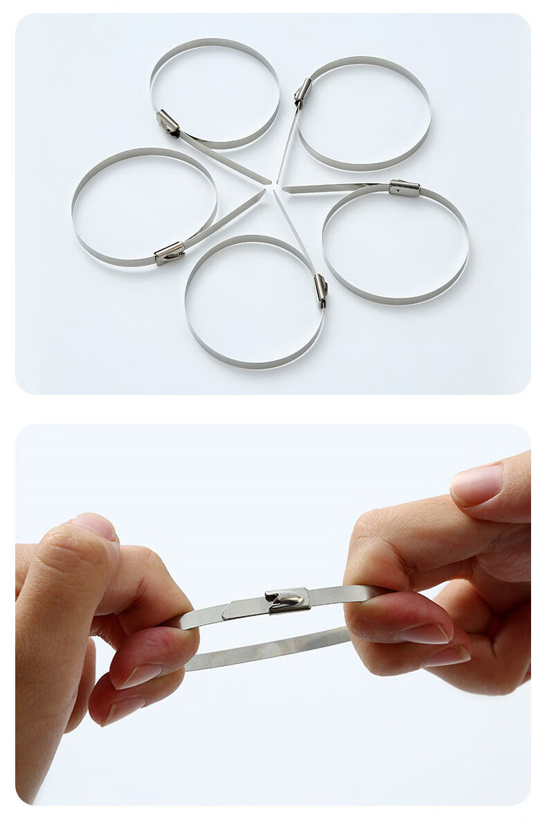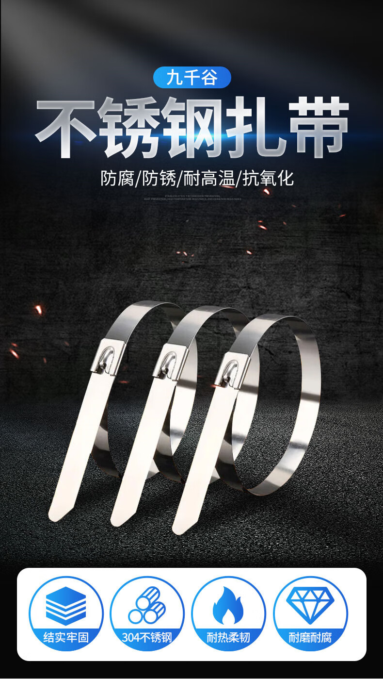 Самоблокирующиеся кабельные стяжки Jiuqiangu из нержавеющей стали 304, устойчивые к коррозии, устойчивые к высоким и низким температурам металлические промышленные кабельные стяжки, садовые кабельные стяжки для наружной обвязки, нескользящие фиксированные кабели 7,9x400 мм, 50 шт.