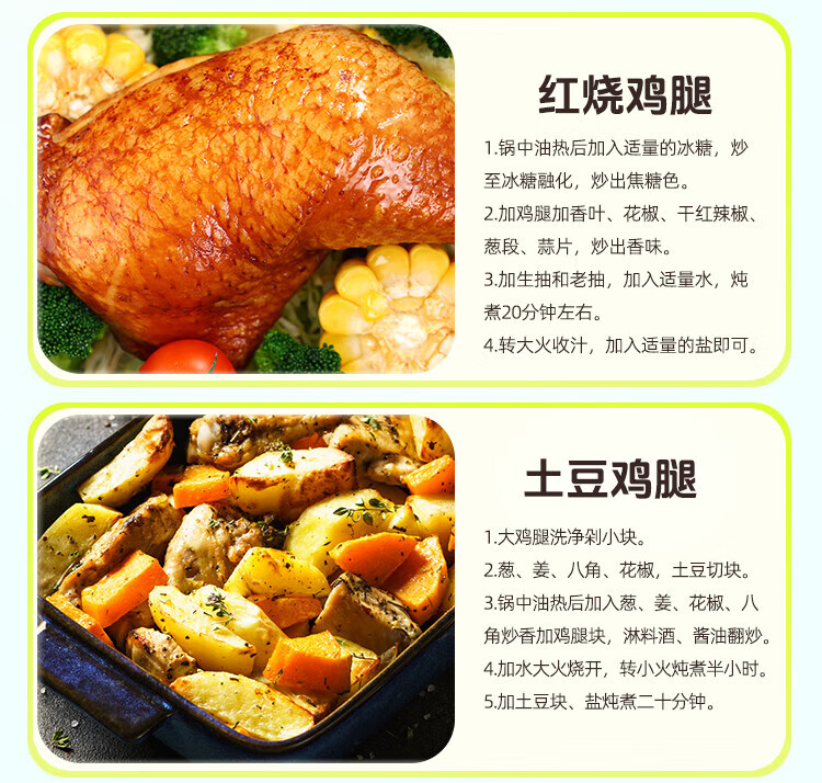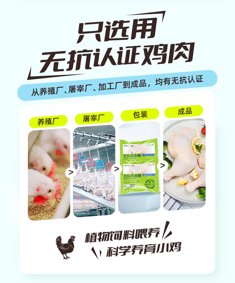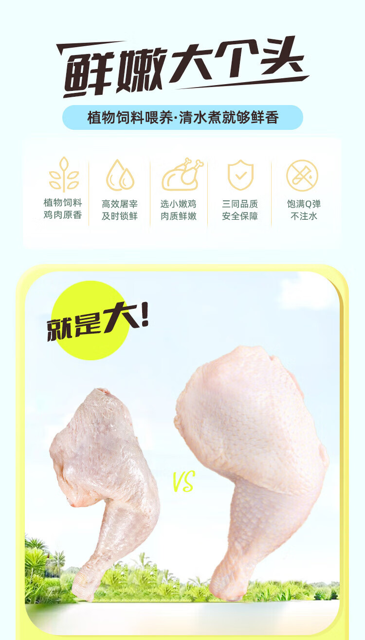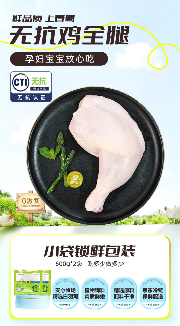 Fresh chicken whole legs without antibiotics, net weight 2.4Jin Jin equal to 0.5kg (600g*2 bags) chicken thighs, roasted chicken legs, fried chicken legs, halal food