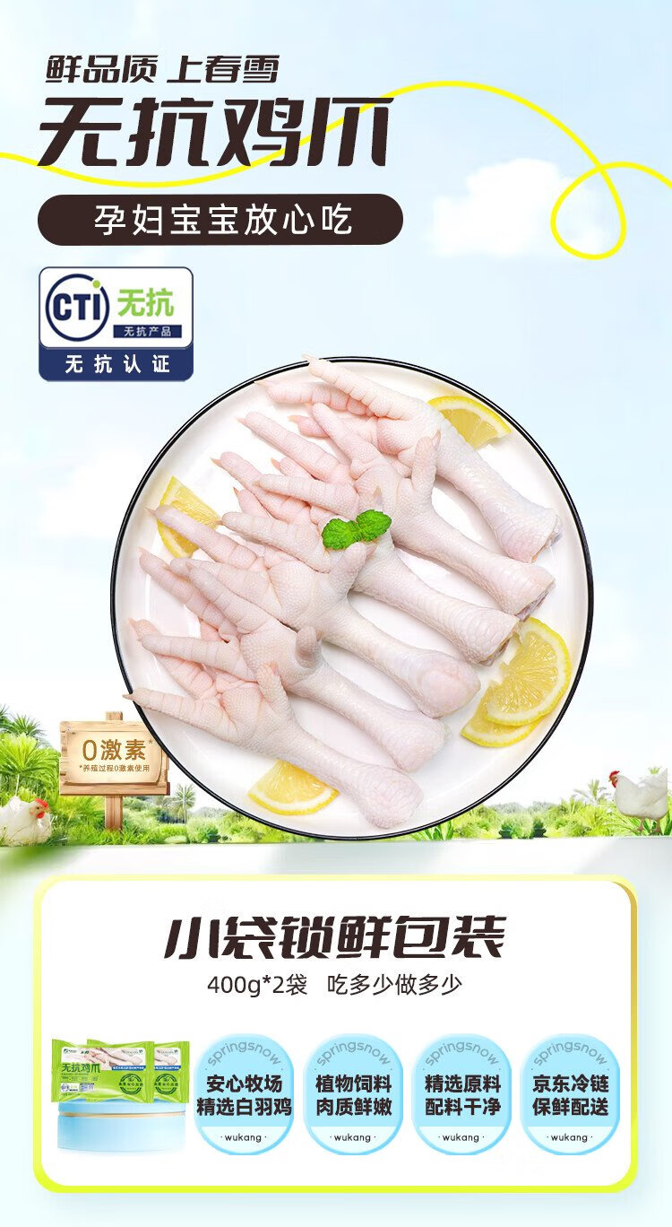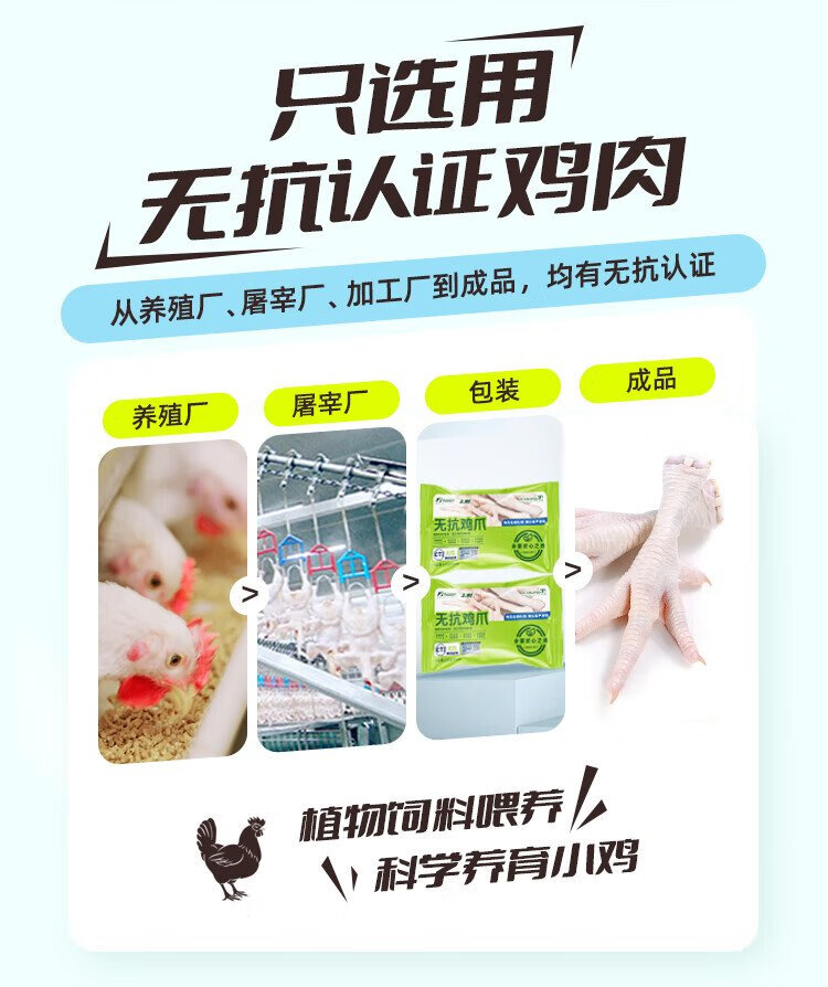 Fresh non-antibiotic chicken feet, net weight 1.6Jin Jin equal to 0.5kg (400g*2 bags) grilled chicken feet, braised chicken feet, fresh, halal food