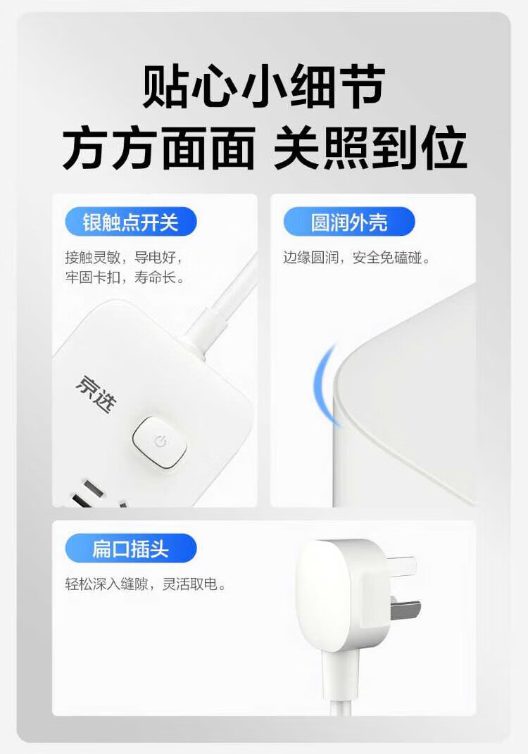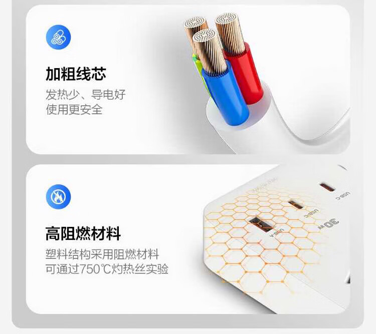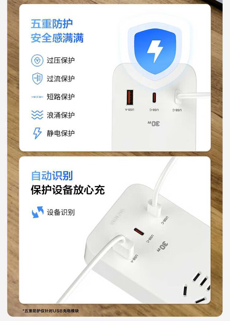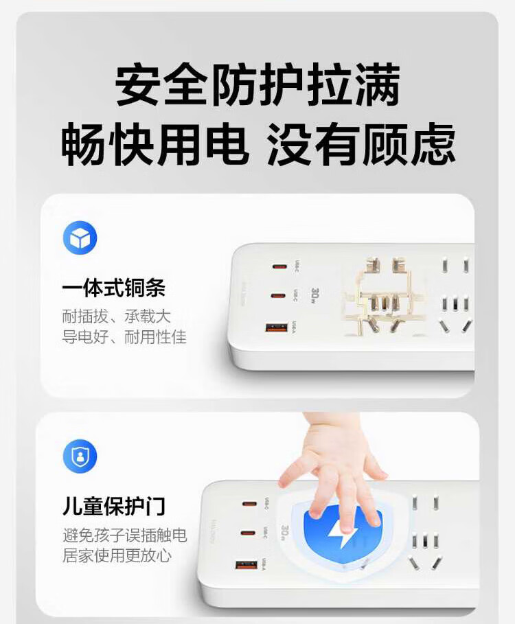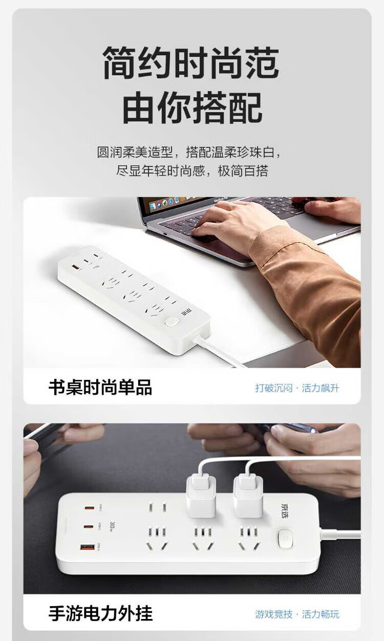 Jingxuan Jingdong's own brand 30WPD fast charging socket/socket board/socket strip/socket board Type-c port + USB port + 6 jacks full length 1.8 meters white M733UC30