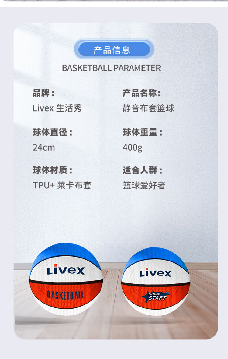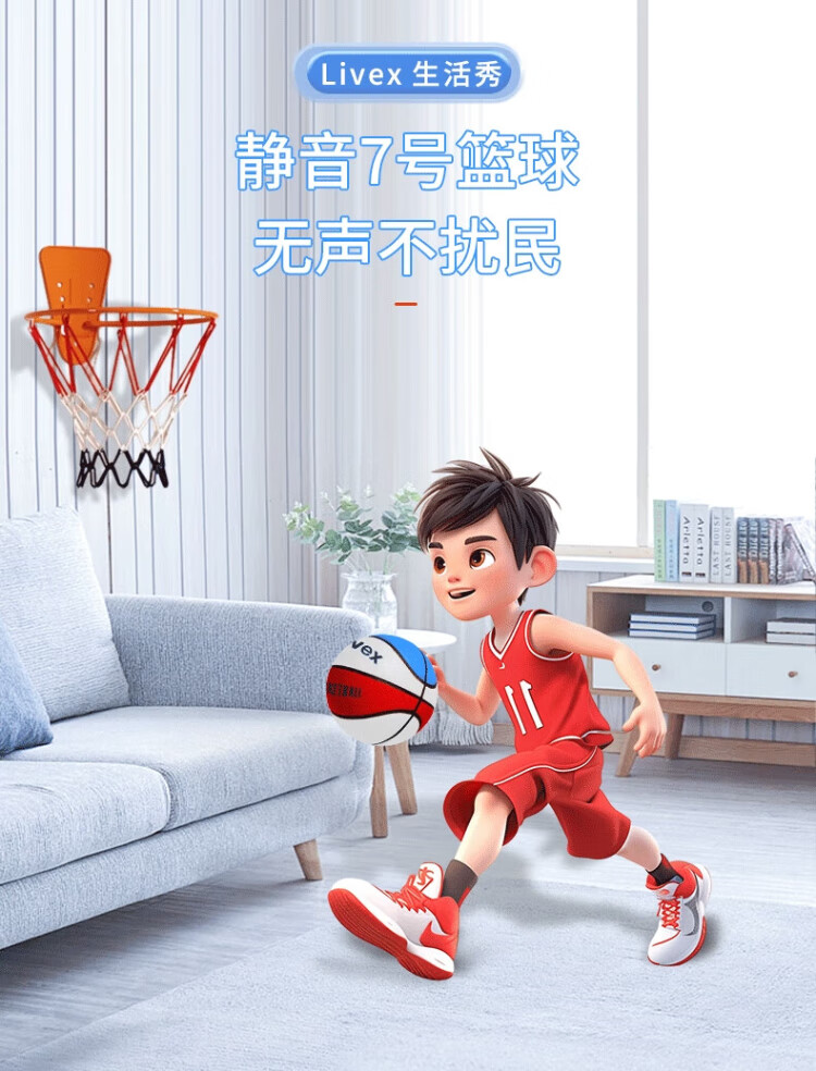 LIVEX Silent Silent Basketball No. 7 Children's Adult Indoor Training Sports Elastic Racket Ball Boy Toy Basket Rack