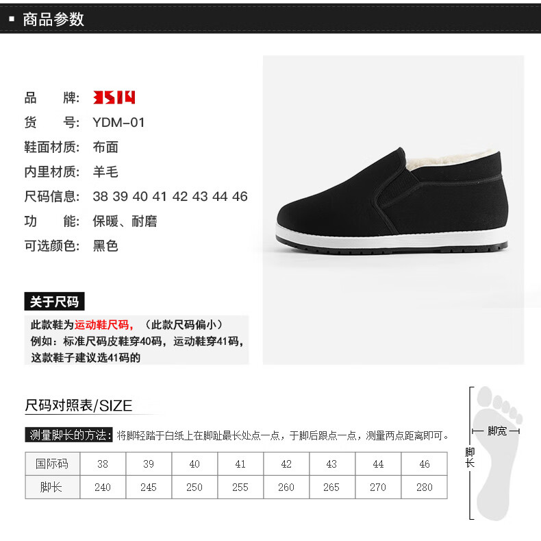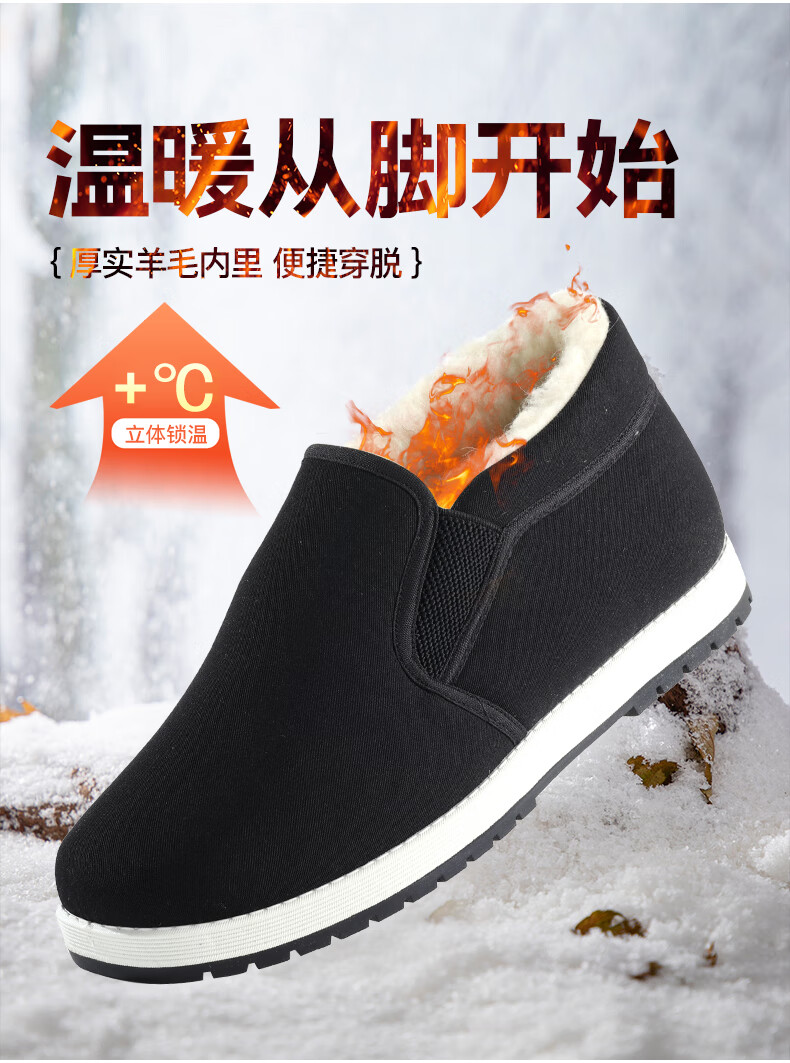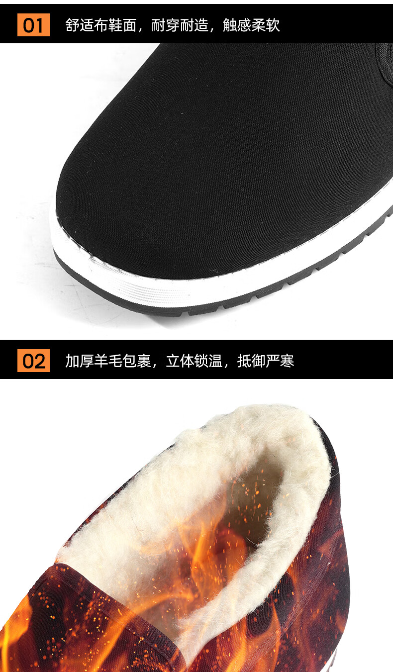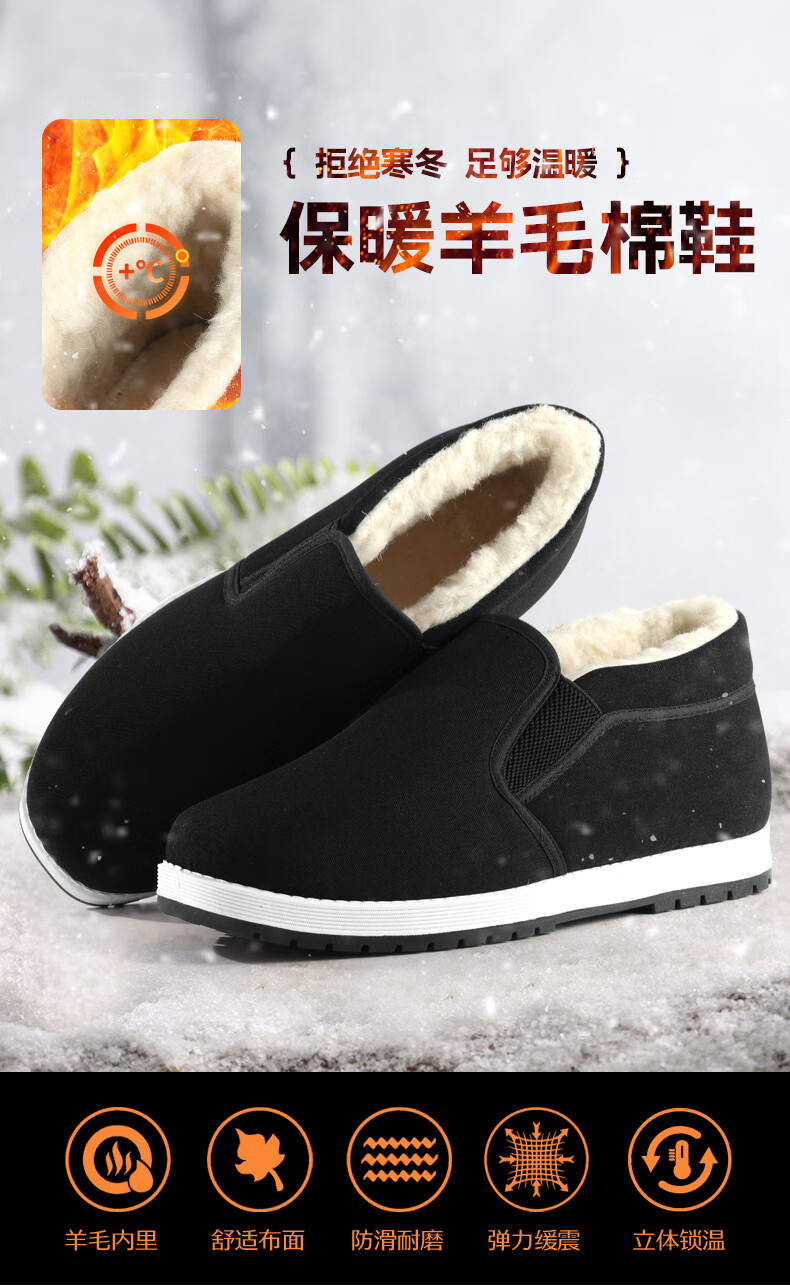 3514 Warm Wool Cloth Shoes Elderly Shoes Covers Men's Dad Shoes Winter Thickened Cotton Shoes Black 41
