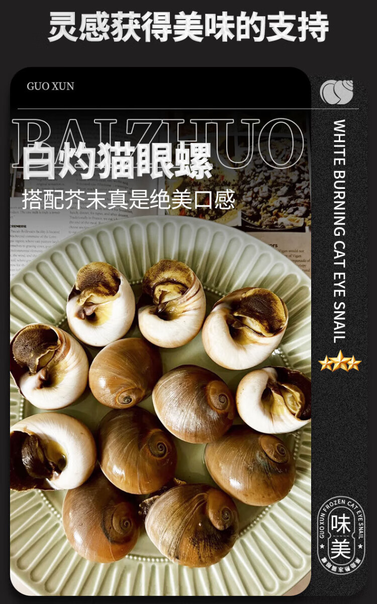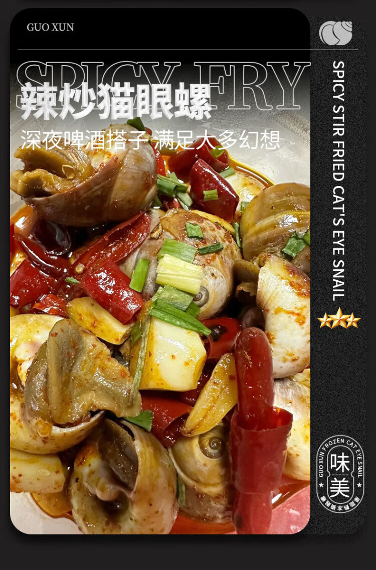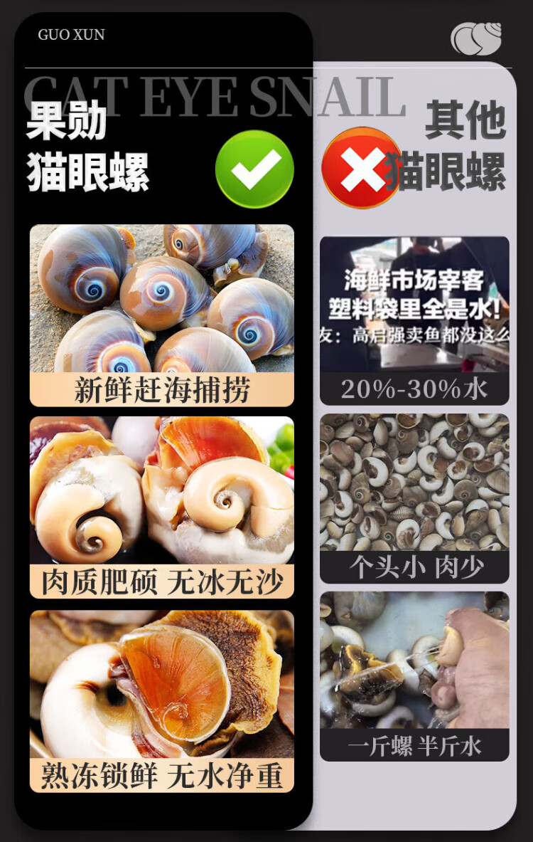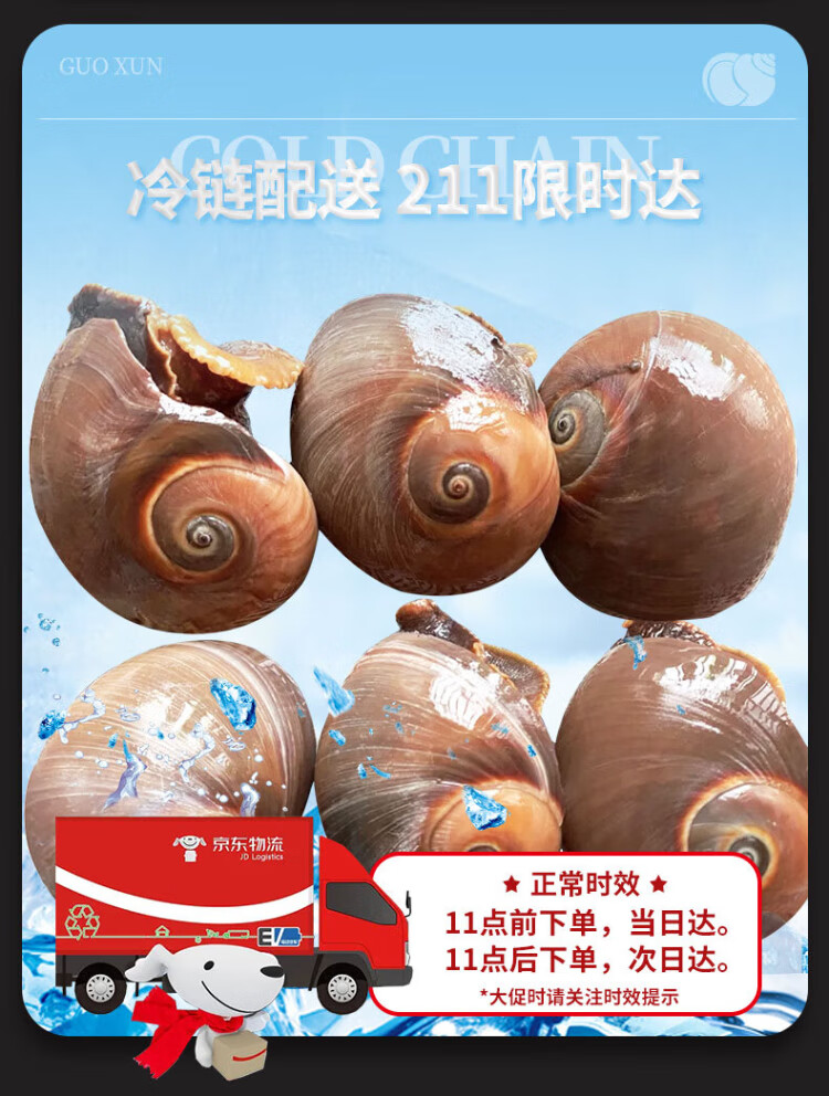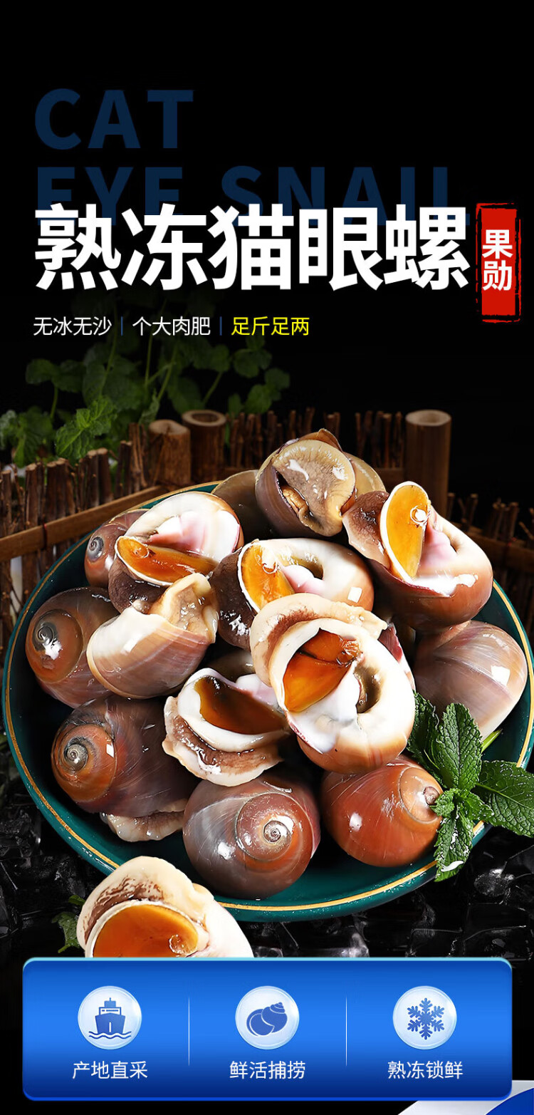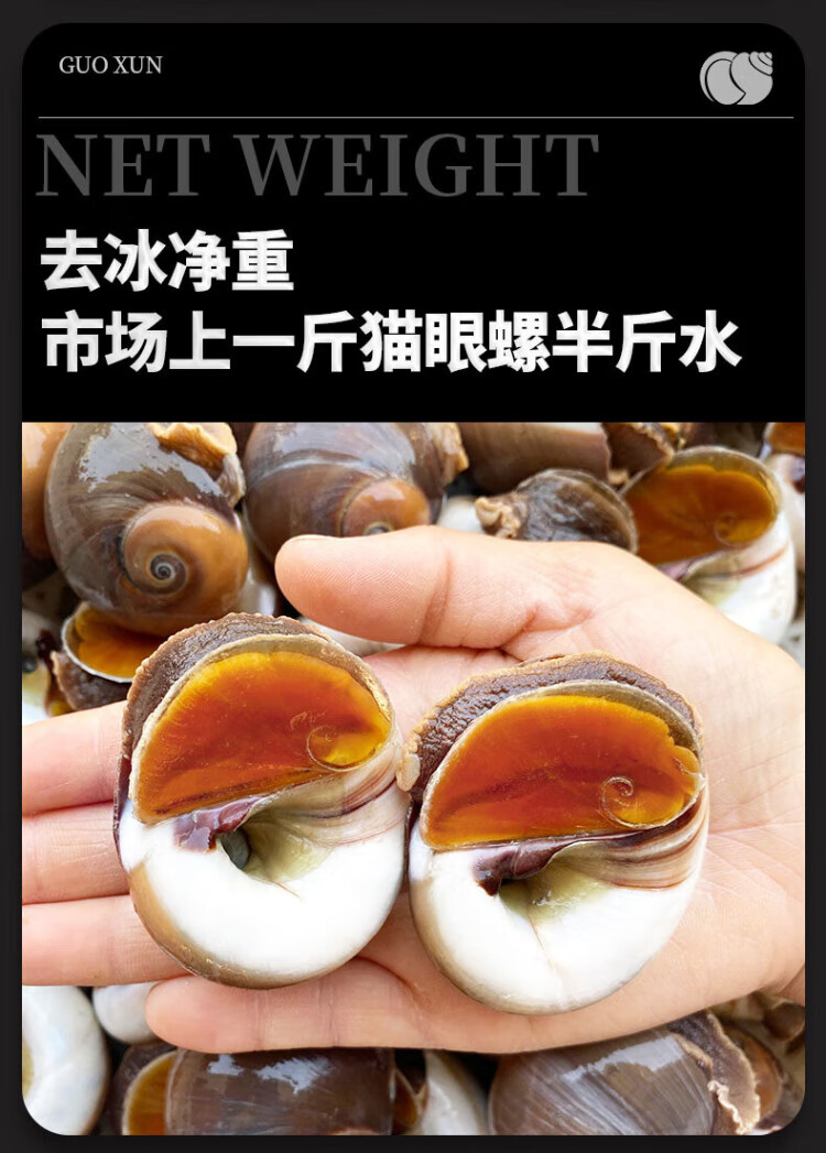 Guoxun extra large cat's eye snail (no ice, no sand) net weight 3Jin Jin is equal to 0.5kg, cooked frozen conch conch screws 13-14 heads/Jin Jin is equal to 0.5kg
