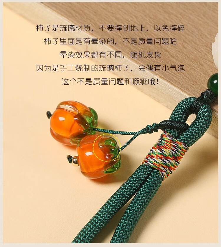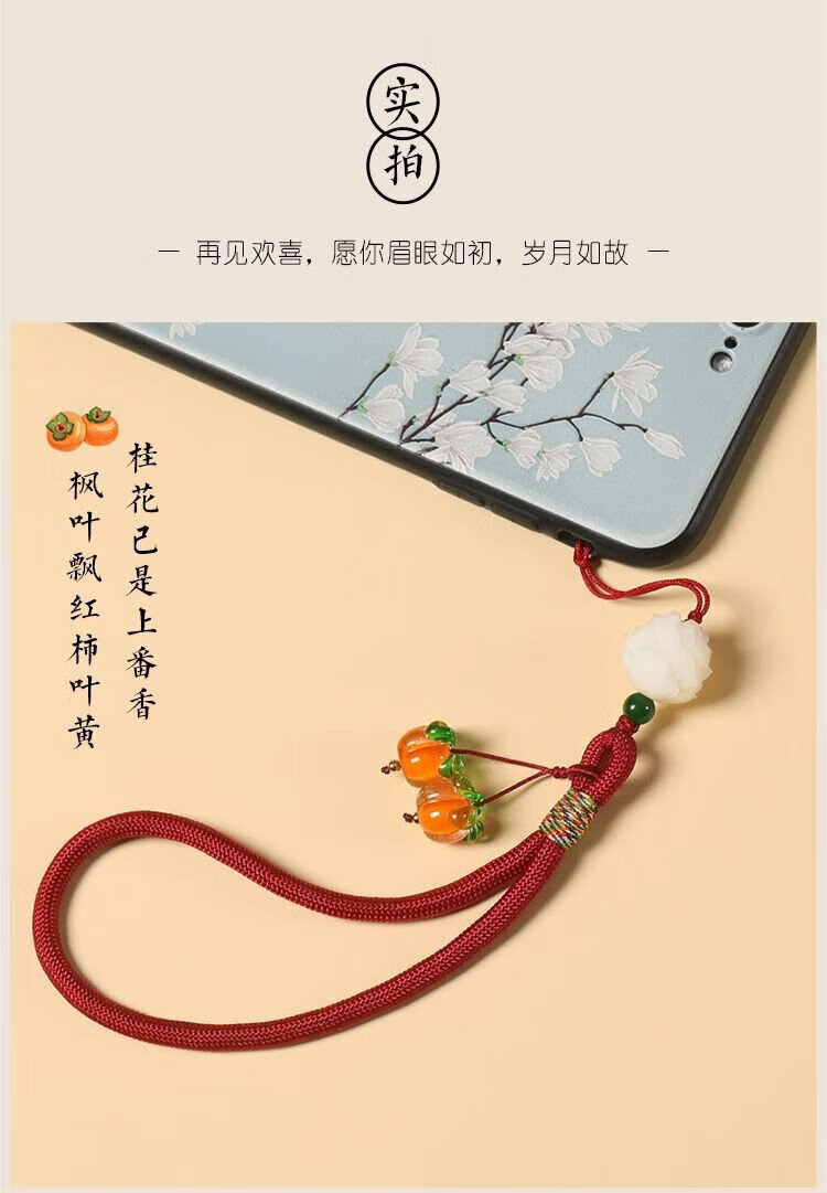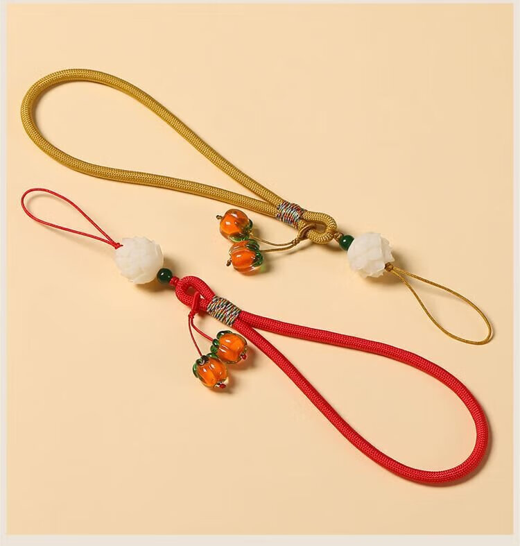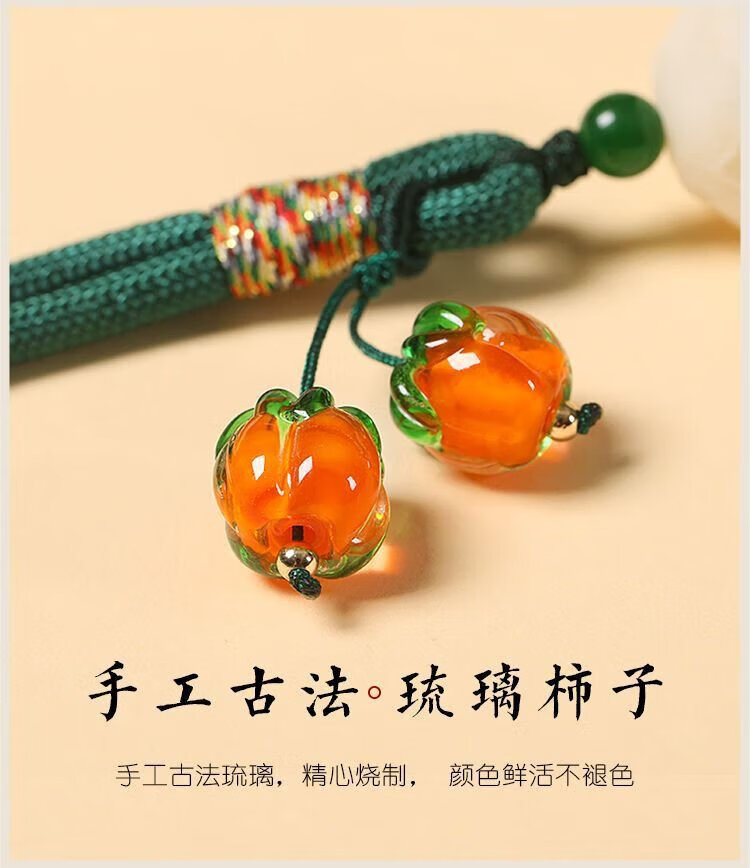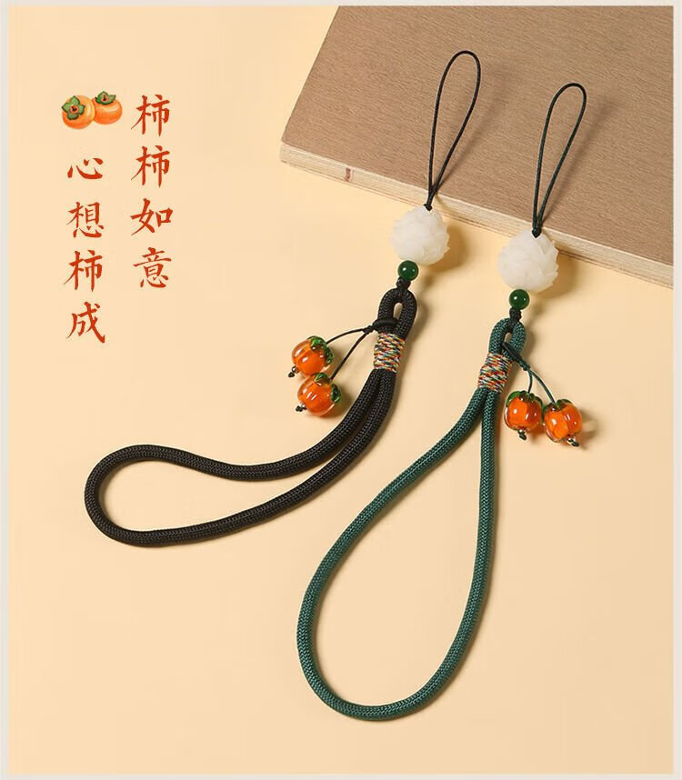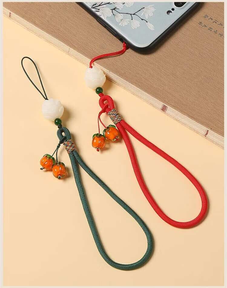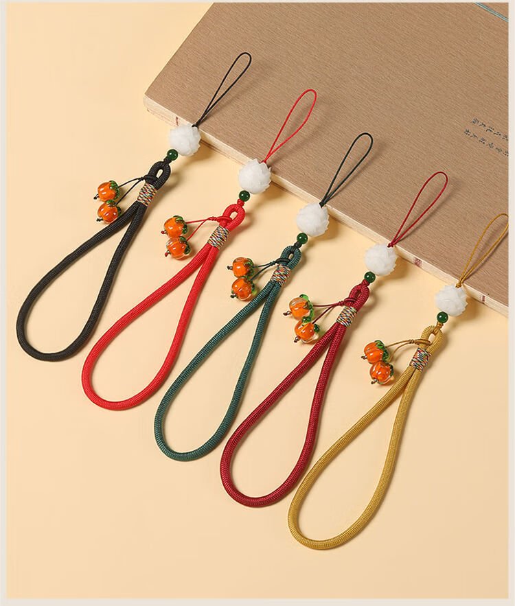 Bei Yipin mobile phone lanyard wrist persimmon persimmon Ruyi mobile phone chain pendant short mobile phone protective case lanyard men and women glass persimmon pendant U disk anti-lost rope accessories Chinese style