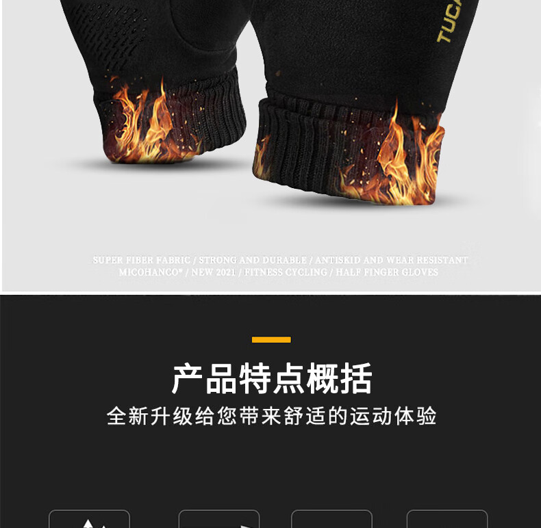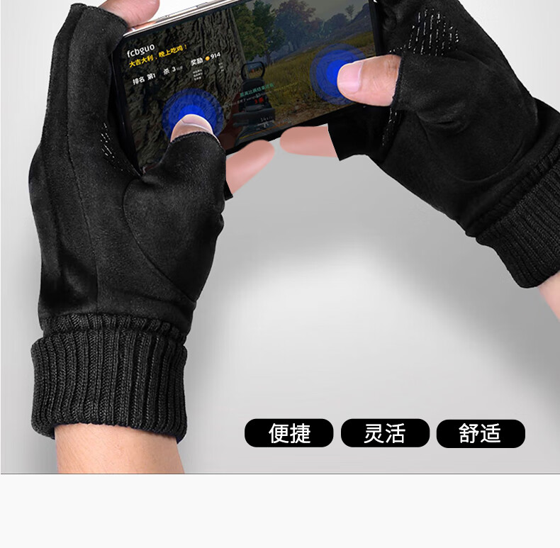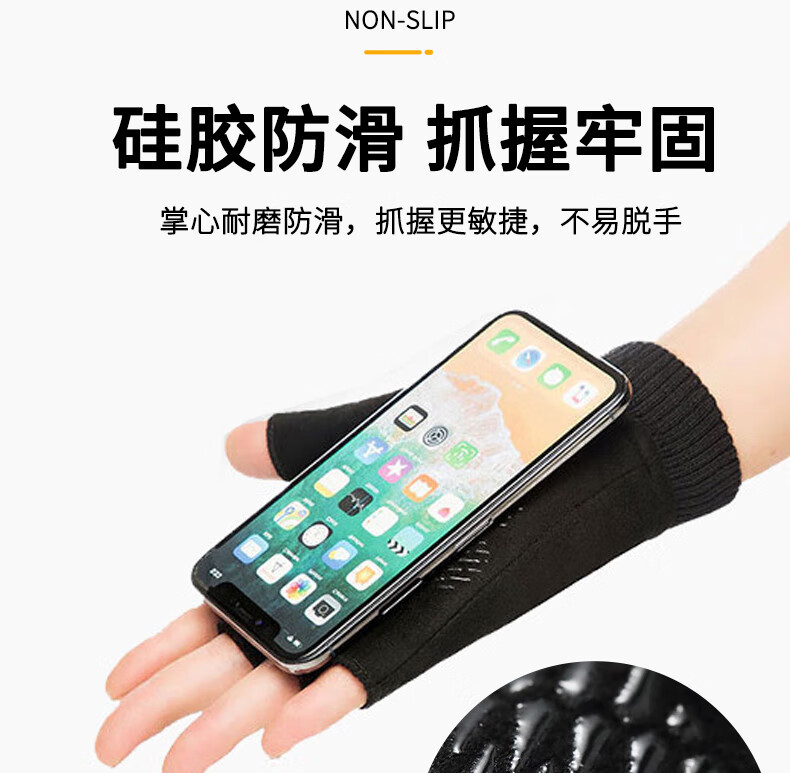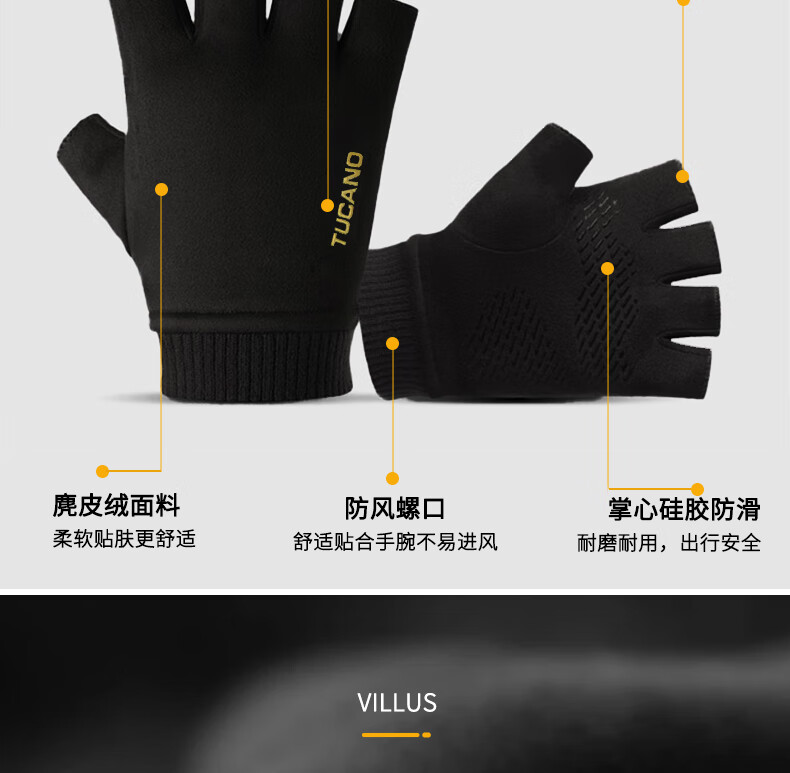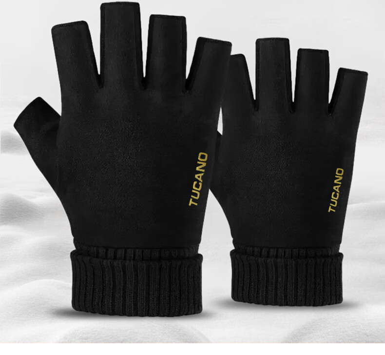 Woodpecker gloves men's winter suede warm cycling and driving half plus velvet thickened fingerless anti-slip half finger gloves