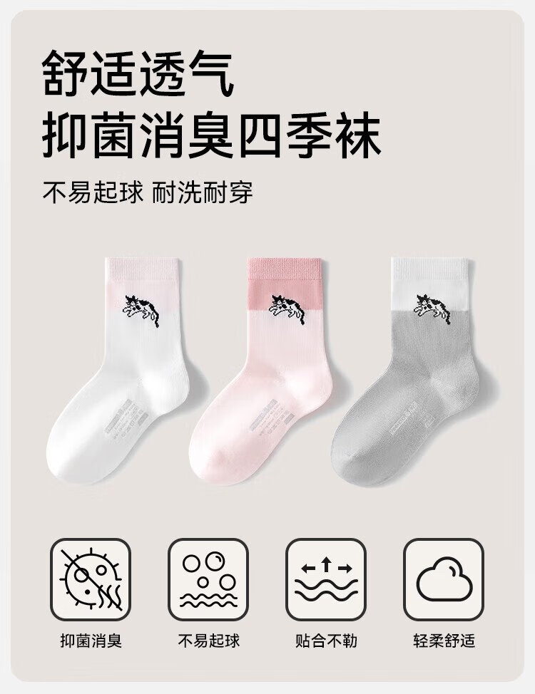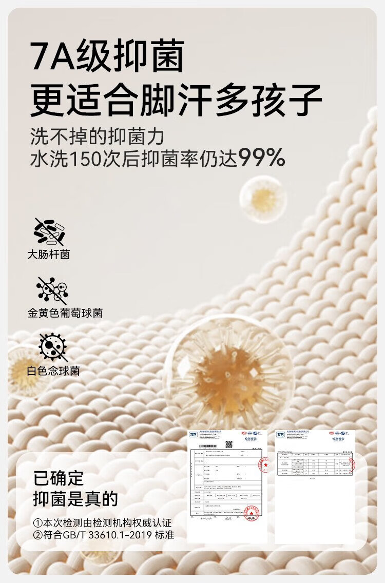 YEEHOO 7A Antibacterial Children's Socks Siro Spun Anti-pilling Boneless Comfortable Sports Deodorant Boys and Girls Students Mid-Tube Socks