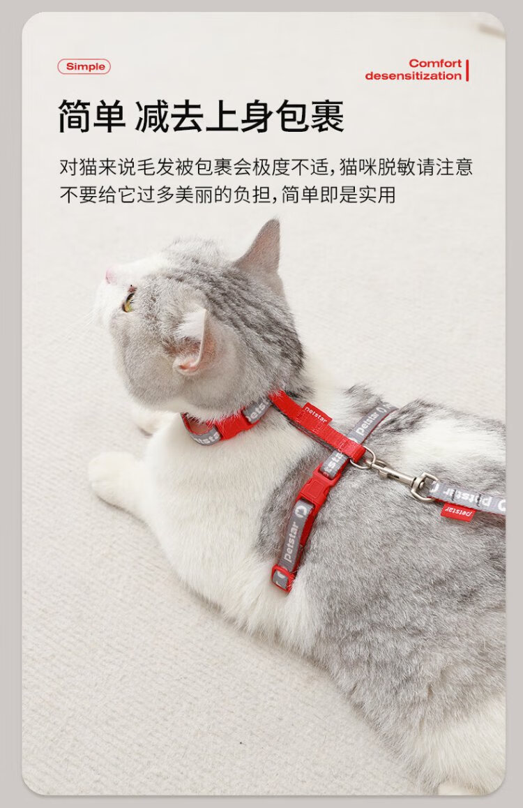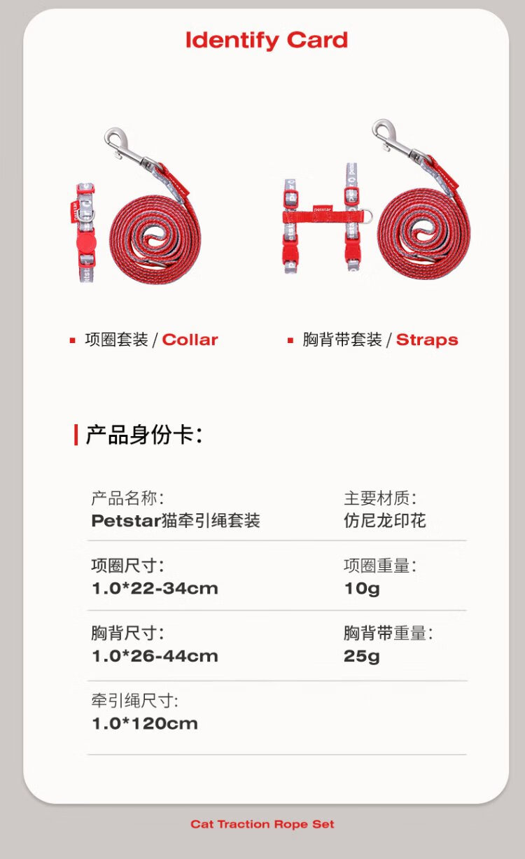 PETSTAR cat leash, I-shaped vest, harness, anti-breakaway, adjustable cat walking rope when going out