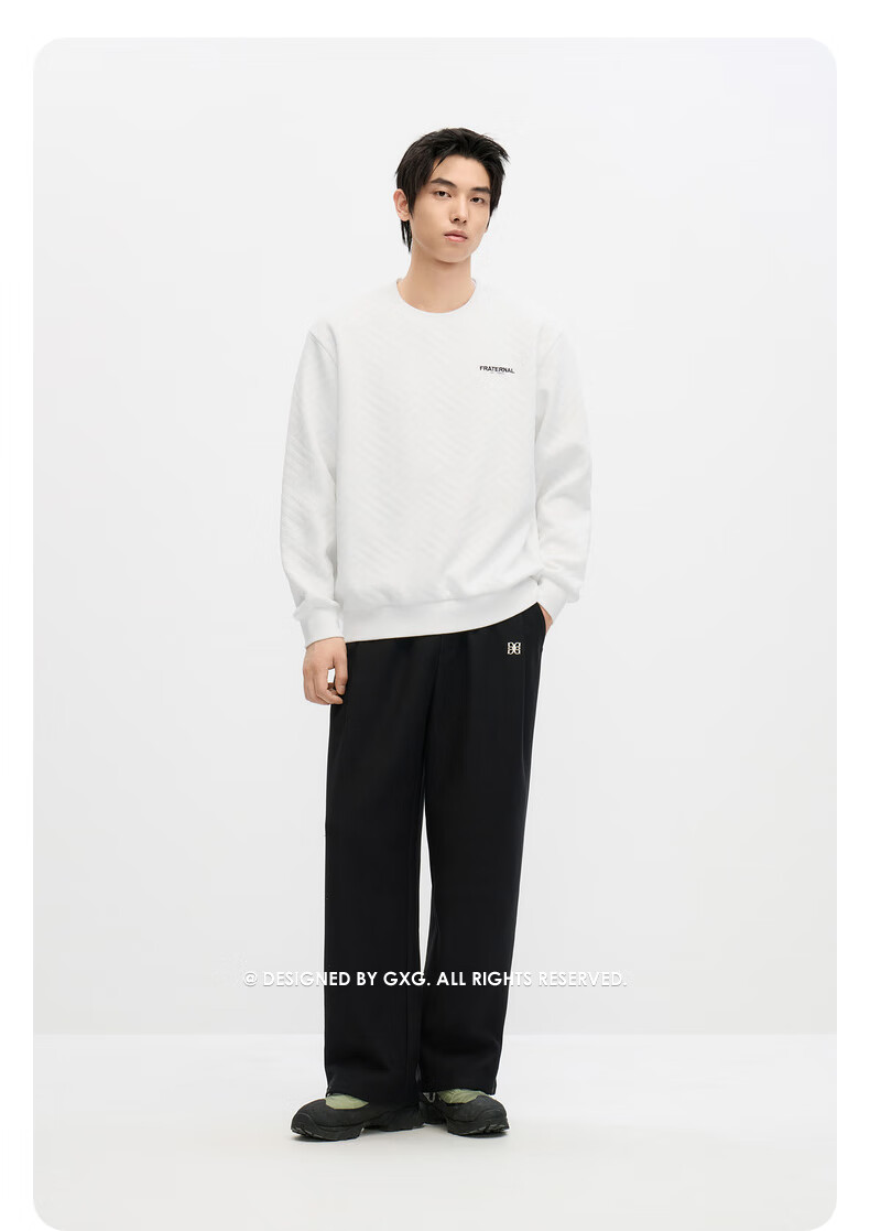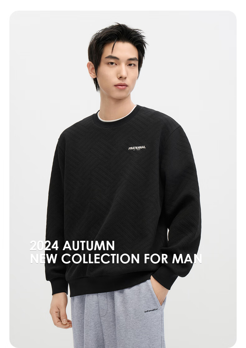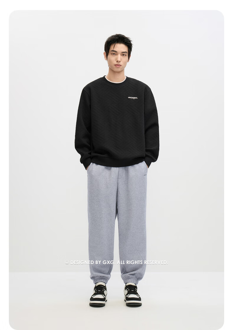 GXG Men's Round Neck Sweatshirt Men's 2024 Autumn New Arrival Black 170/M