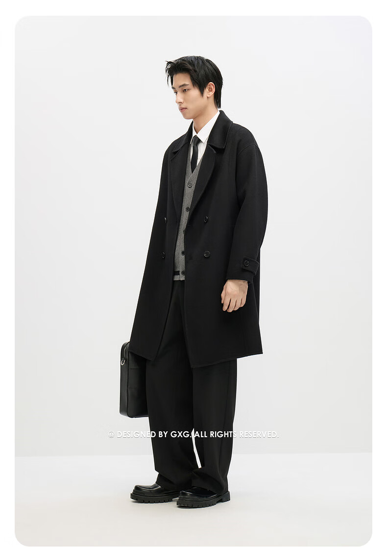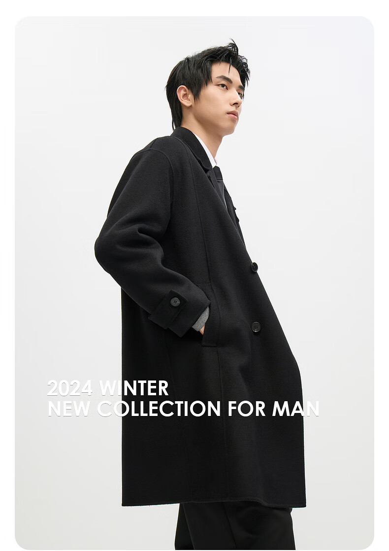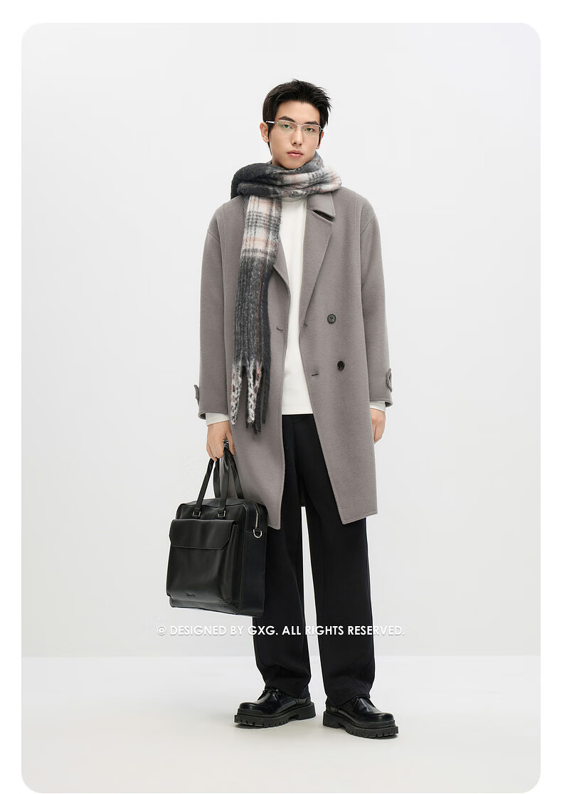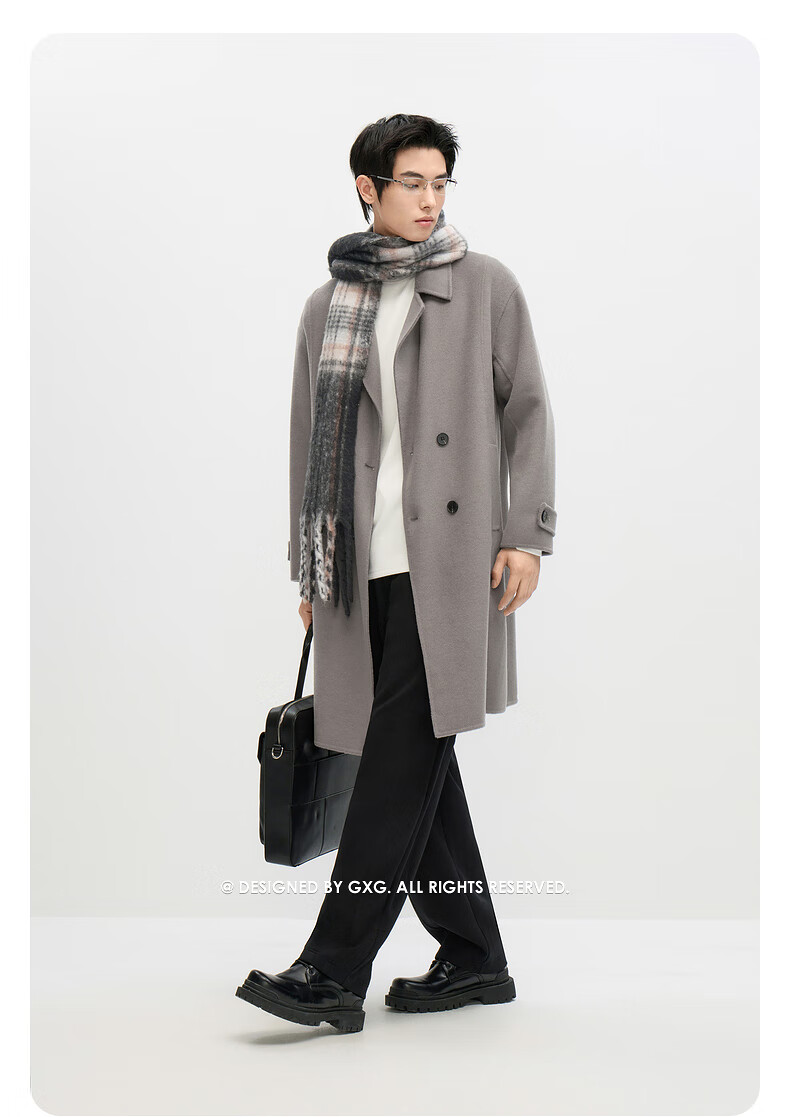 GXG men's long woolen coat black winter 2024 new arrival coffee color 175/L