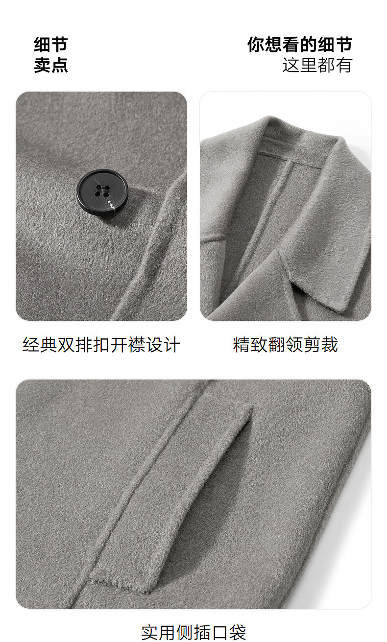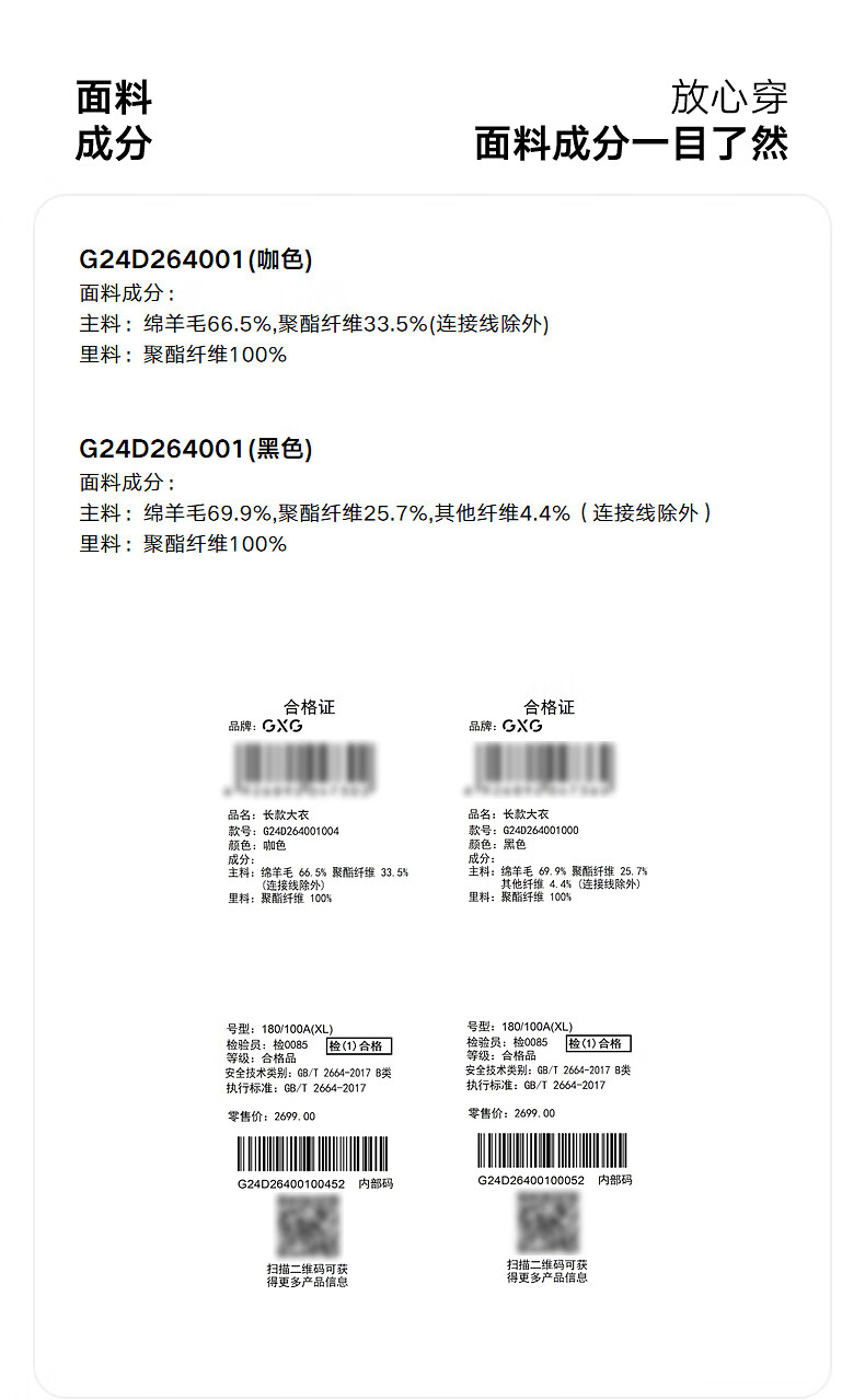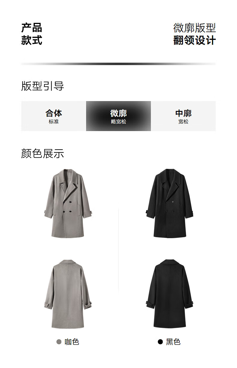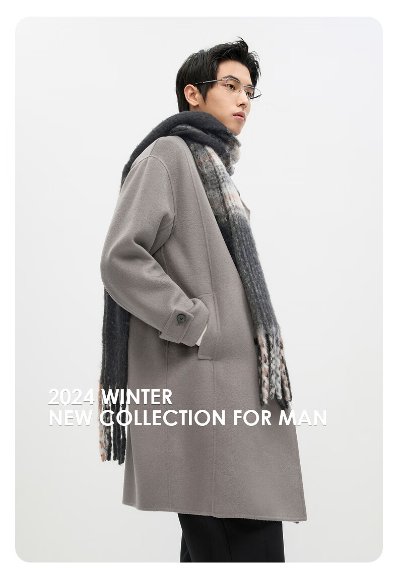 GXG men's long woolen coat black winter 2024 new arrival coffee color 175/L