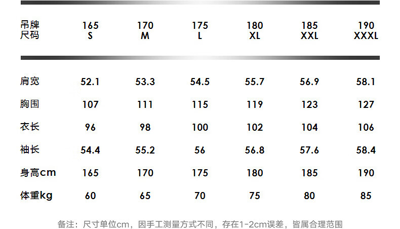 China (cm) 165 / 88-90 170 / 96-98 175 / 108-110 180 / 118-122 185 / 126-130