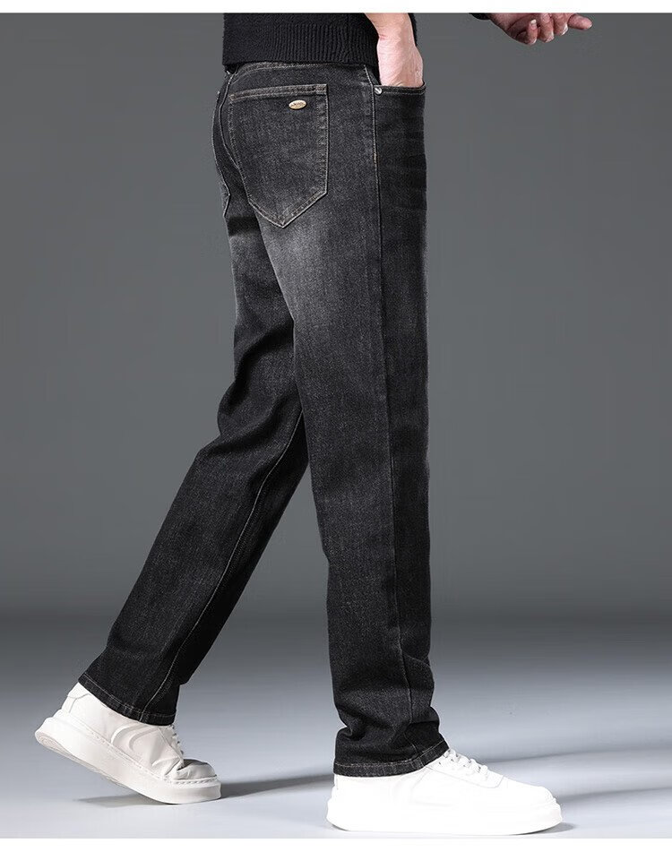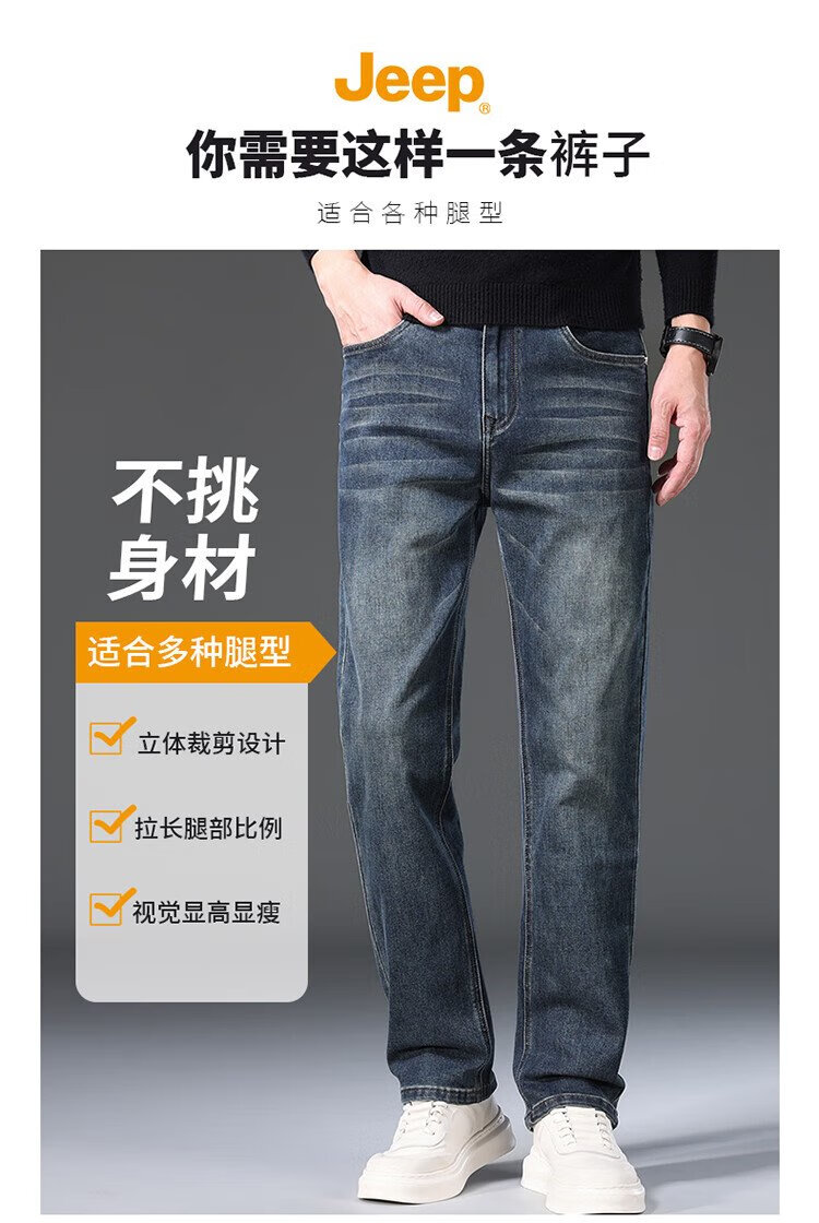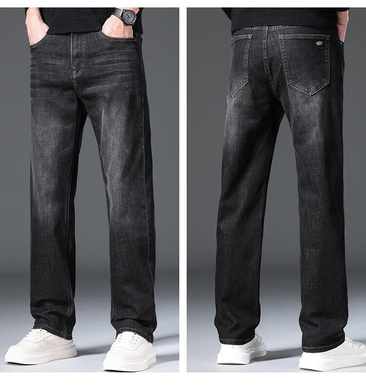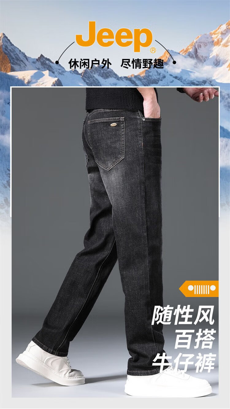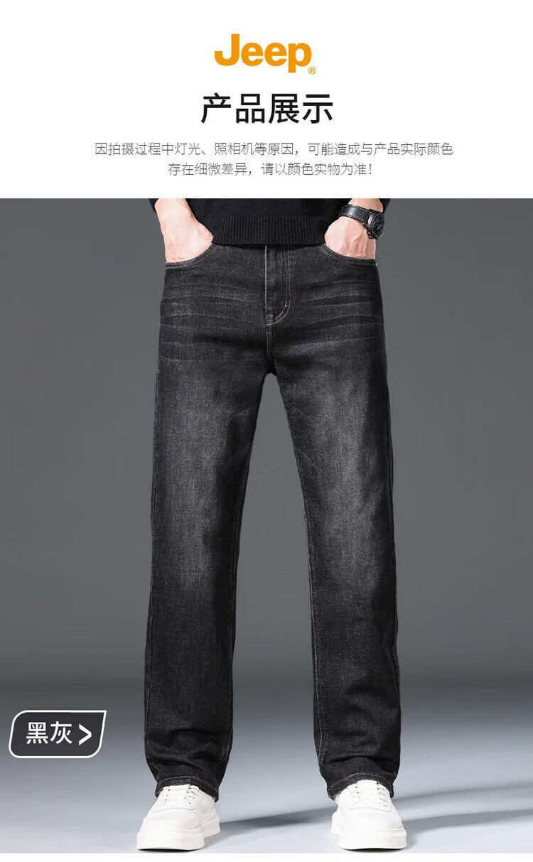 JEEP吉普牛仔裤男秋冬季宽松直筒裤子男士百搭休闲裤男裤 黑灰 32