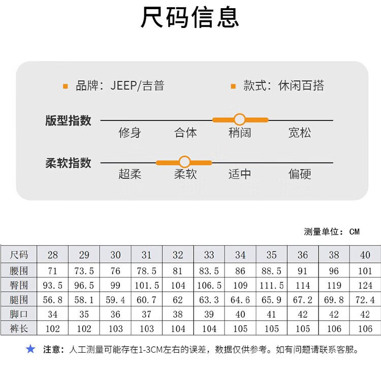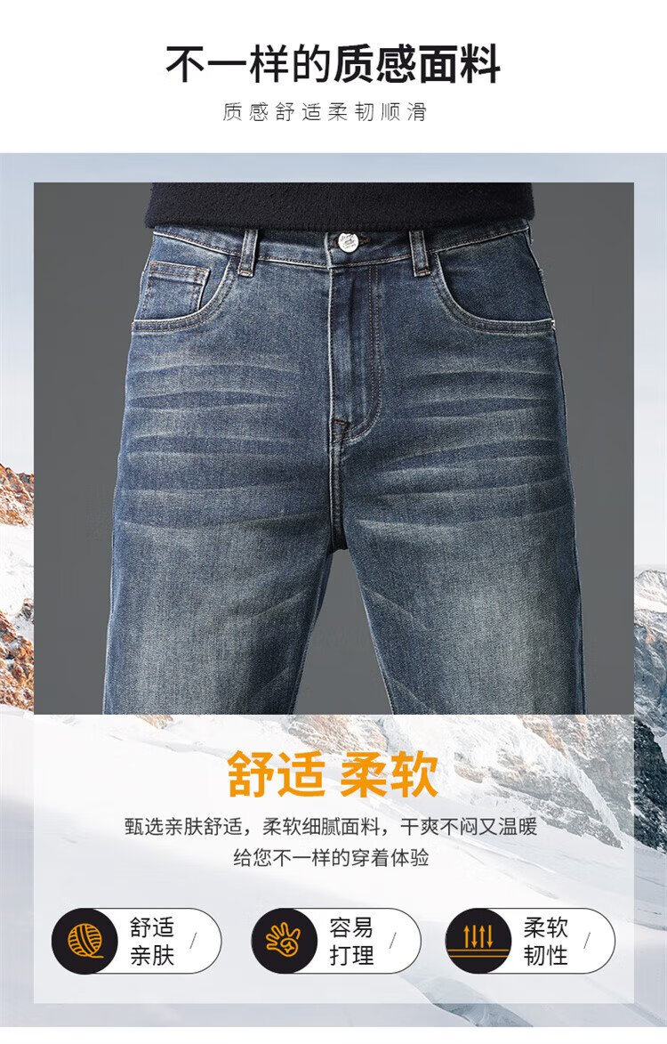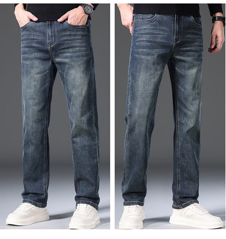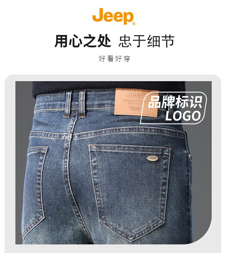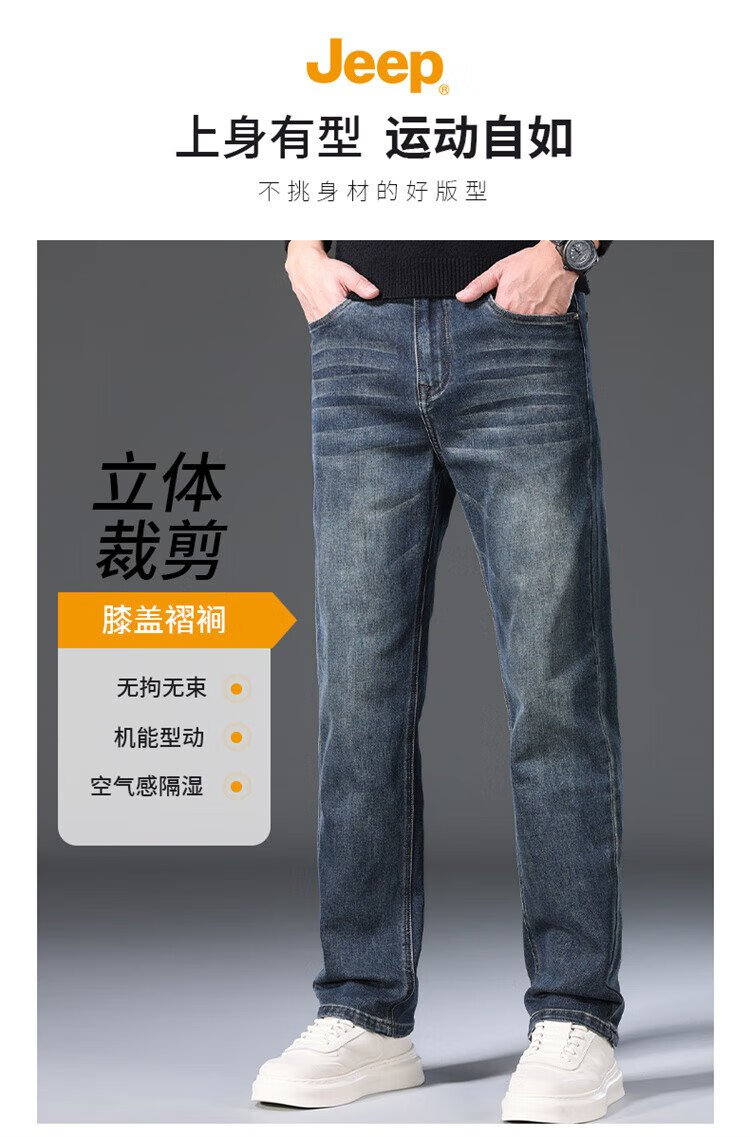 JEEP吉普牛仔裤男秋冬季宽松直筒裤子男士百搭休闲裤男裤 黑灰 32