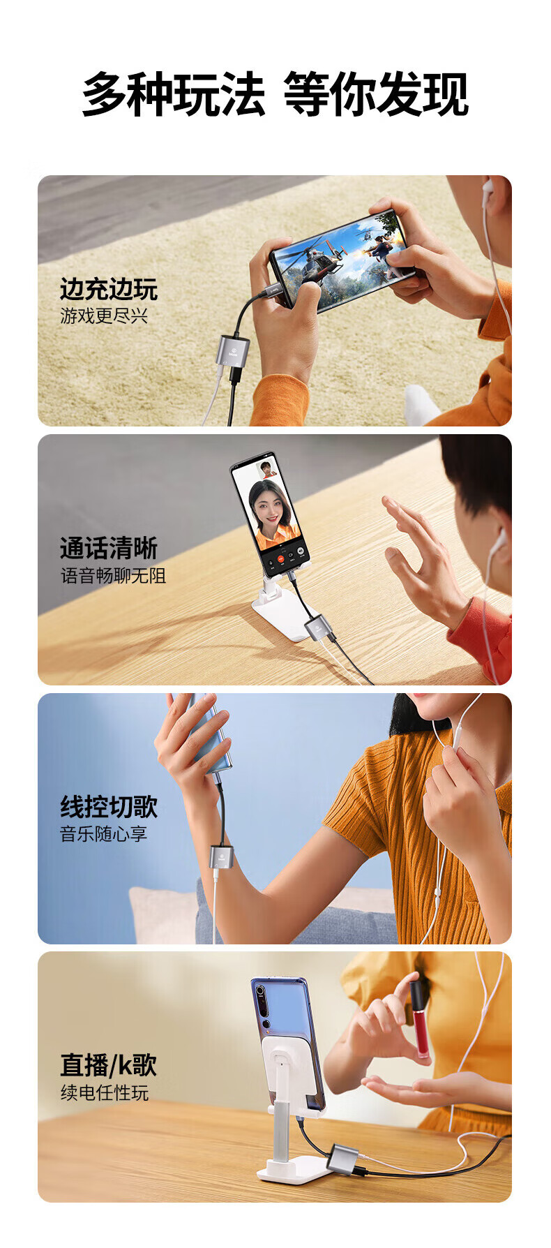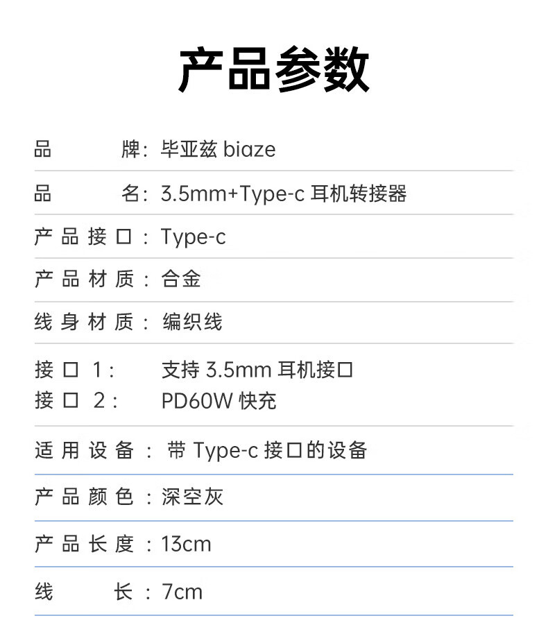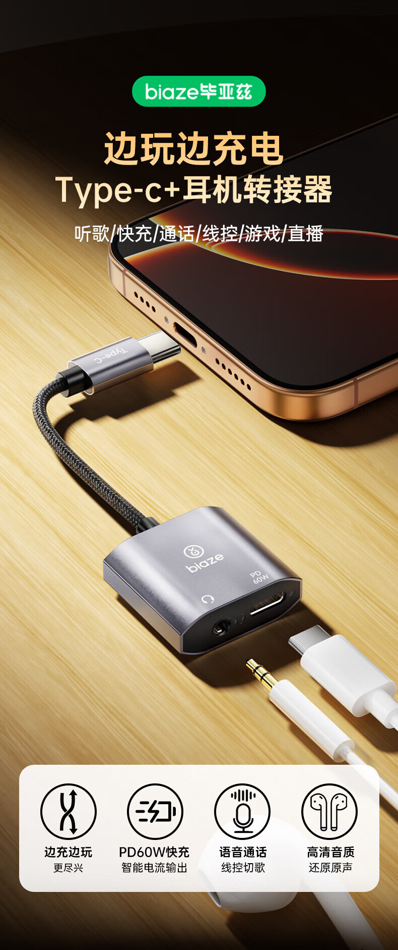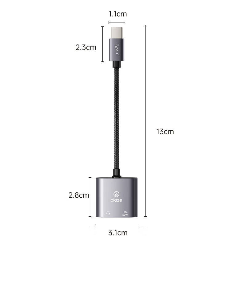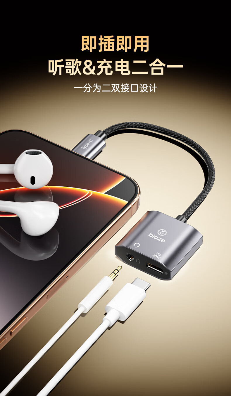 Biaz Apple 17/16 headphone adapter Type-c to 3.5mm audio converter two-in-one iPhone 17/16 mobile phone tablet PD60W fast charge