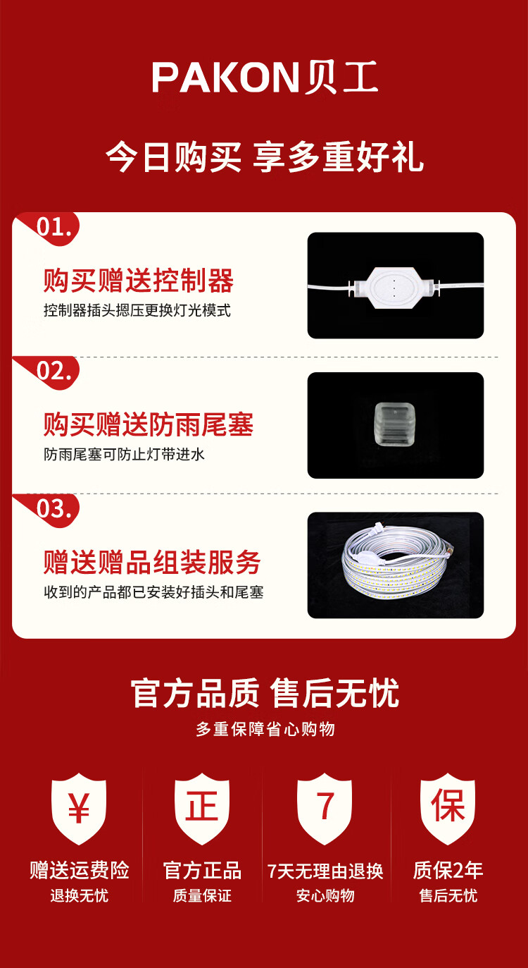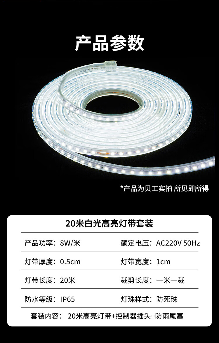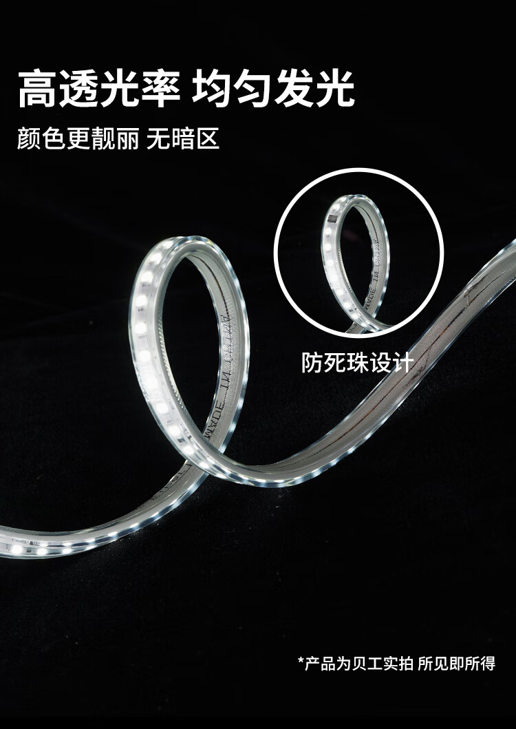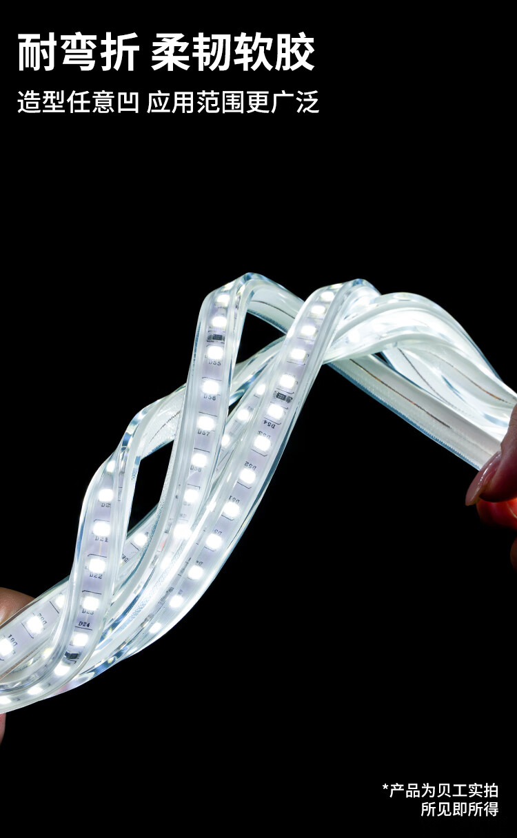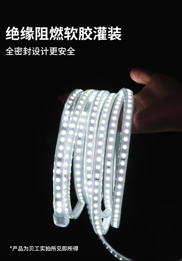 Beigong LED light bar high-bright outdoor waterproof light with ambient light neon light soft rubber energy-saving soft light 220V 120 beads 6W/meter white light 20 meters rainproof set