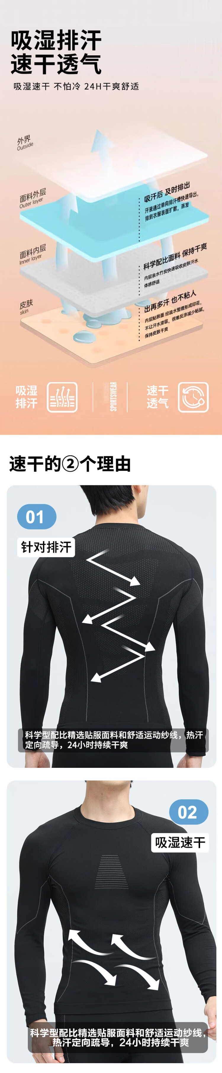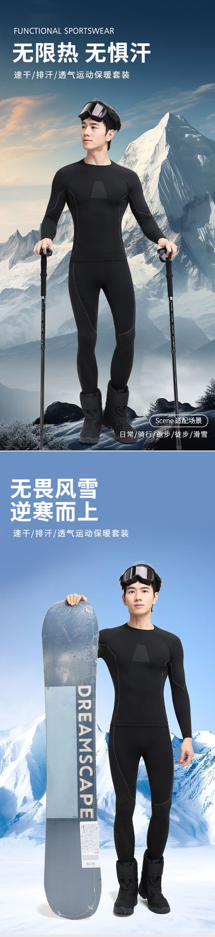 LangSha Ski Quick-drying Clothes Outdoor Sports Men's and Women's Ski Mountaineering Warm Marathon Running Suit Compression Quick-Drying Underwear