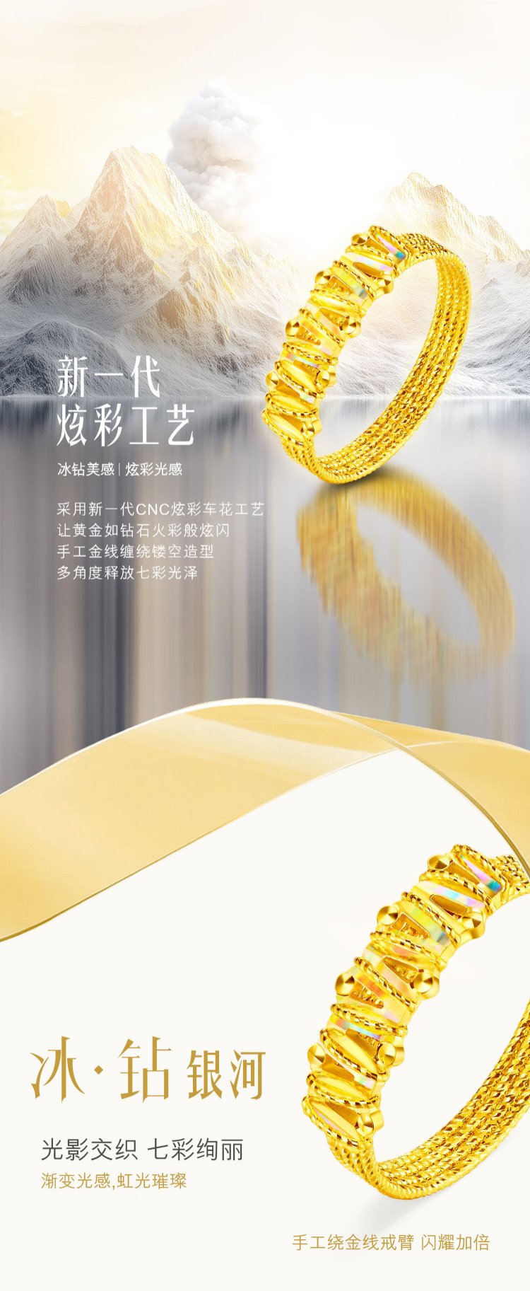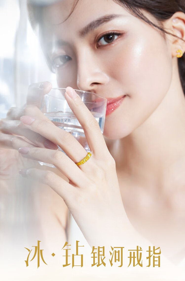 Lukfook Jewelry Ice Diamond Light Shadow Gold Galaxy Solid Gold Ring No. 12 - Total Weight Approximately 2.77 Grams