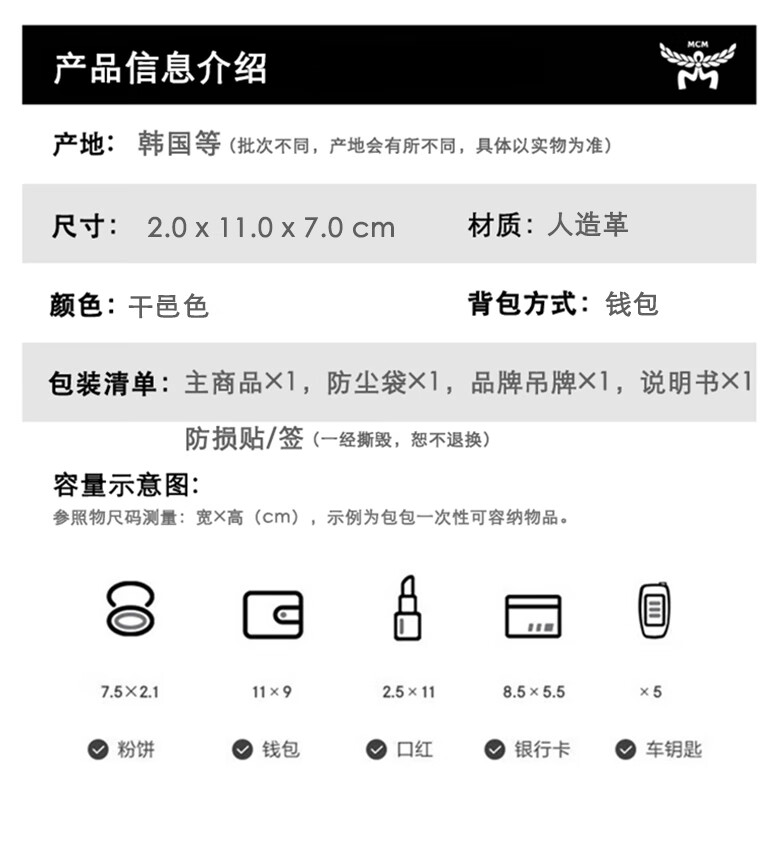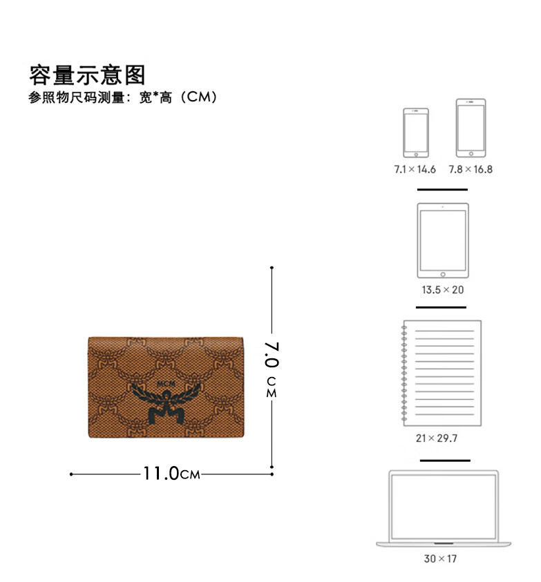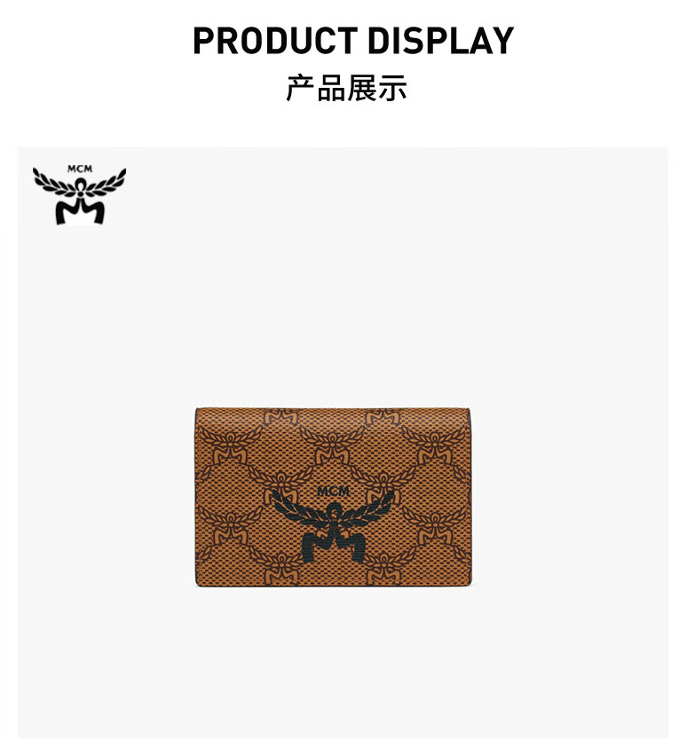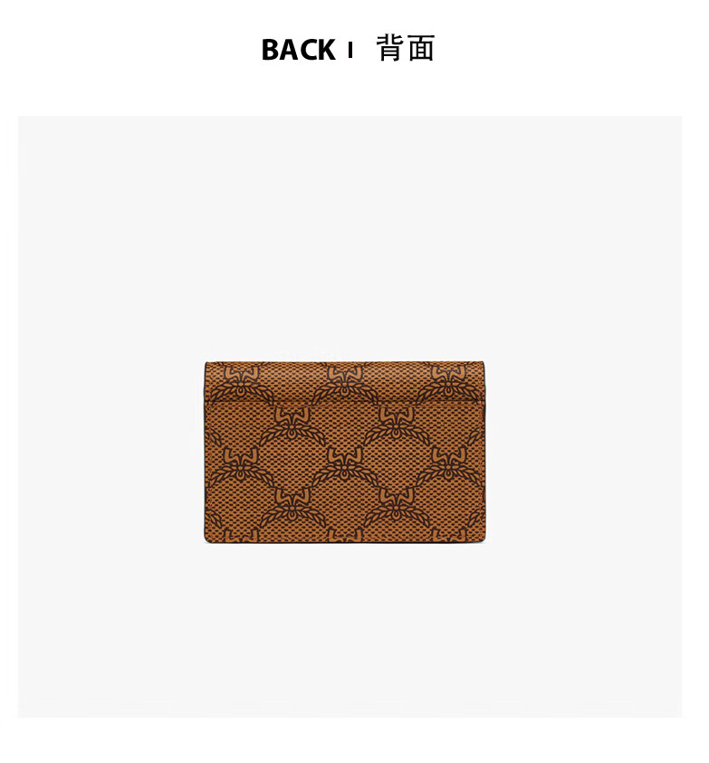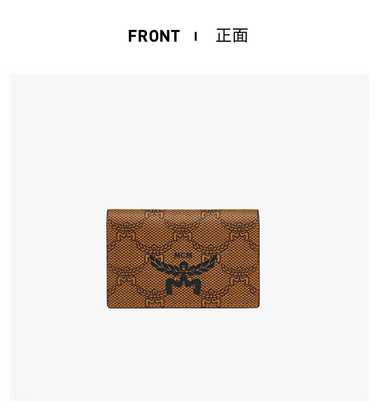 90% new MCM LOGO printed artificial leather coin purse card holder bifold wallet unisex cognac color Valentine's Day gift