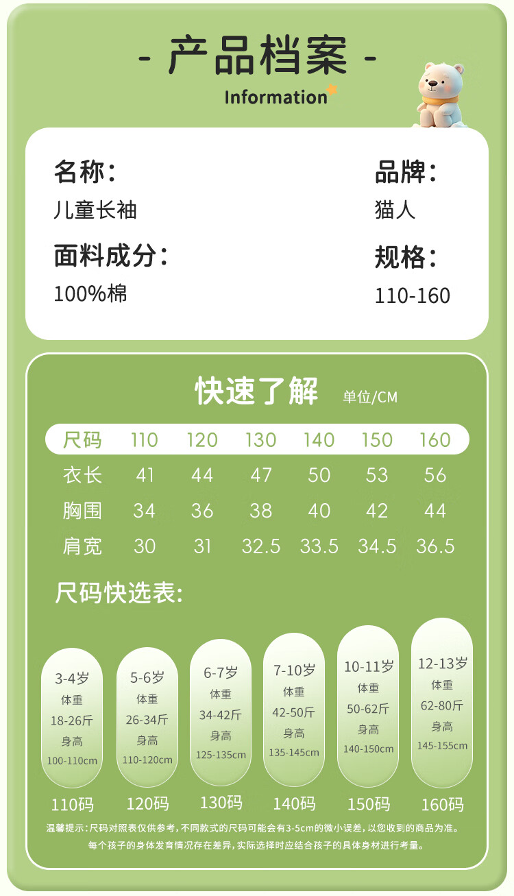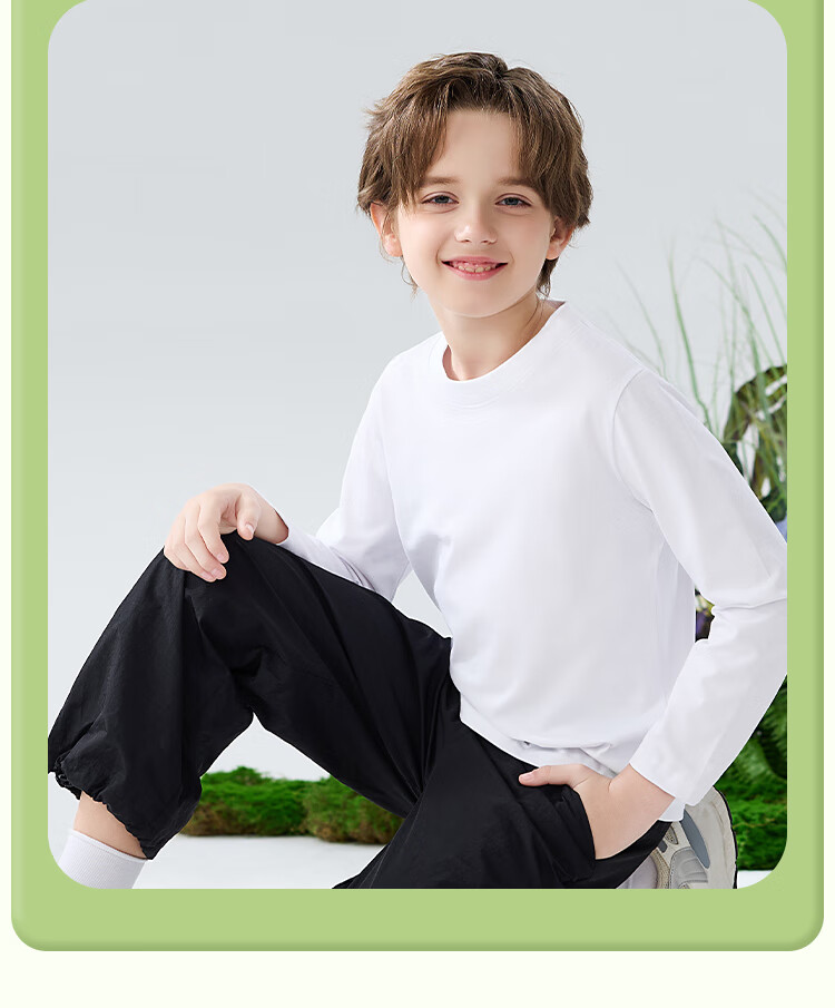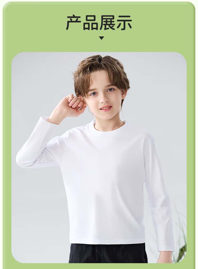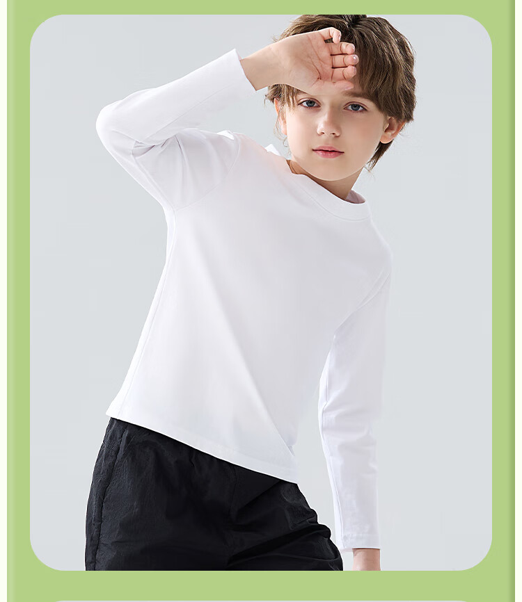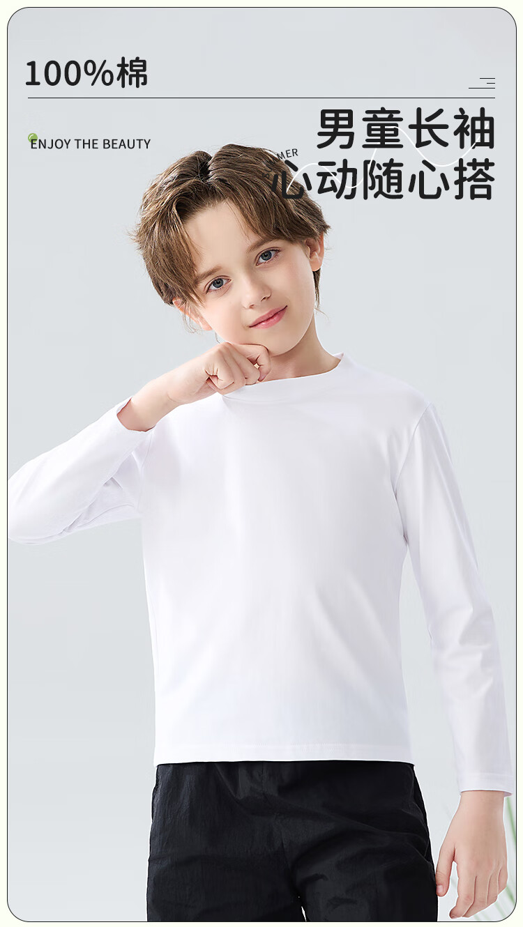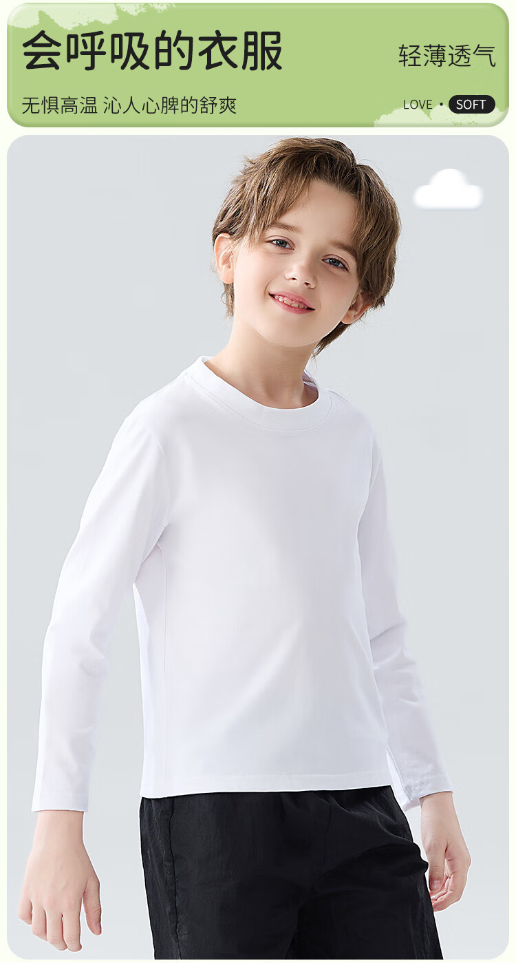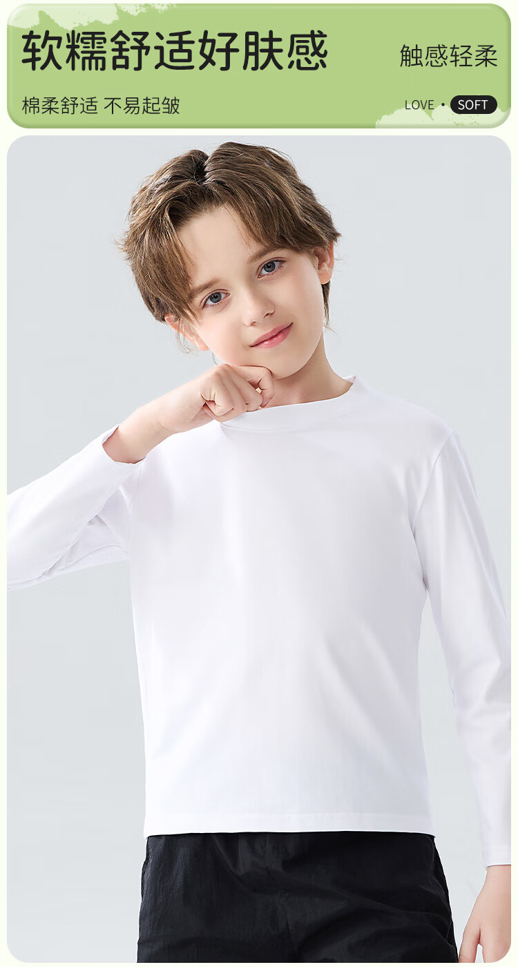 Catman children's T-shirt for boys and girls, autumn and winter round neck pure cotton white T-shirt for medium and large children, casual and versatile long sleeves