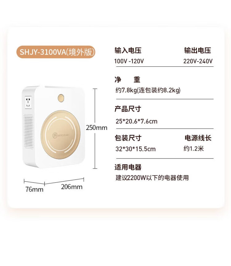 Shunhong 3100VA high power transformer 110v to 220v step-up voltage converter Chinese electrical appliances for overseas use US and Canada household transformer JDZY-N31002