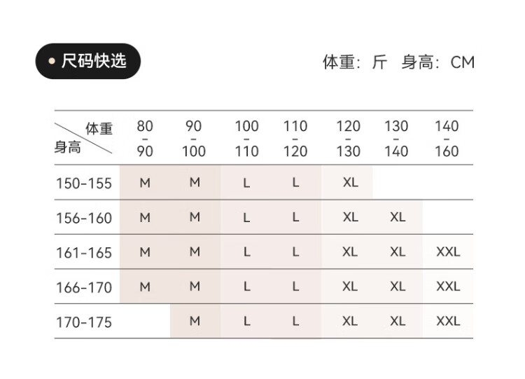 China (cm) 160-165/84-86 165-170 / 88-90 167-172 / 92-96 168-173 / 98-102 170-176 / 106-110
