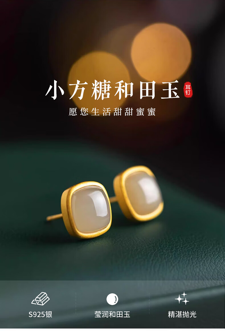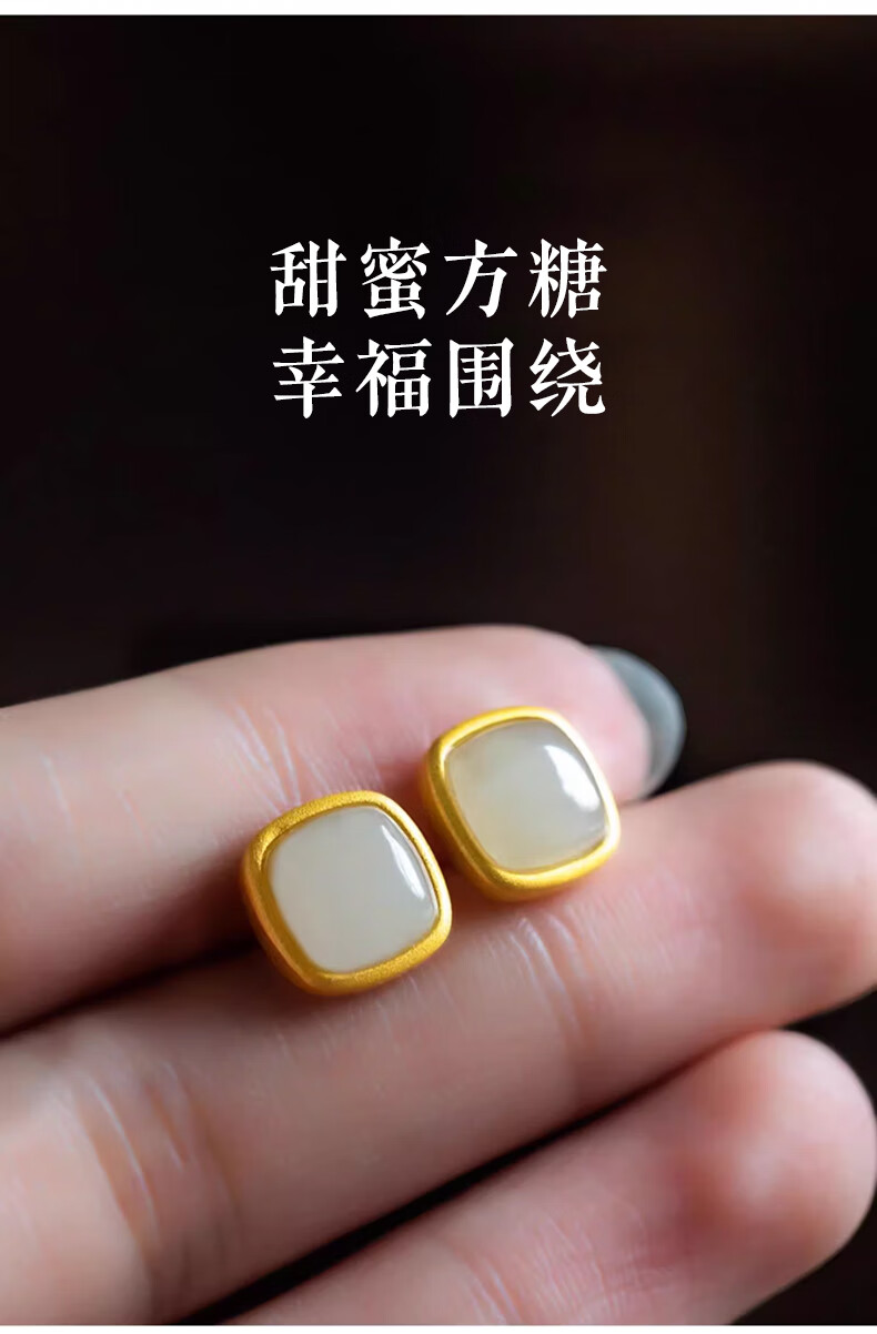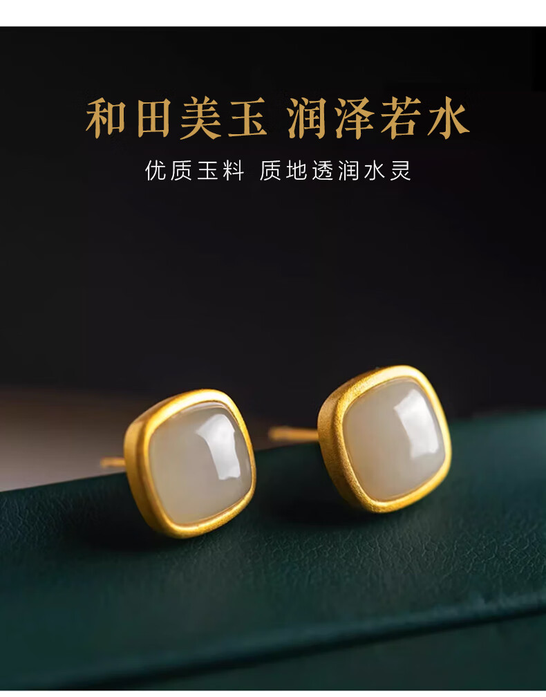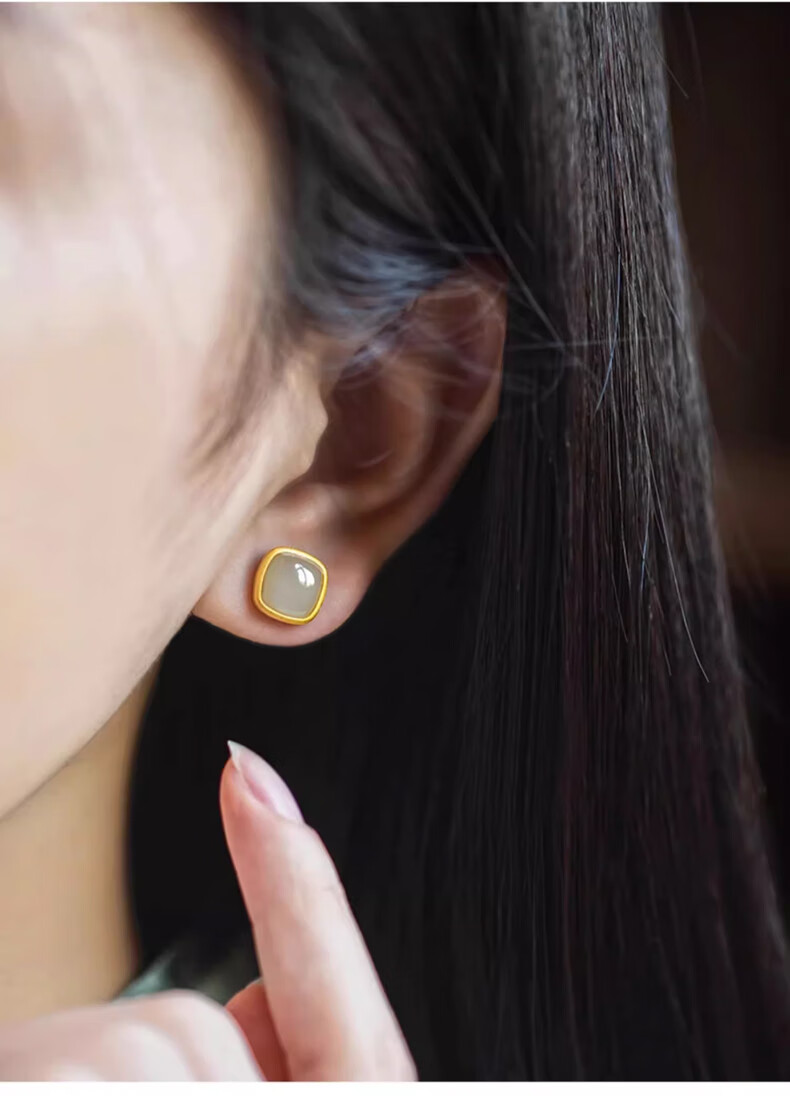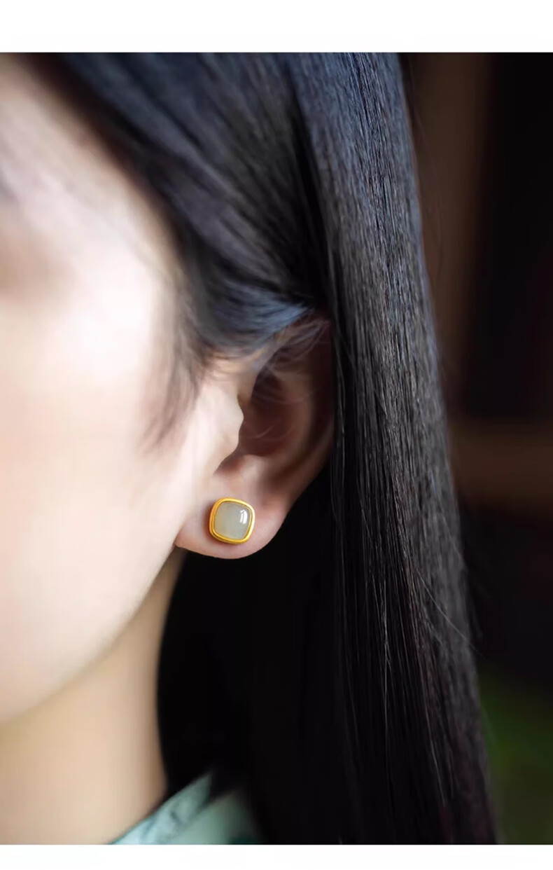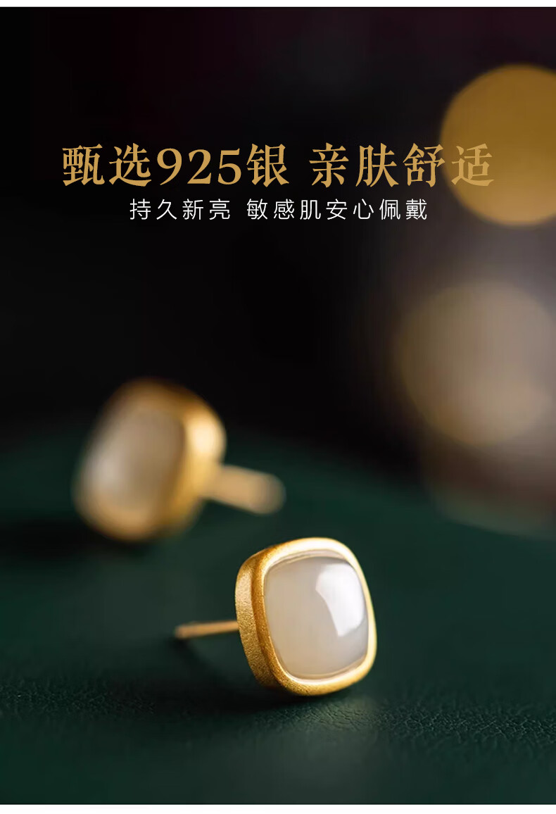 Jianlu Hotan White Jade Silver Earrings Women's Temperament High-end Earrings Simple Mother's Birthday New Year's Gift for Mom