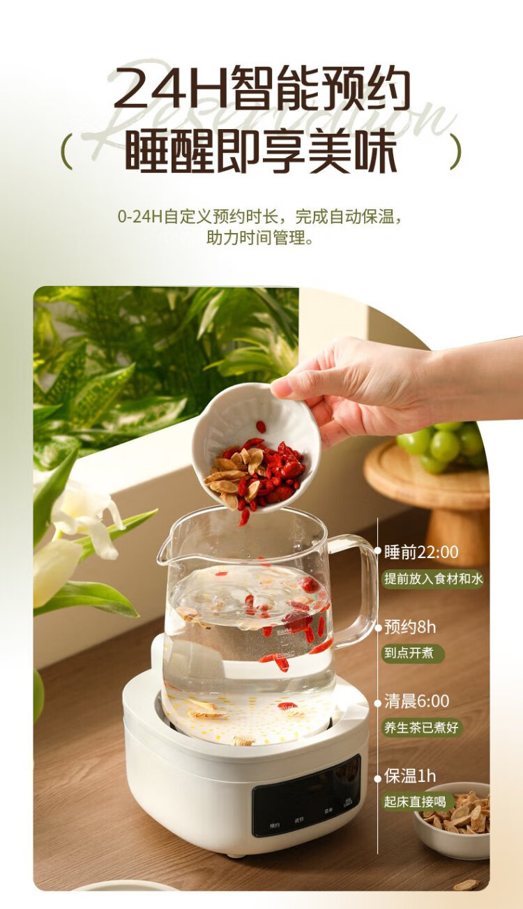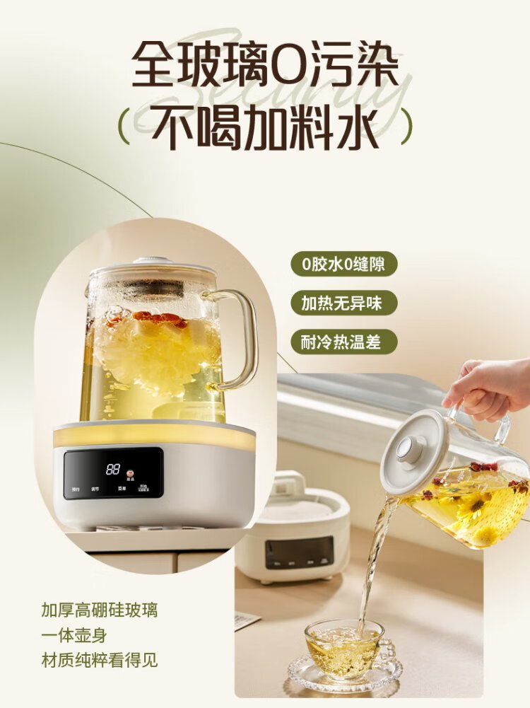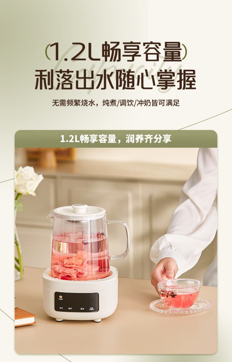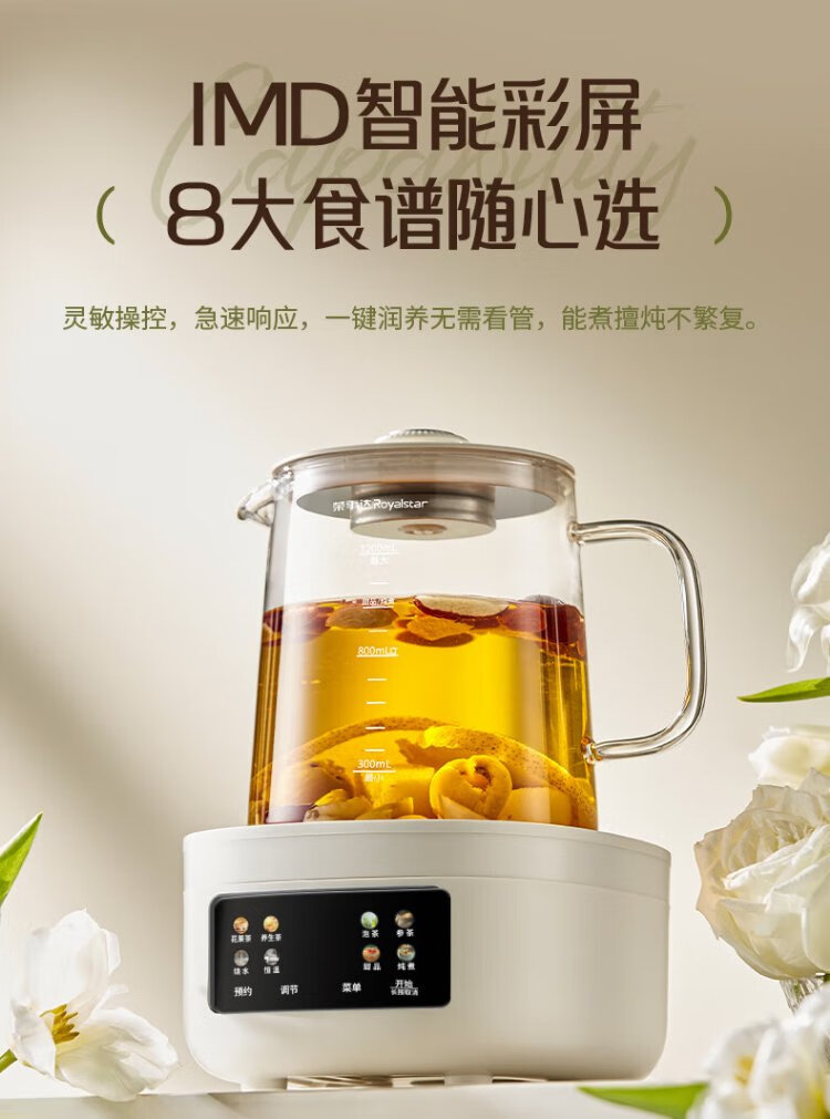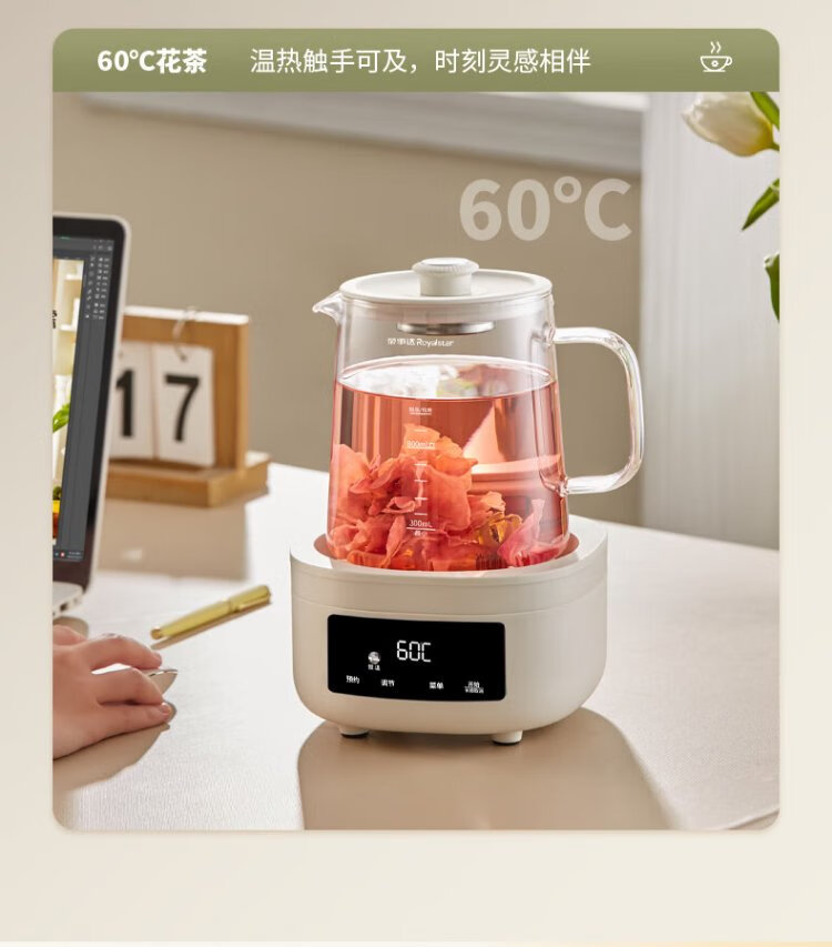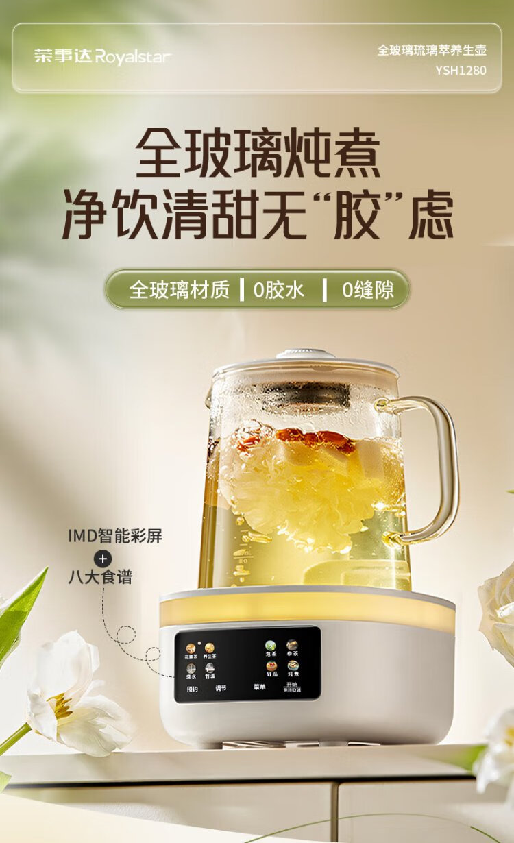 Royalstar all-glass health pot constant temperature kettle kettle 1.2L can be reserved for home office floral teapot tea maker 0 glue health cup 24H insulation YSH1280