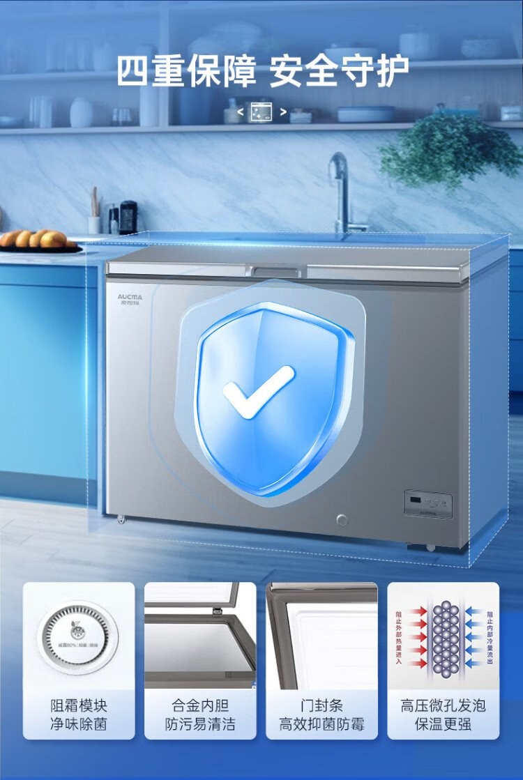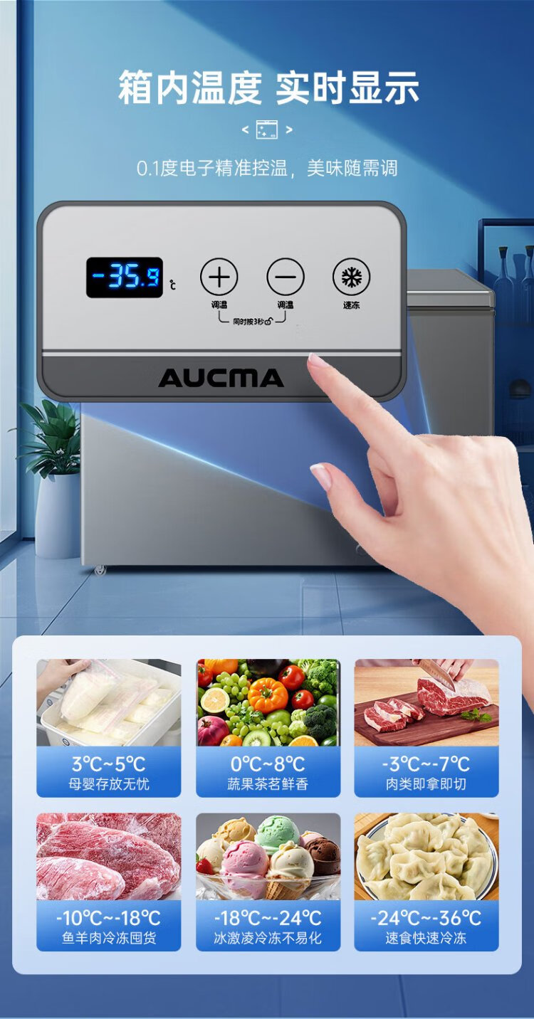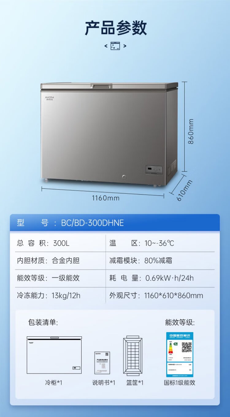 AUCMA 300 liter household freezer frost-reducing large-capacity freezer-36 ultra-low temperature electronic temperature-controlled chest refrigerator first-class energy efficiency BC/BD-300DHNE national subsidy