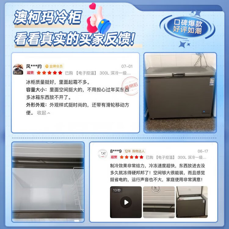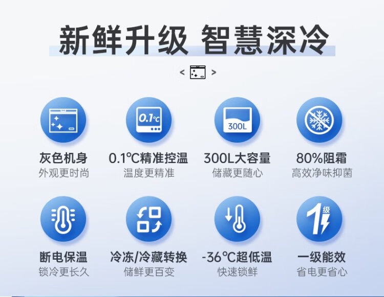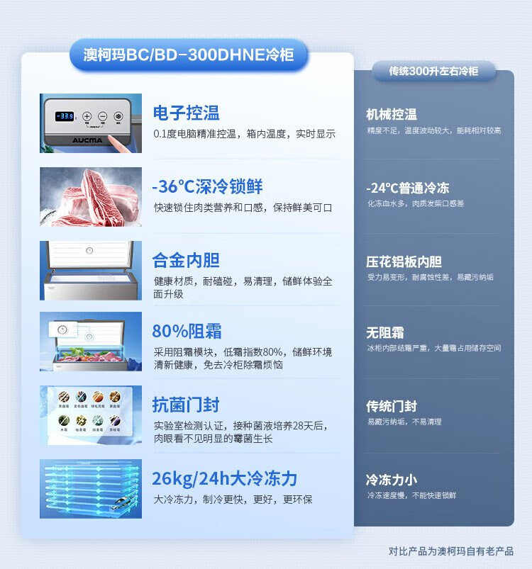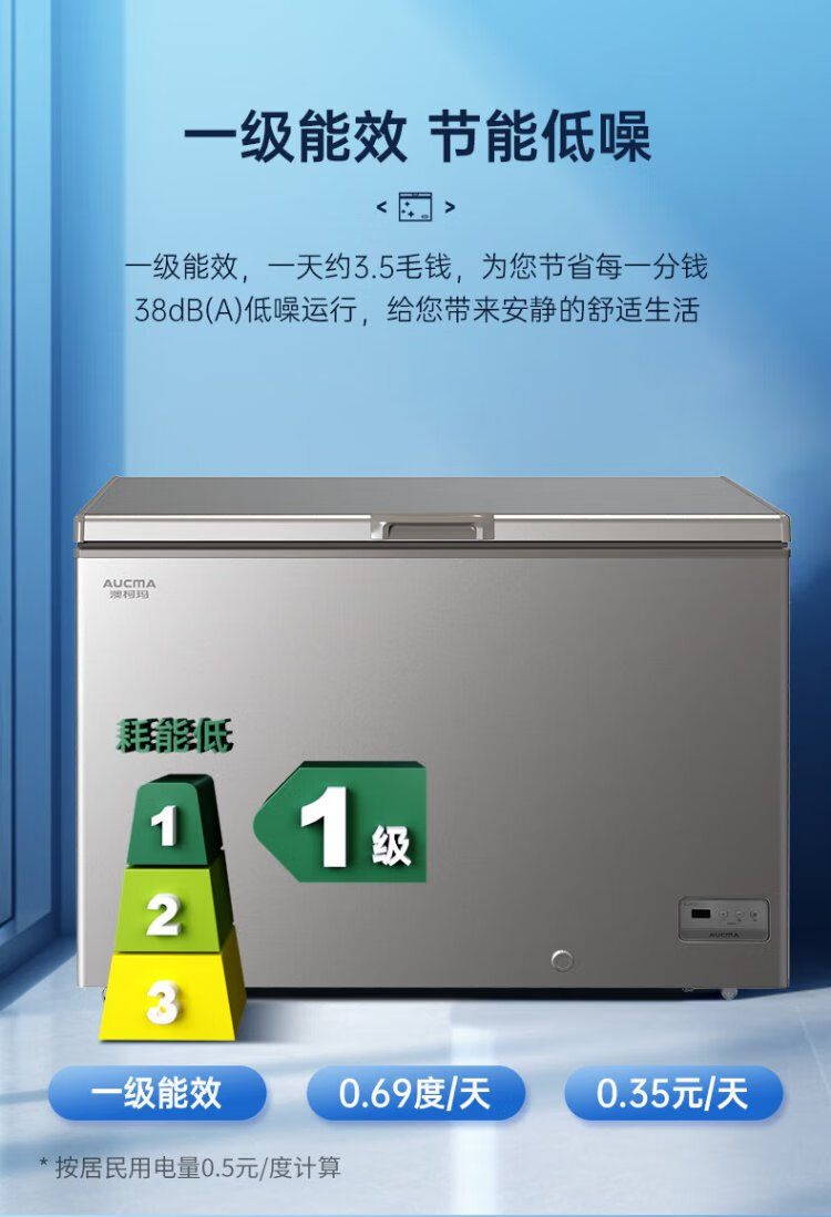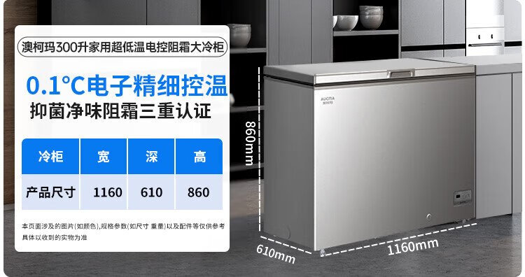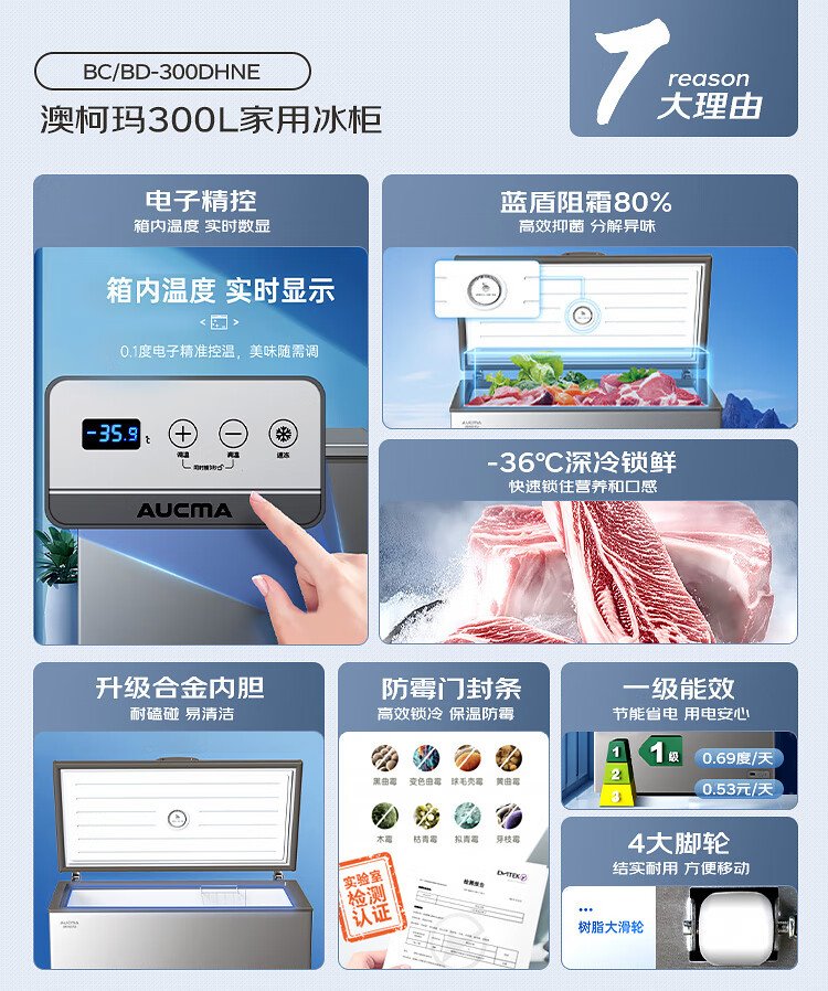 AUCMA 300 liter household freezer frost-reducing large-capacity freezer-36 ultra-low temperature electronic temperature-controlled chest refrigerator first-class energy efficiency BC/BD-300DHNE national subsidy